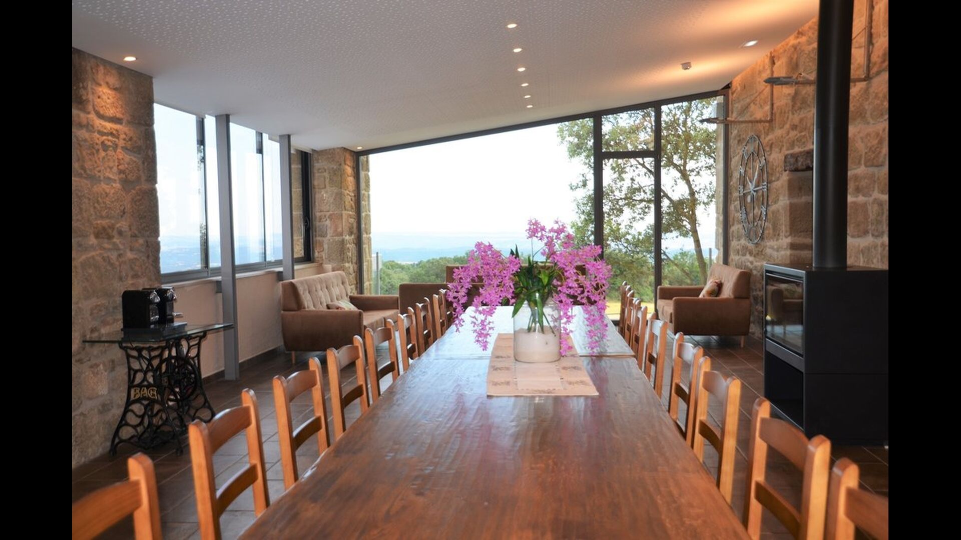 På en charmerende bjergside i Solsona ligger det betagende feriehus Mas Puig Vallresa. Feriehuset er ideelt for en stor gruppe, og det er derudover også yderst familievenligt. Med tre køkkener, ni soveværelser og ni badeværelser, er det sikkert at sige, at Mas Puig Vallresa er et meget rummeligt feriehus, som både har fantastiske steder hvor hele familien kan være samlet, men også steder hvor man kan trække sig tilbage og nyde et roligt øjeblik. Med husets eksklusive placering og moderne design lover vi, at du vil nyde Mas Pui!