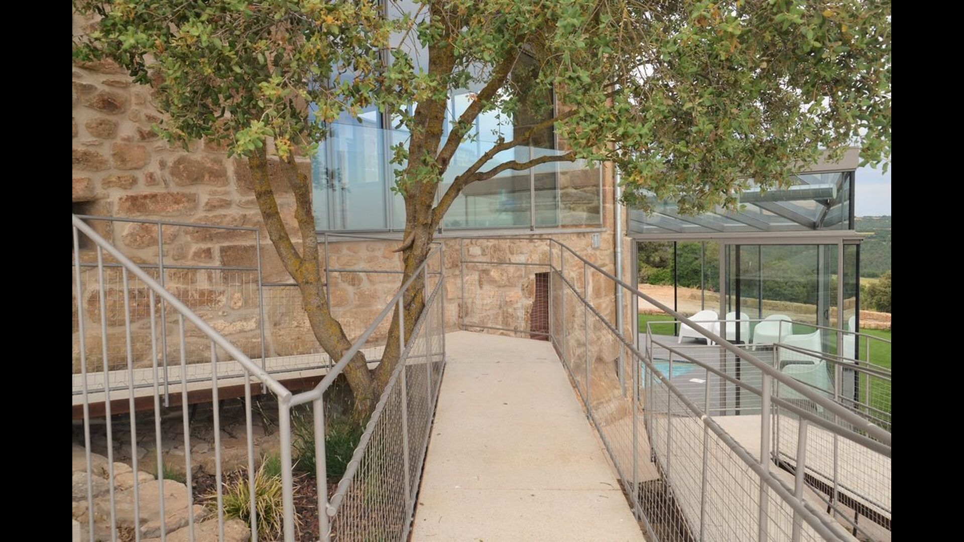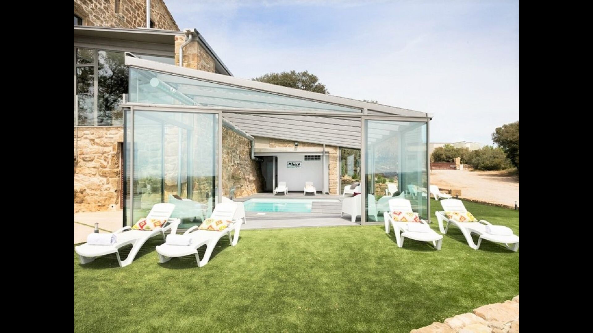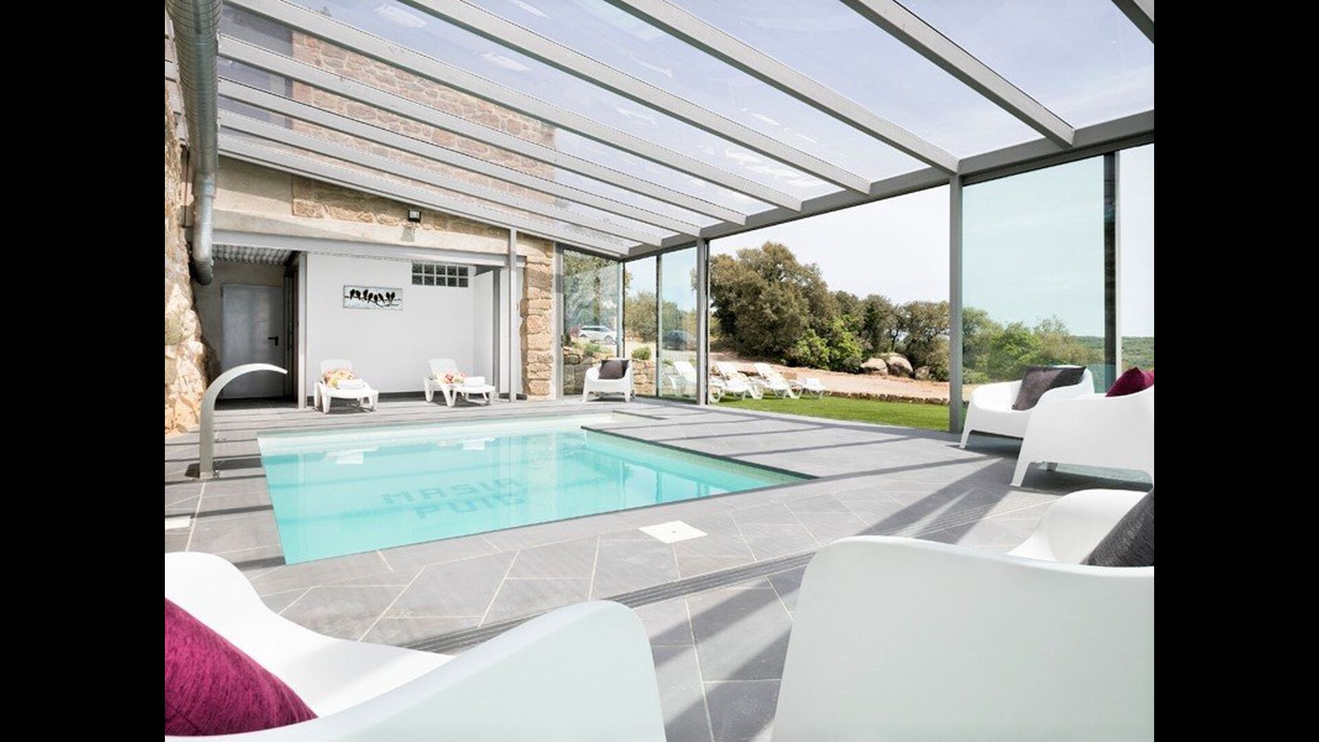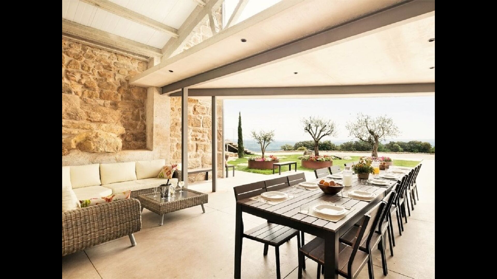 Mas Puig Vallresa har nogle glimrende udendørs arealer, hvor man kan bruge uendelig tid på alverdens aktiviteter. Grundet Mas Puig Vallresas fantastiske placering vil man også kunne opleve nogle helt fantastiske udsigter. På venstre side af huset vil man finde en stor terrasse, udstyret med de mest luksuriøse faciliteter, som blandt andet et fuldt udstyret udendørskøkken med pizzaovn, komfur, køleskab & fryser, grillområde og meget andet. Terrassen har et overdækket areal, som indeholder et spiseområde og et hyggeligt sofaområde med et kaffebord – oplagt til hyggeligt aftenstunder. På højre side af huset er det et overdækket poolområde, som har alle faciliter man kunne drømme om, heriblandt spafunktion, bad og badeværelse. Poolen og terrassen er udstyret med massere af solsenge, som giver mulighed for at slappe af og nyde det fantastiske Catalanske vejr.