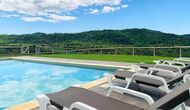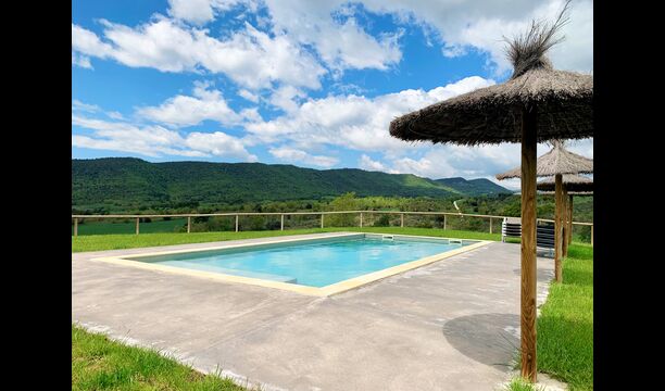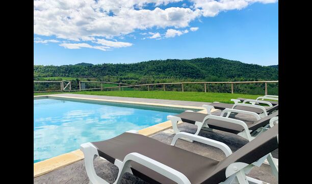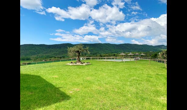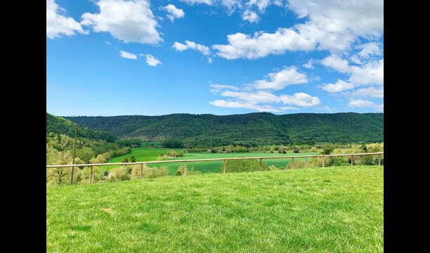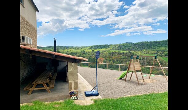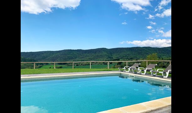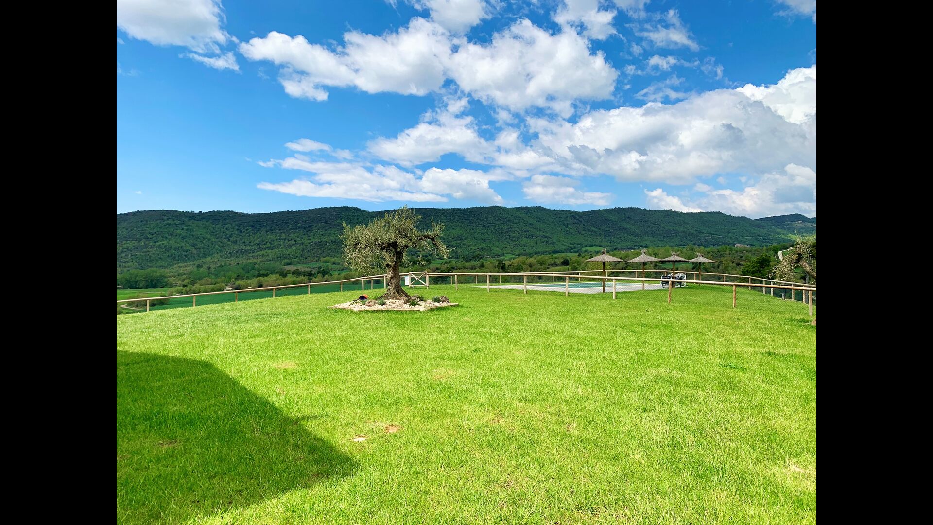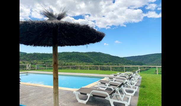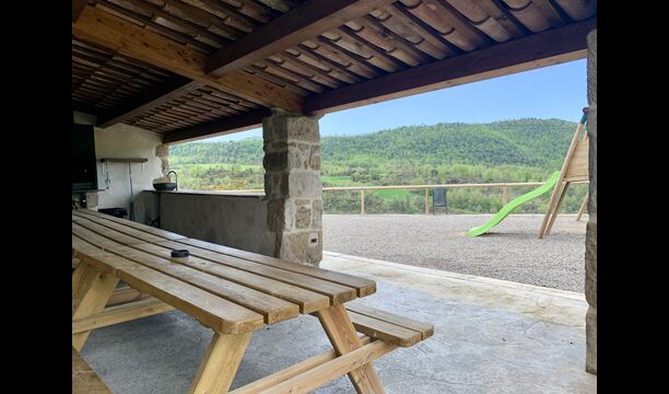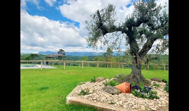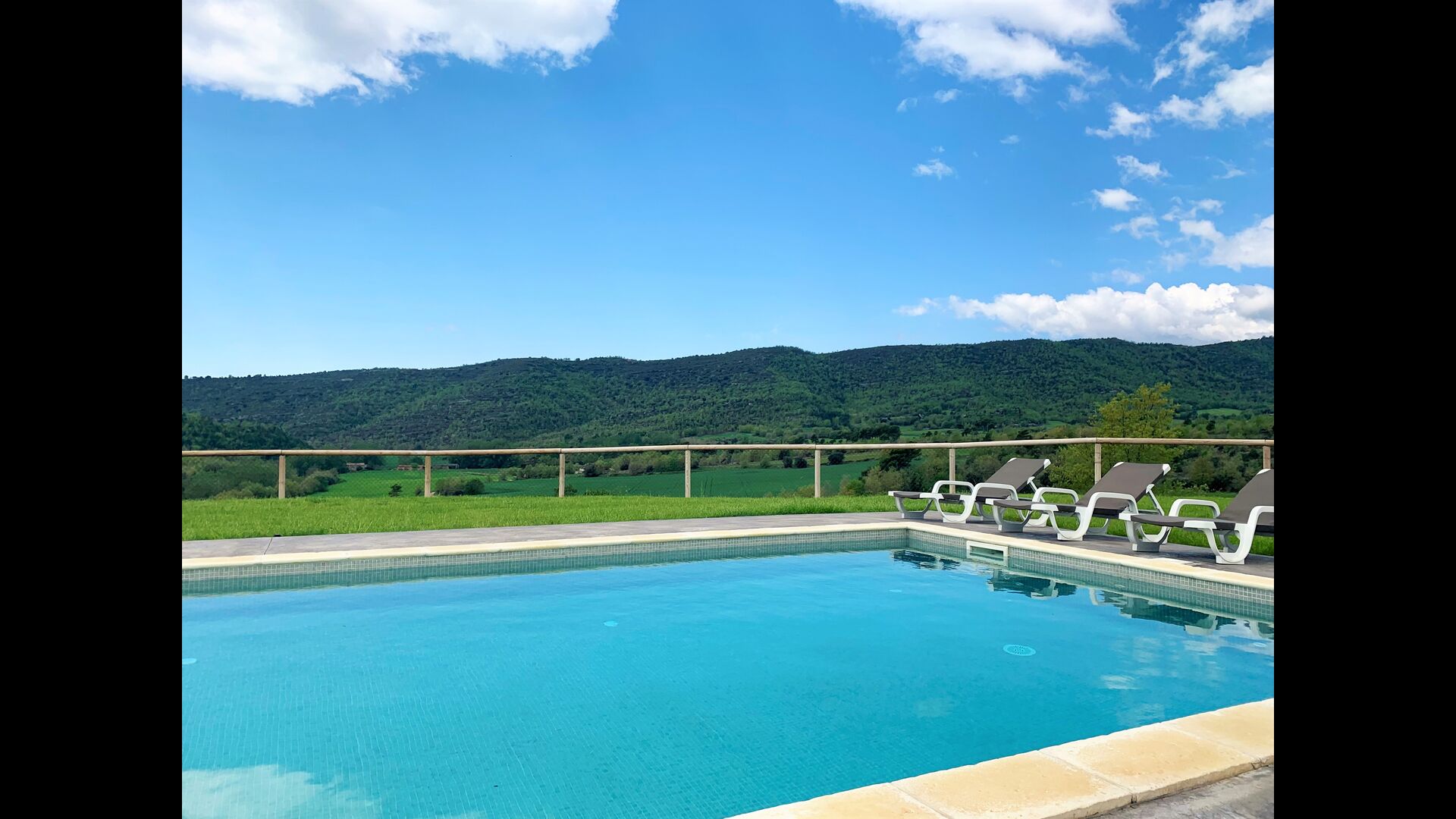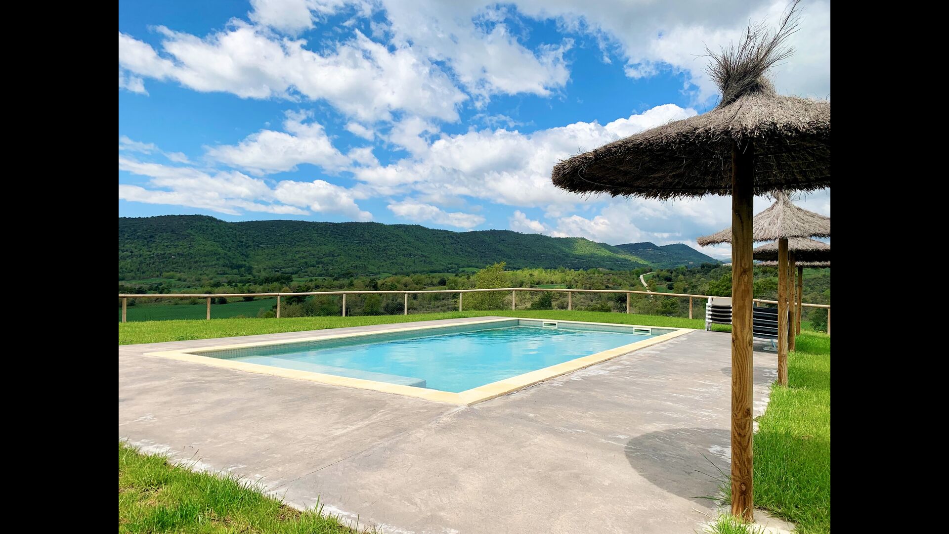 Huset ligger på en bakketop med en dejlig 360 graders udsigt over landskabet og med Pyrenæerne der rejser sig i horisonten. Huset er omgivet af en vidunderlig have på 1.300 m2 med en stor indhegnet swimmingpool på 10 x 4,5 meter med masser af liggestole til afslapning. Til sommeren 2021 vil der være pergolaer ved swimmingpoolen, så der er mulighed for skygge til dem som foretrækker det. Derudoverdet store smukke egetræ også et dejligt sted at finde skygge.