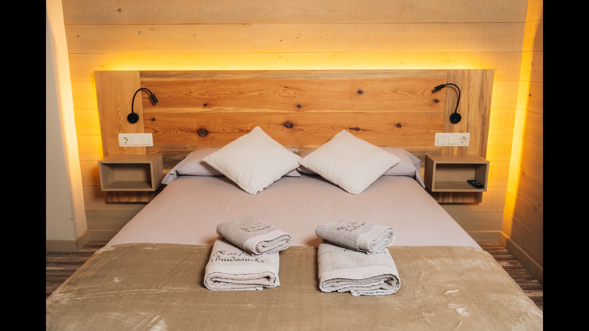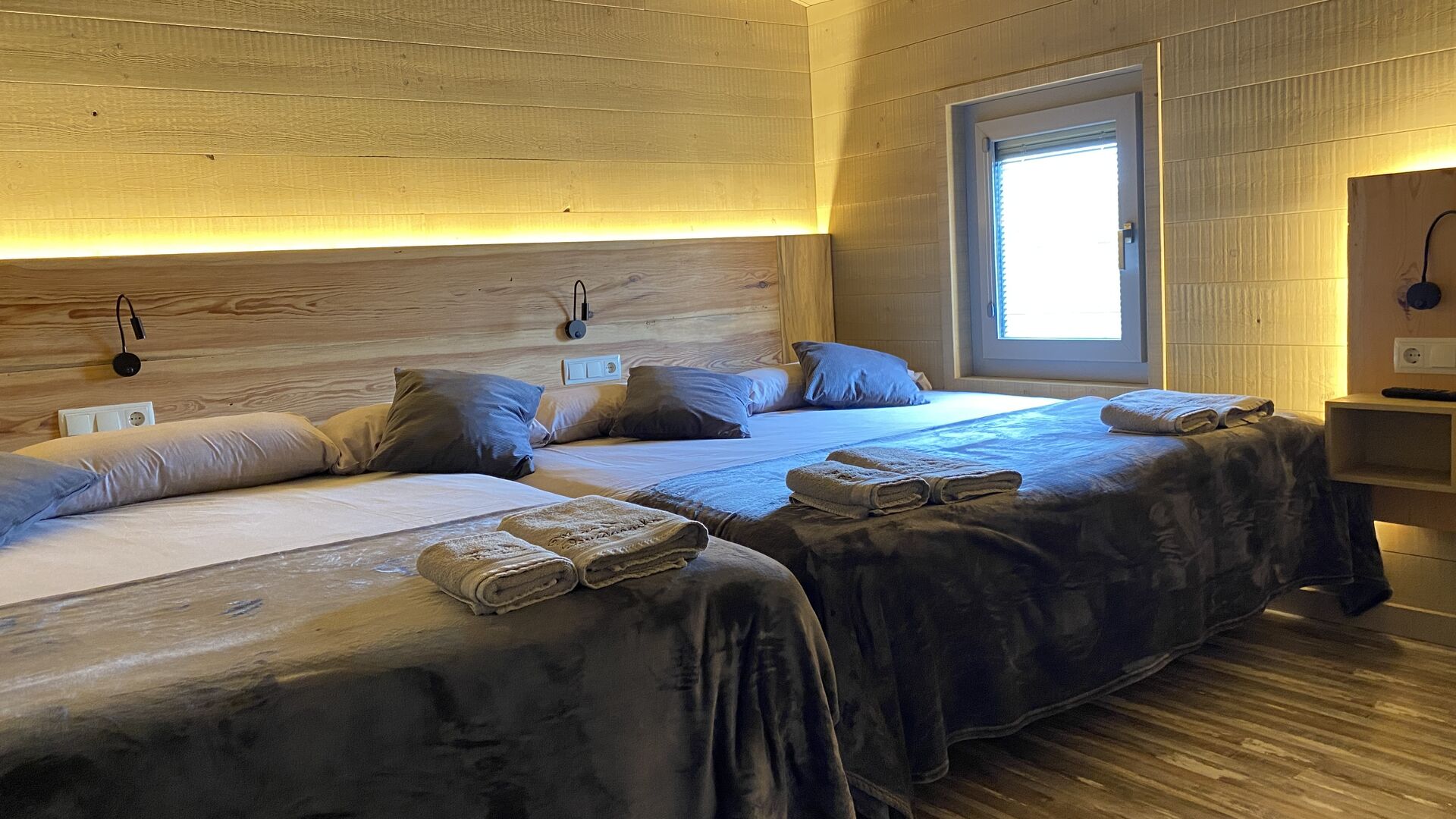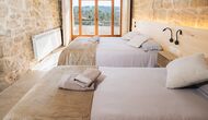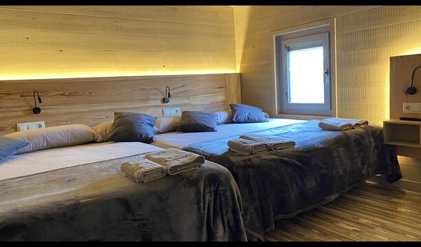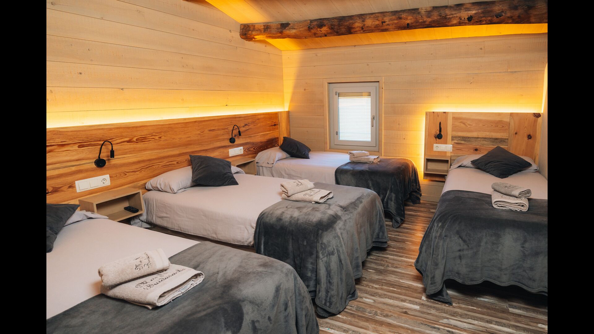 På øverste etage er der en hyggelig opholdsstue med sofaer, tv, aircondition og så er der yderligere fire soveværelser. Det ene er et 4-sengsværelse med fire 4 enkeltsenge og eget badeværelse. Yderligere er der 3 dobbeltværelser med dobbeltsenge, egne badeværelser og tv. Alle har plads til 1 ekstra seng.