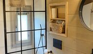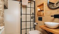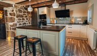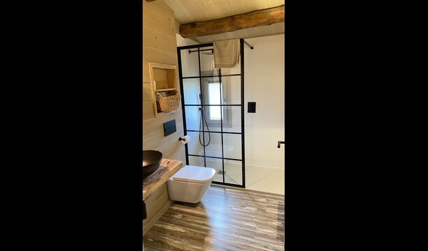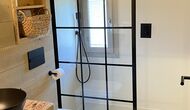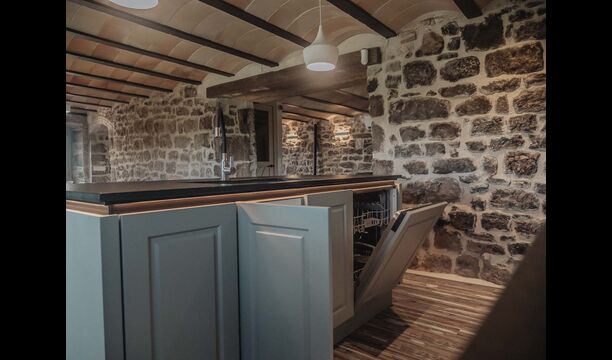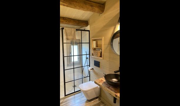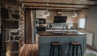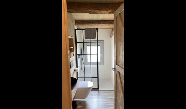 På første sal er der den smukt indrettede spisestue og det åbne køkken. Køkkenet er meget veludstyret (komfur og kogeplader, køleskab, fryser, Nespresso, brødrister, mikrobølgeovn, saftpresser osv.) Meget bekvemt er dette også forbundet til en udendørs terrasse, så I kan spise inde eller ude, som I foretrækker. På denne etage er der også to store dobbeltværelser med eget badeværelse og tv. I det ene er der mulighed for en ekstra seng.