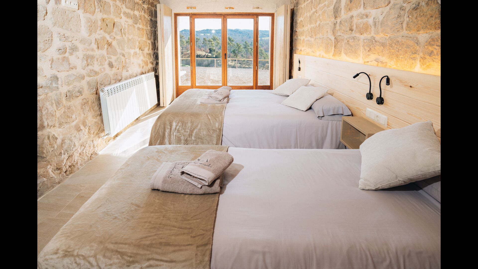 Hvis du kan lide udsigt og nyde den afslappende atmosfære kun med fuglefløjt og lejlighedsvis køernes klokker på de omkringliggende marker som baggrundslydtæppe, vil Masia Busquests være et fremragende valg. Huset har 6 soveværelser og har en kapacitet på op til 18 personer.