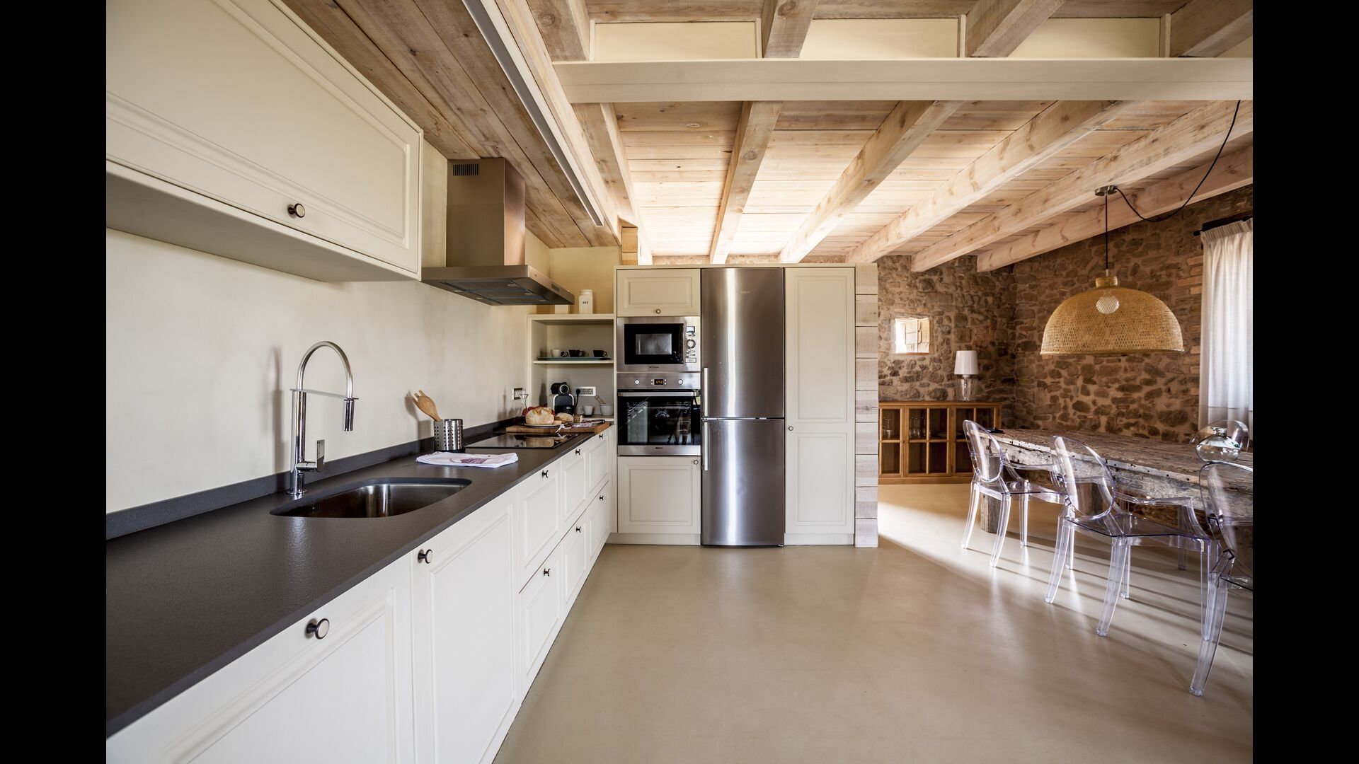Masia Cordiner er blevet totalrenoveret i overensstemmelse med den traditionelle catalanske arkitektoniske stil. Design og komfort er til stede i hver eneste lille detalje, lige fra møblerne - med genvundne stykker fra det tidligere bondehus - til bomuldslagnerne og teknologi i husholdningsapparater af høj kvalitet. Du vil føle dig helt hjemme her.