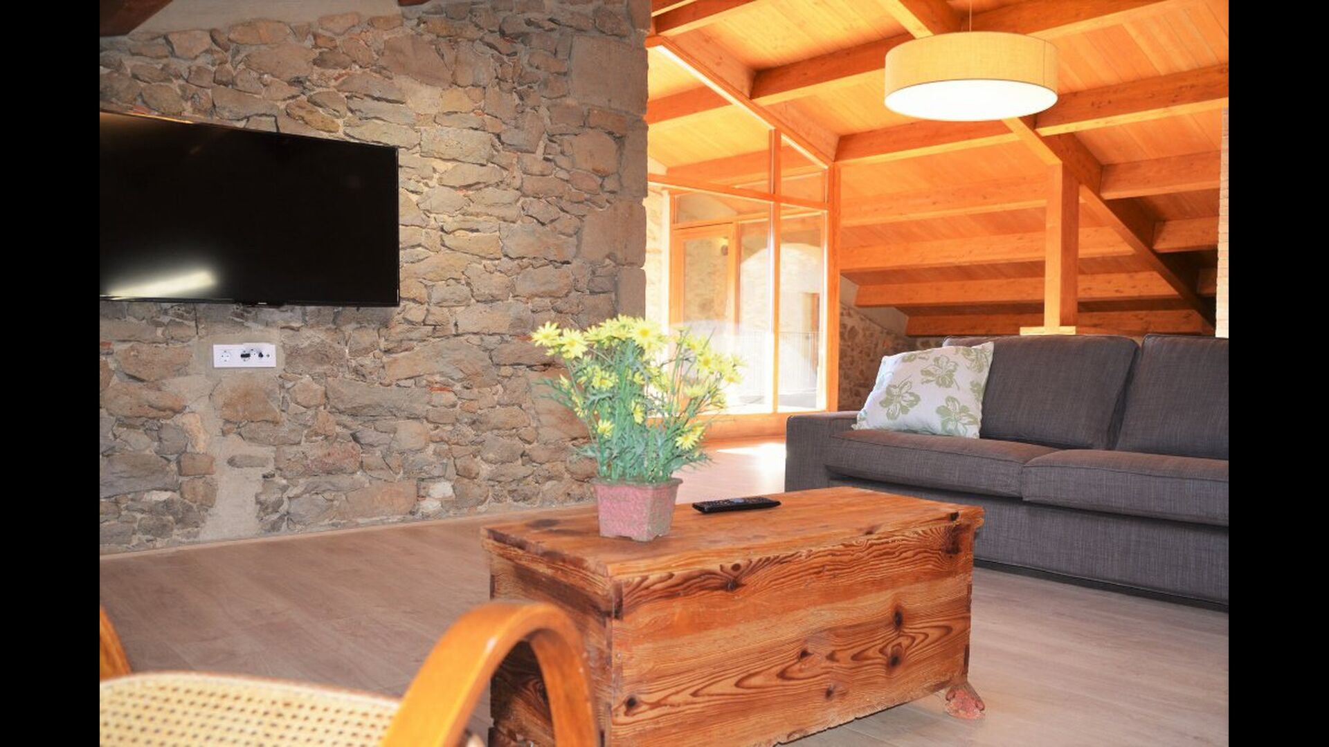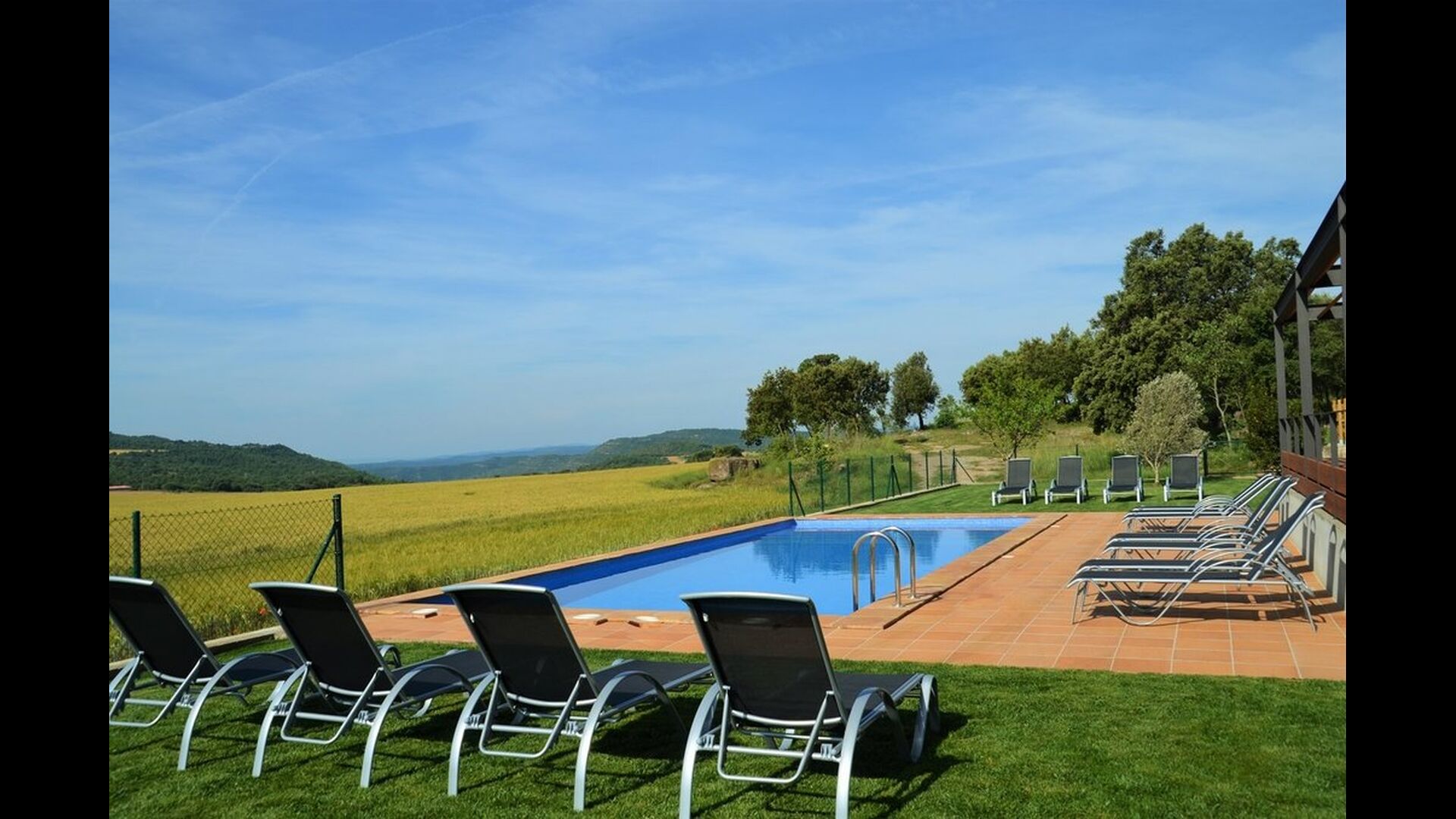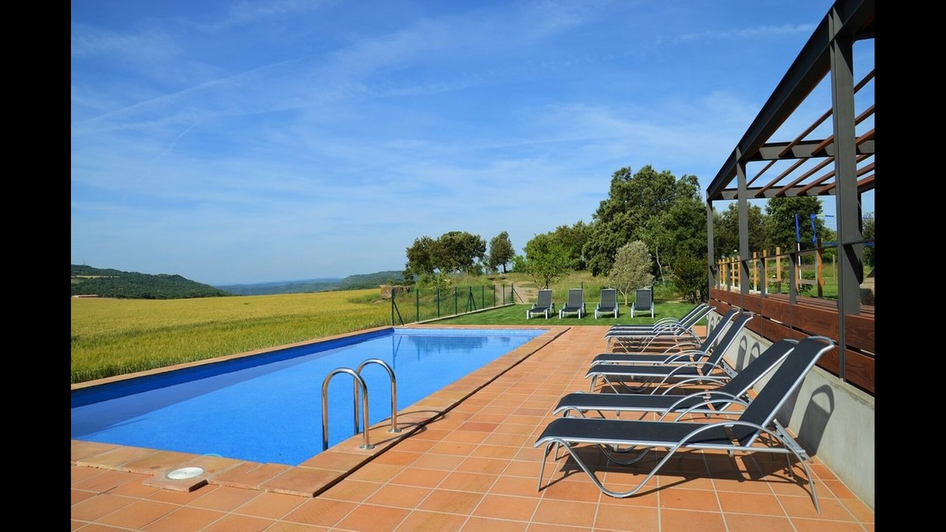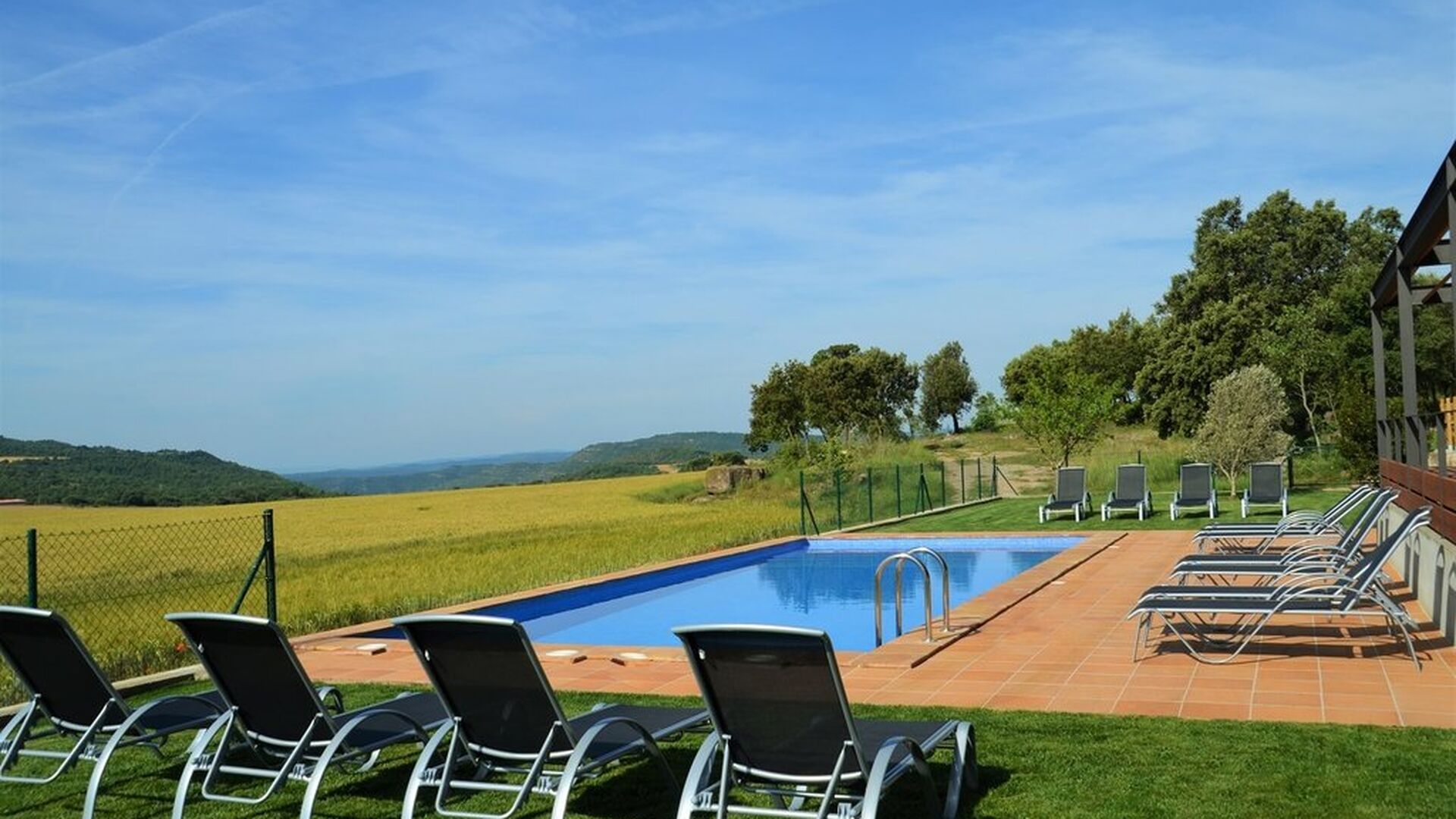 I haven er der desuden lavet to chill-out områder med behagelige udesofaer. Et omkring poolen – der selvfølgelig også har masser af liggestole – og endnu et på et hævet terrasseområde med fantastisk udsigt til det smukke landskab. Ferieboligen Masia del Cerdaña ligger nemlig på toppen af en forhøjning, hvilket giver jer en vidunderlig udsigt – næsten hele vejen rundt.
