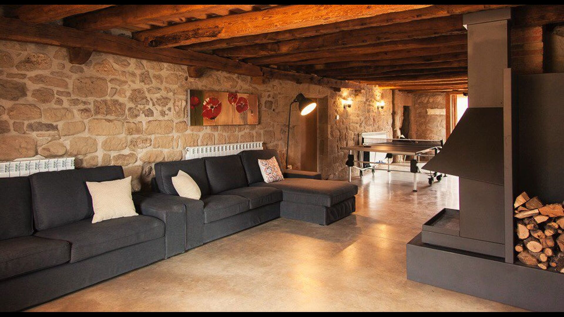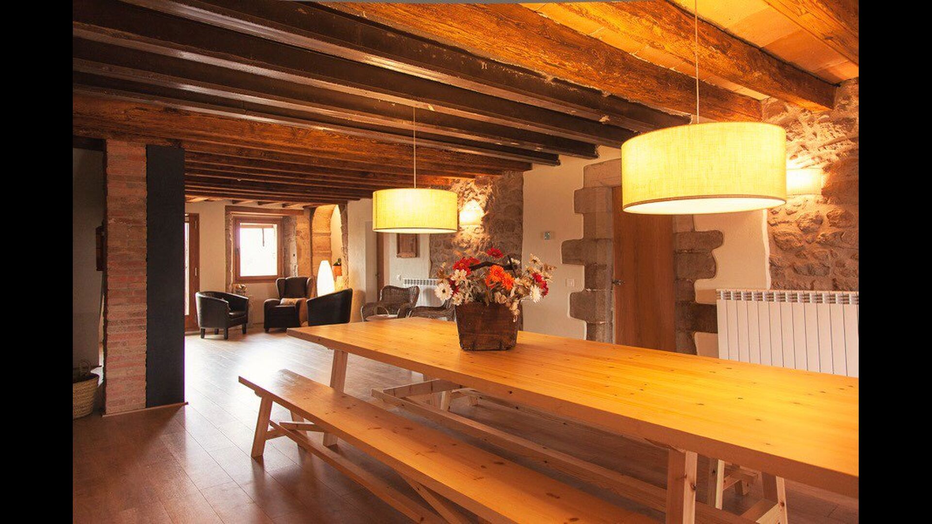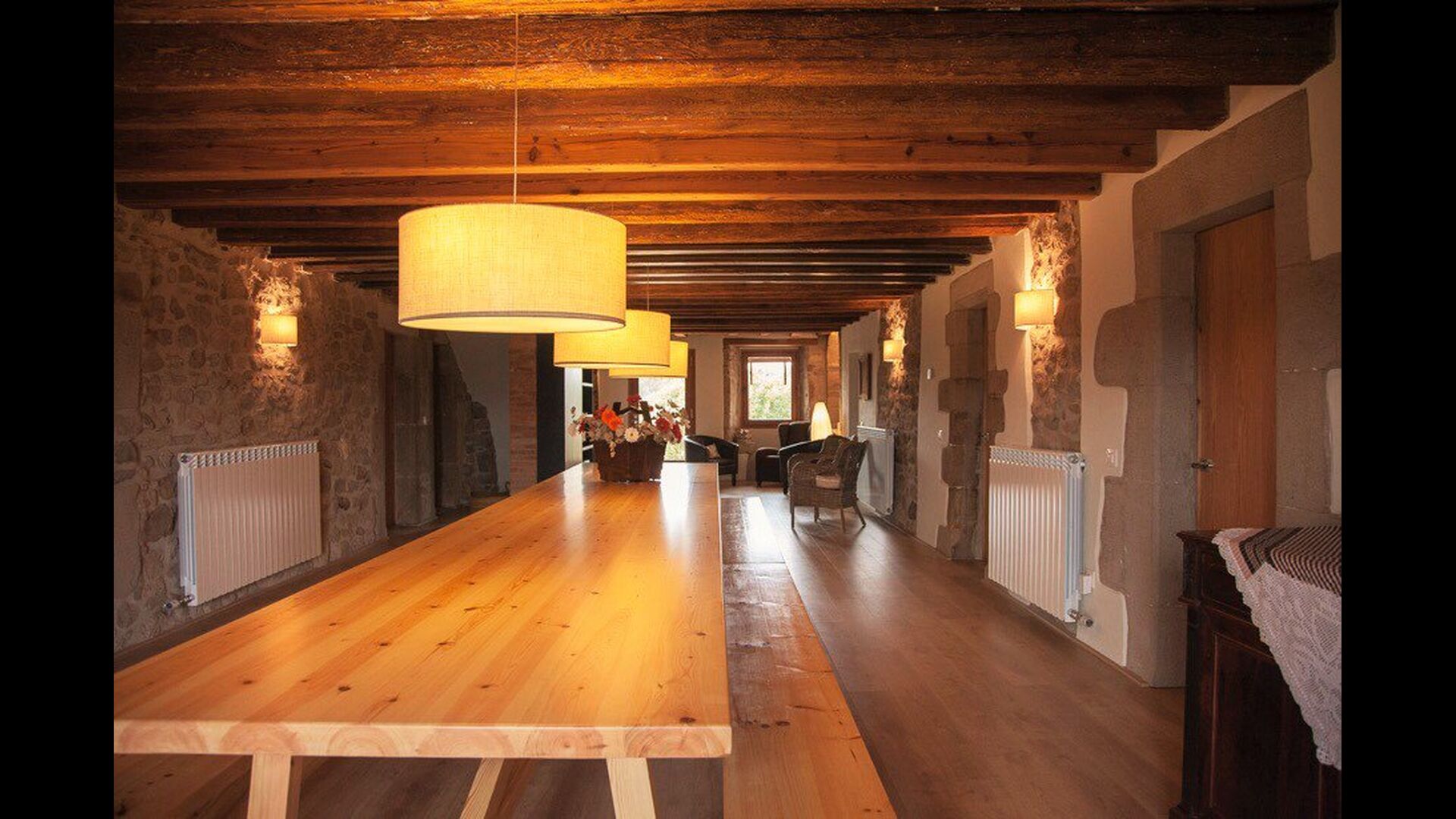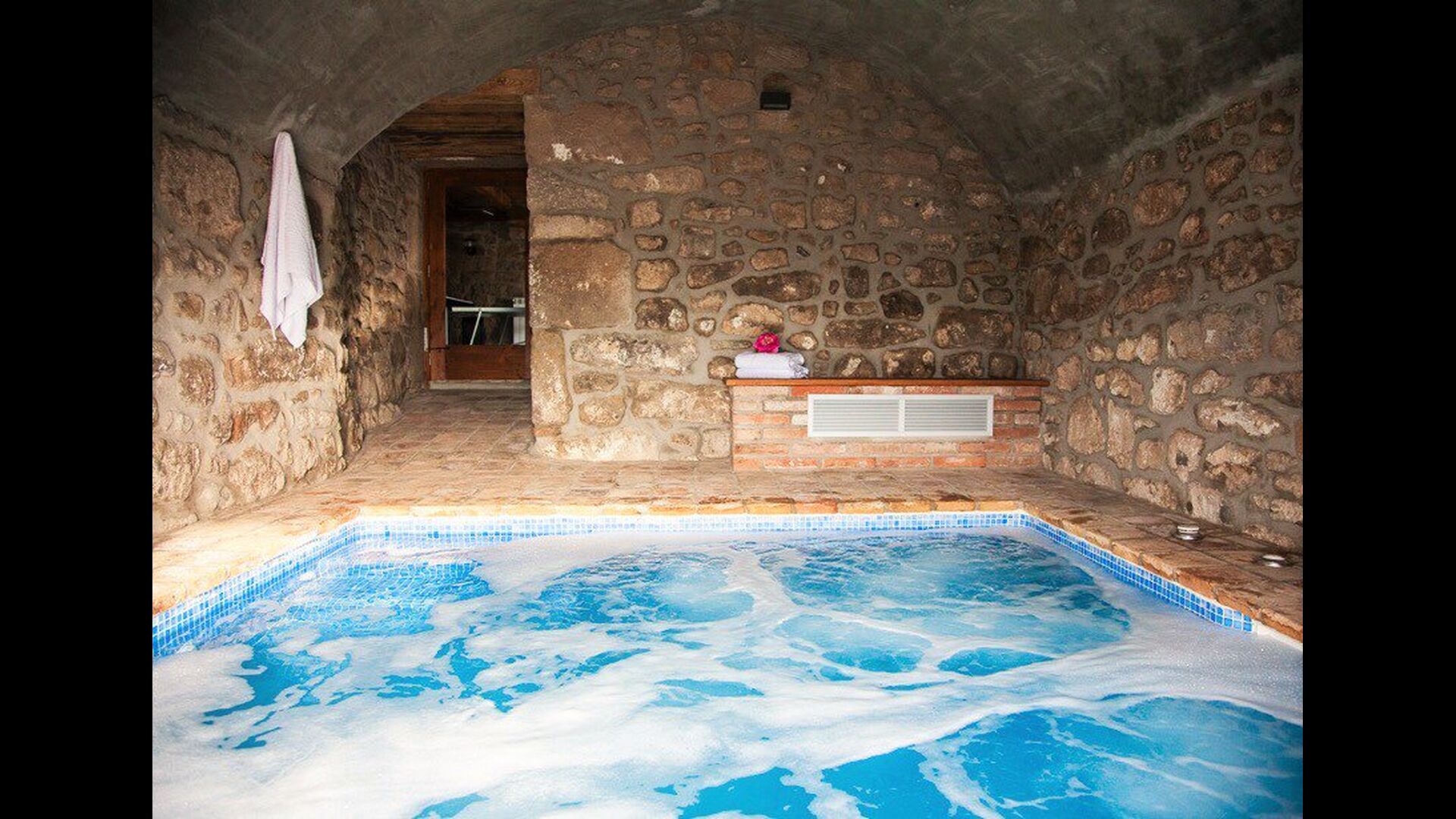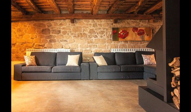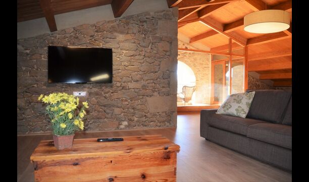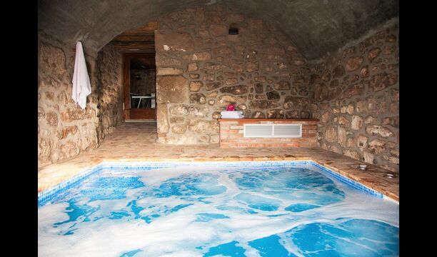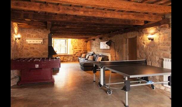 Det er ikke kun udeområderne der er kræset om i ferieboligen Masia del Cerdaña, der har plads til 23 gæster. Husets stueetage centrerer sig om et hyggeligt og super lækkertfællesområde med sofaer og fladskærms-TV, hvor man kan slappe af. Lige ved siden af er der en indendørs pool med spa funktion på 3x3,30 m2. Der er trappe ned i poolen og bænke, så man kan slappe af og opnå wellness i smukke og private omgivelser.