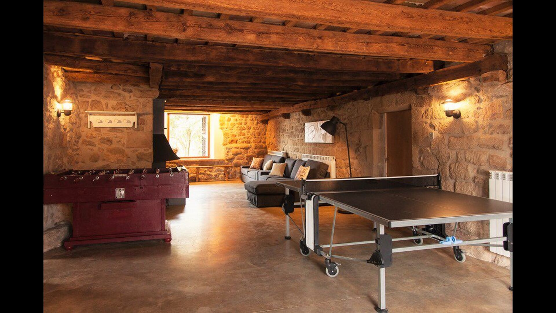 Der er også kræset for poolen, der er på 49 m2, hvilket er dejligt stort, så der er god plads til husets mange gæster. Swimmingpoolen har et lavvandet område og et dybere parti, som er forbundet med trapper. Der er desuden fodboldbane og basketbane, som både børn og voksne kan brænde energi af på og indendørs er der bordfodbold, bordtennis og mindre indendørs pool – så aktiviteter er der masser af.