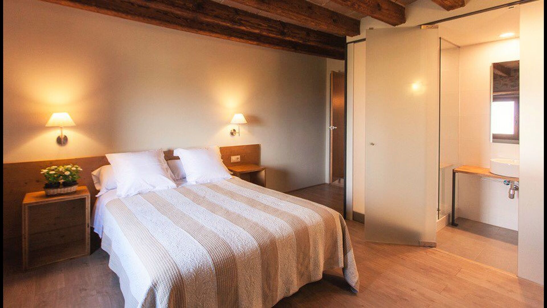 På husets første sal er der også et fællesareal med spiseområde – hertil hører et super lækkert designerkøkken med udsigt over landskabet og poolen. Der er 10 meget lækre soveværelser i Masia del Cerdeña: Et i stueetagen, seks på 1. sal og tre på 2. sal. Soveværelserne er flot og komfortabelt indrettede, og otte af dem har en suite badeværelse. Der er i alt 10 badeværelser.