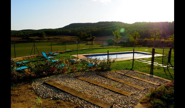 Poolområdet ligger ved siden af huset og vil højst sandsynligt være det sted hvor de fleste ferietimer tilbringes! Poolen har et areal på 11 × 4 meter og er indhegnet med henblik på at passe på de mindste i gruppen. Omkring poolen er den store 500 kvadratmeter have, inklusiv liggestole til solbadning - det perfekte sted at slappe af med en yndlingsbog eller et glas af den lokale vin. Lige over for poolområdet ligger den hyggelige terrasse med udendørs spisning og BBQ område.
