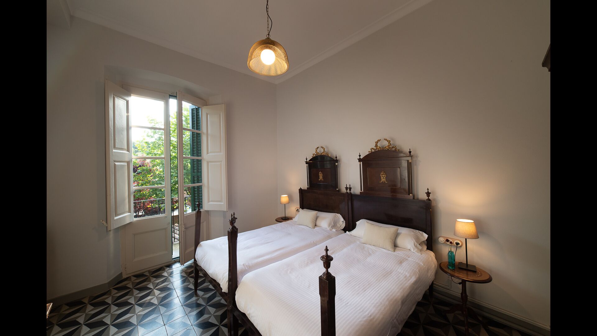Der er 11 soveværelser fordelt på de to etager, som er første og anden sal, da stueetagen er ubenyttet. Alle er rummelige dobbeltværelser. Alle værelser ligner mindre suiter på grund af deres store størrelser. Indretningen er stilfuld og klassisk, og de fleste af værelserne har balkoner. To af værelserne er børneværelser. Syv af soveværelserne har eget badeværelse, mens resten deler to rummelige badeværelser.