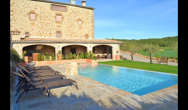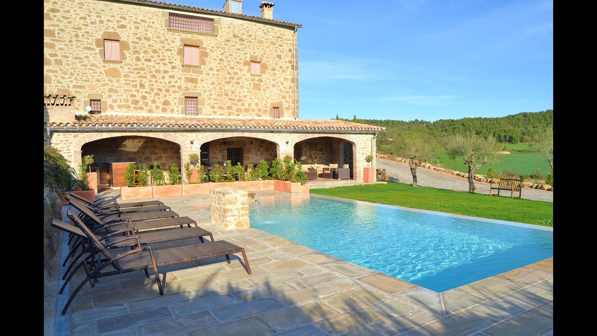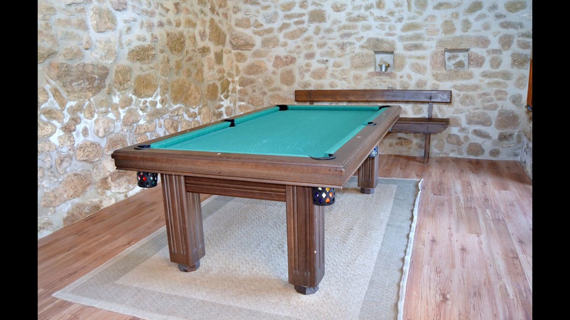 Selve swimmingpoolen er 11x4 meter og har en lille feature med kaskade funktion. Der er her et utal af rigtig gode liggestole og fra pool området er desuden en billedskøn udsigt. Bag huset er et lille bibliotek med billard og der er desuden bordtennis i Masia Laveña. Lige ved husets indgang er desuden toilet, så I ikke behøver at gå op.