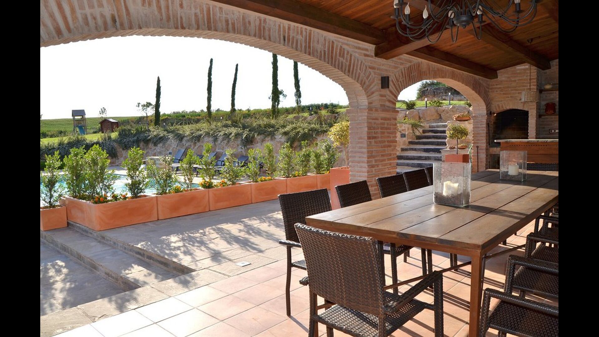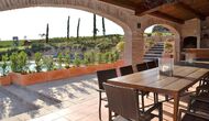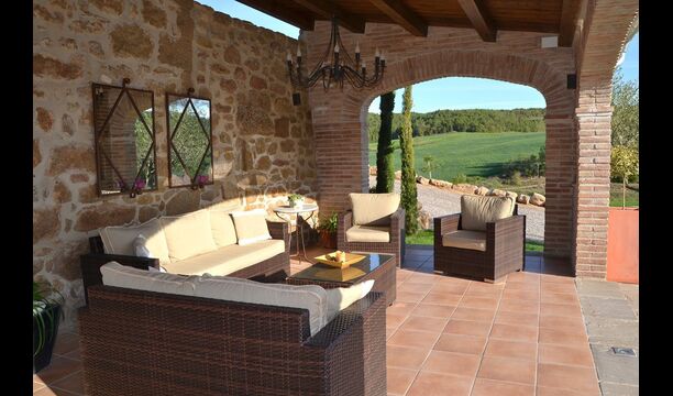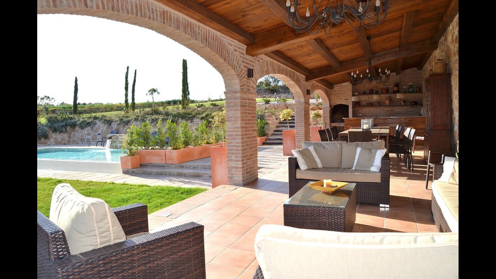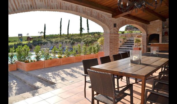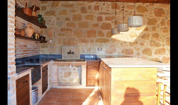 Man vil nok foretrække at spise udenfor i stedet og i Masia Leneña er der den bedste udendørsterrasse vi i vores tid har set (og vi har vel besøgt 500 feriehuse). Der er her lavet et superlækker udekøkken med BBQ, gasblus, køl/frys og opvaskemaskine. Udekøkkenet ligger i forlængelse af det store terrasse bord og på den overdækkede terrasse er desuden en rigtig lækker lille sofagruppe. Terrassen er desuden perfekt placeret da den ligger med udsyn til pool området. Her kan man altså ligge og flyde omkring poolen, hurtigt tage lidt koldt at drikke og skal der tilberedes mad kan man gøre det her og nyde sommerlivet med de andre samtidigt. Med indgang fra terrassen er desuden endnu en spisestue bygget meget smukt i rustikke omgivelser.