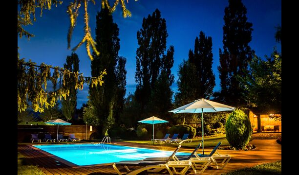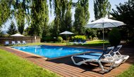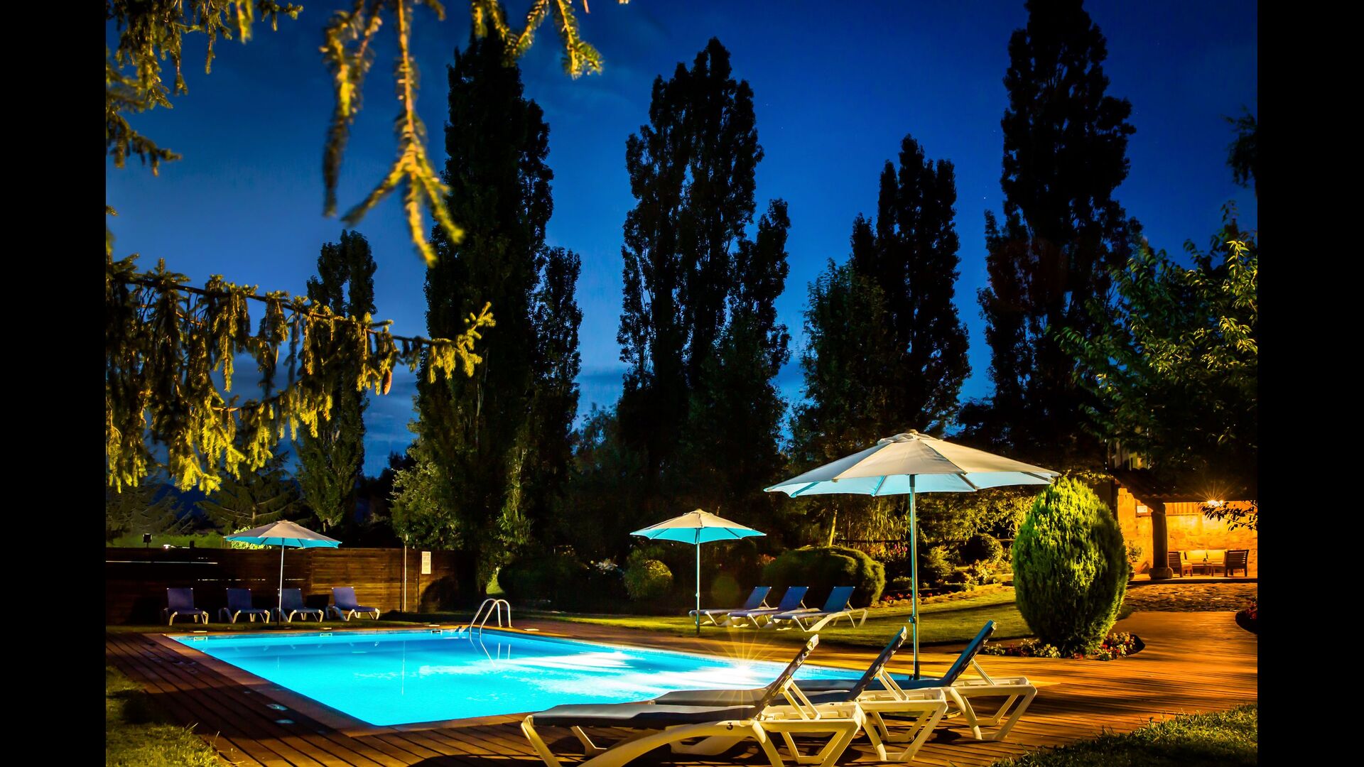 Det naturlige samlingssted er poolområdet. Den store swimmingpool på 12x6 meter er omgivet af terrasse med parasoller og liggestole, hvor man kan slappe af mens børnene leger i swimmingpoolen.
