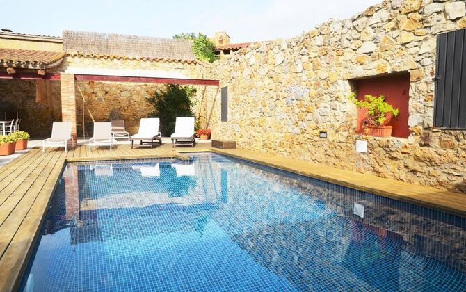 Normalt kan man ikke både have pool og bo i byen - dette er dog tilfældet i Samarit de Pals. Her får man en dejlig pool på 8x4 meter, med trapper og varierende dybder, så de mindre i feriegruppen også kan få fuld gavn af den. Poolområdet har diverse luksuriøsiteter, bl.a. liggestole, skyggeområder, bad, etc., så der er god mulighed for at finde sig til rette og slappe af ved poolen. Gården og poolen er delt med den anden lejlighed, men der er en privat terrasse med grill og spisebord som I har helt for jer selv.