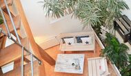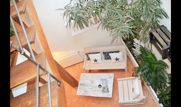 På anden sal er der, udover det førnævnte soveværelse, en stue, et køkken, et badeværelse og en spisestue. Stuen er arrangeret i en hyggelig stemning, hvor ejeren har lagt opmærksomhed i alle detaljer. Stuen har en stor sofa og samt to komfortable stole. Køkkenet har alt det, man har brug for og nok mere til. Her er der desuden en balkon med udsigt over den stille gade og tilholdsstedet, der tilhører huset.