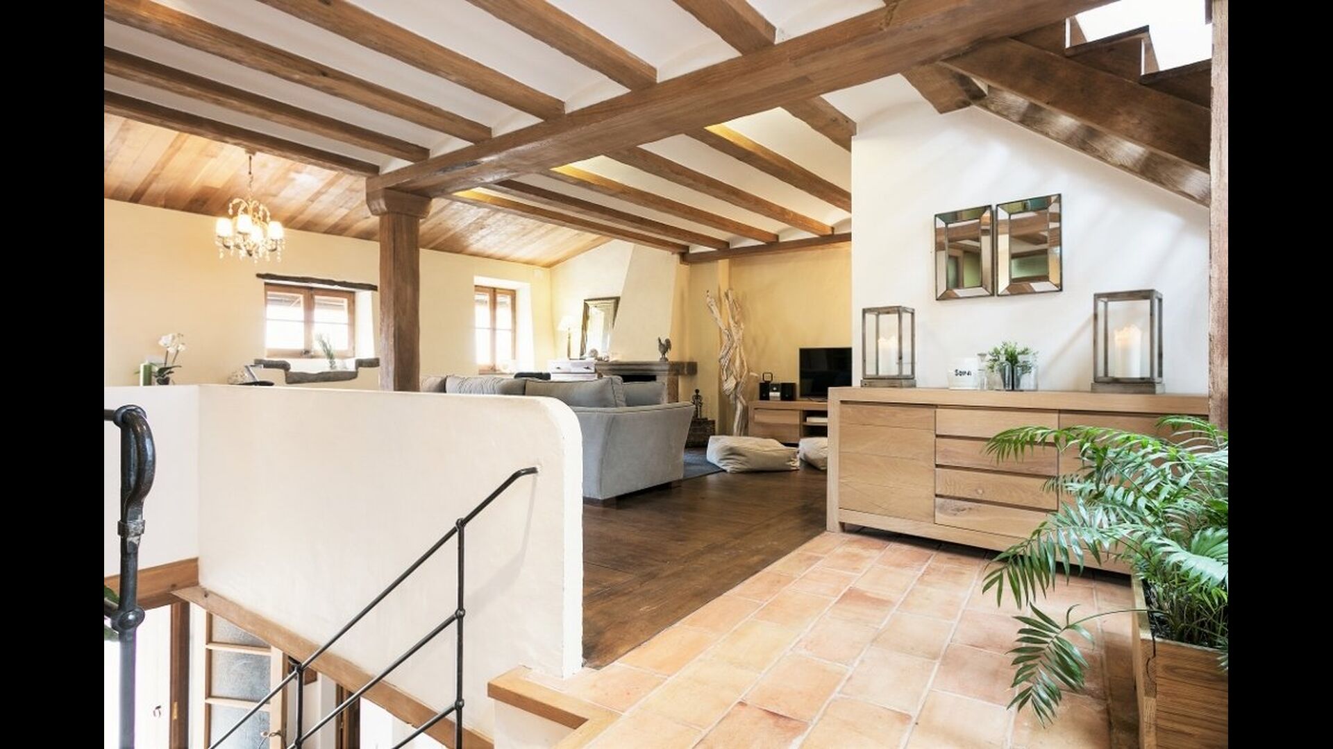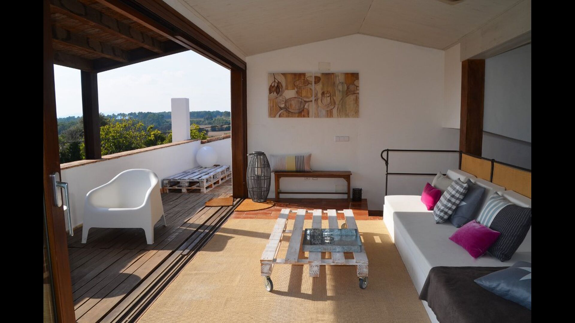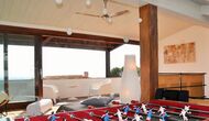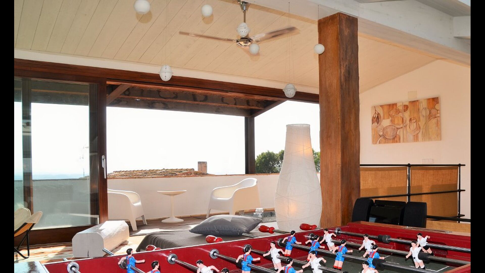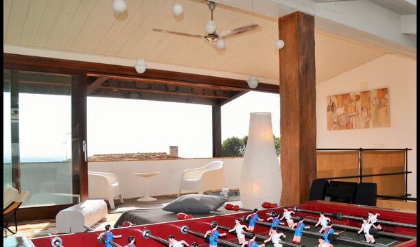 Tredje sal gør intet andet end at tilføre endnu mere til det allerede vidunderlige hus. Rummet er oplyst af sollyset gennem de store panorama-vinduer, som kan åbnes efter behov. Faciliteter såsom bordfodbold, bar, musikanlæg, diverse stole og selvfølgelig den store sofa bidrager til at skabe det perfekte afslapningsmiljø. Desuden er der fantastisk udsigt fra den store terrasse, som er forbundet med rummet. Snup et glas, fyld det med hvad end der lyster, smid dig i sofaen og nyd den catalanske solnedgang bag bjergene i distancen. Rummet er minder om de andre, når det kommer til indretning; det er meget moderne og imponerende dekoreret. Ejeren af huset er professional indretter og er kendt for at indrette for store firmaer – dette er i høj grad reflekteret i det smagfulde hjem.