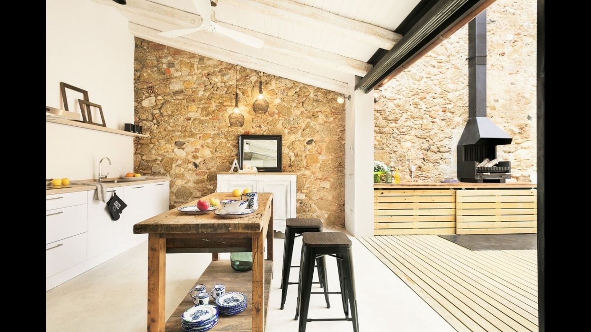 Når man kommer gående op ad den hyggelige catalanske landsbygade, bemærker man knapt Cal Mareña de Costa Brava, da det smelter sammen med de andre autentiske huse. Man tænker nok ikke, at dette hus er noget specielt - men det skal snart ændre sig. Det indendørs udseende opnår nemlig nemt en plads blandt de flotteste huse, vi nogensinde har besøgt.
