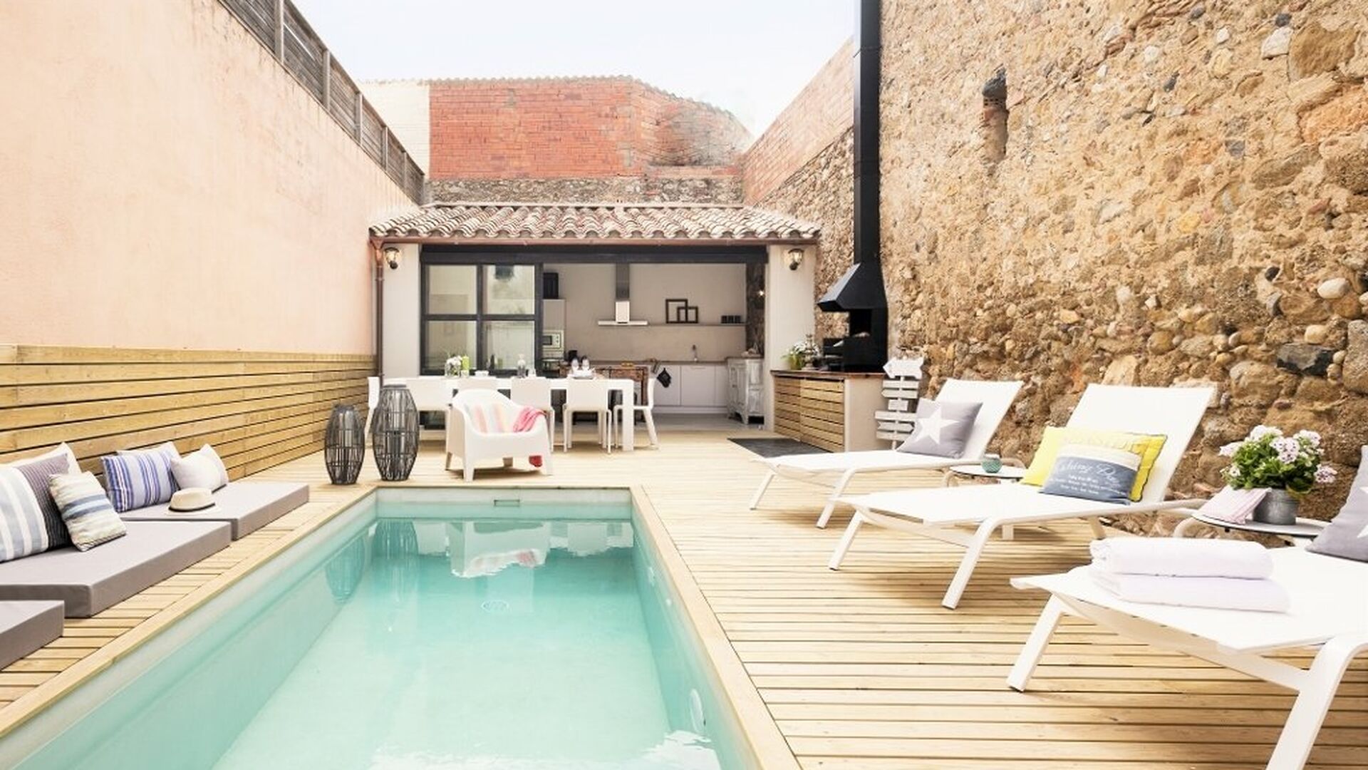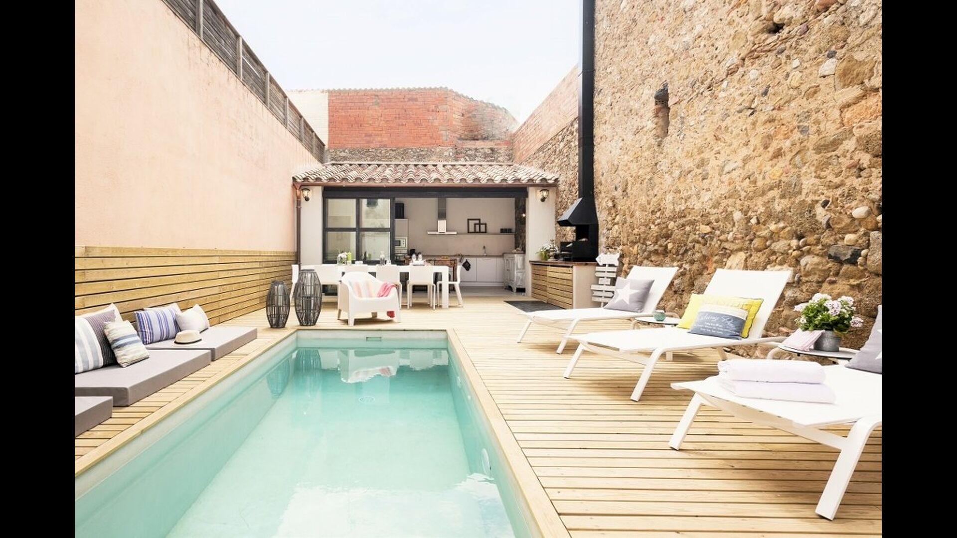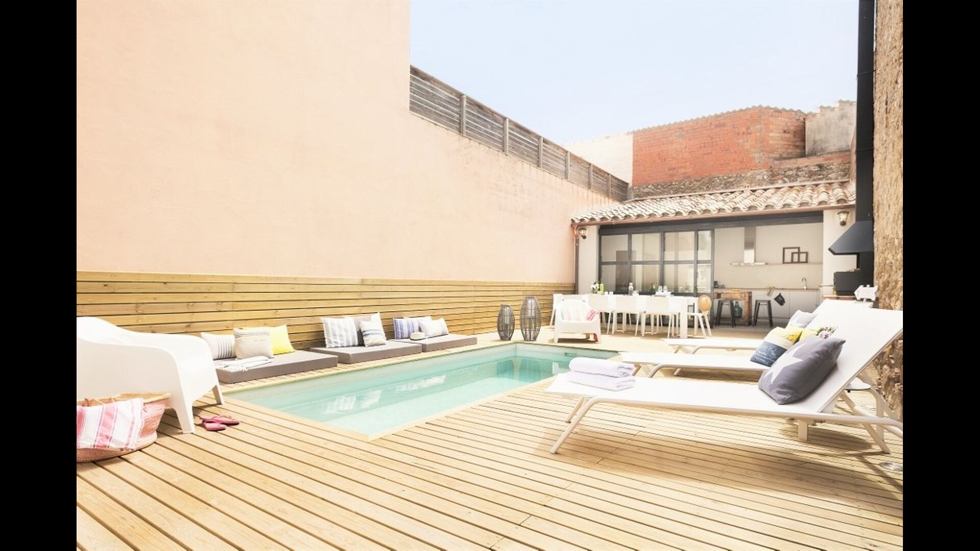 For at vedholde det høje niveau, er der desuden et lille vidunderligt, privat BBQ-område med en mindre pool. Her er desuden et rigtig godt ekstra køkken, så I også kan vælge at nyde jeres middage ude. Læs en bog eller andet, mens du holder øje med børnene der leger i poolen – mulighederne for afslapning og aktiviteter er uendelige for dette feriehus, som bestemt formår at skabe den perfekte feriestemning. Poolområdet ligger tre skridt fra hoveddøren på den anden side af huset.