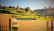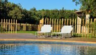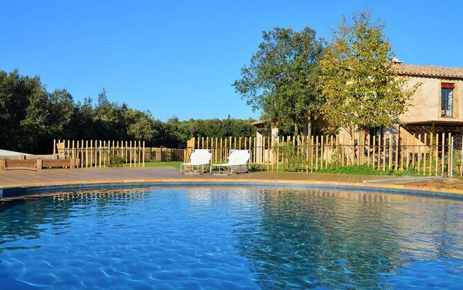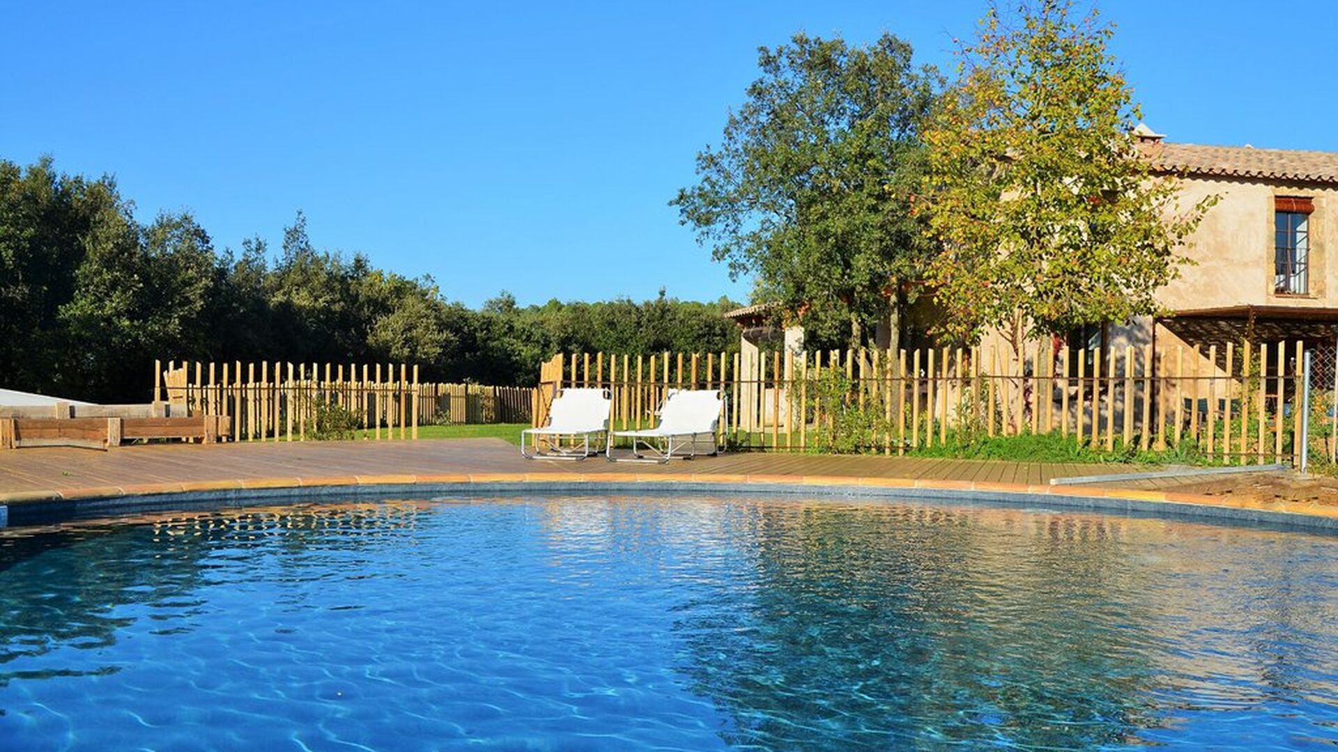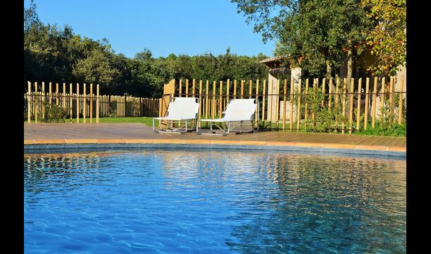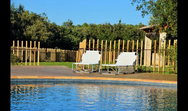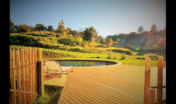 Udendørsområdet giver de yngste i feriegruppen masser af plads til aktiviteter. Først og fremmest er der den store, helt runde swimmingpool med en diameter på 8 meter. Det afkølende vand kan, specielt i sommervarmen, anbefales – og der er liggestole ved poolområdet, hvis man først vil nyde den varme sol. Der er ligeledes en sauna, som kan, hvis man bor der i vinterhalvåret, være kærkommen.