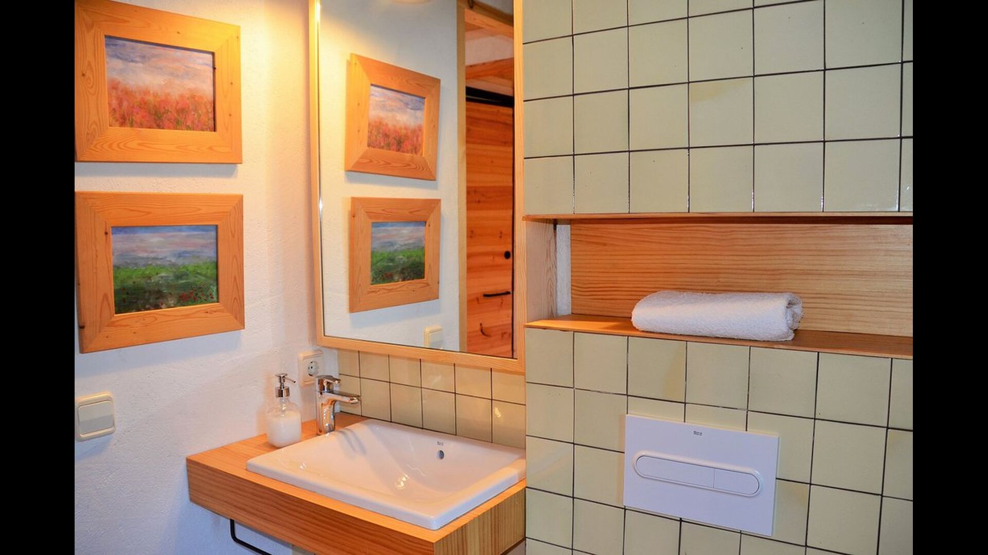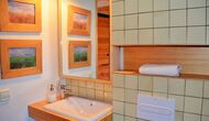 På husets første etage ligger de forskellige soveværelser og badeværelser. Der er to værelser med dobbeltseng og et værelse med to enkeltsenge (som egner sig perfekt til et børneværelse). Soveværelserne er flot indrettede med mange elementer smukt udformet i træ – dette giver en lys og rummelig atmosfære, som passer glimrende til en afslappende ferie. På samme etage ligger der to moderne badeværelser.