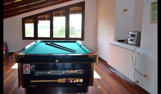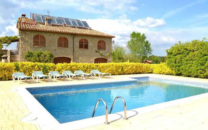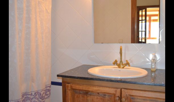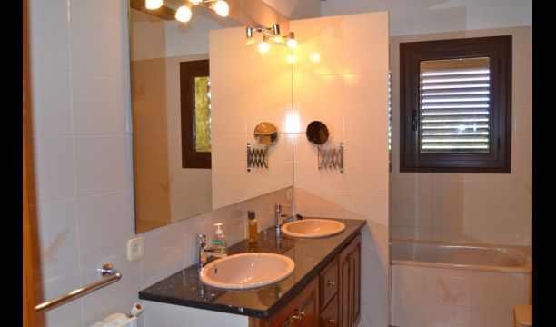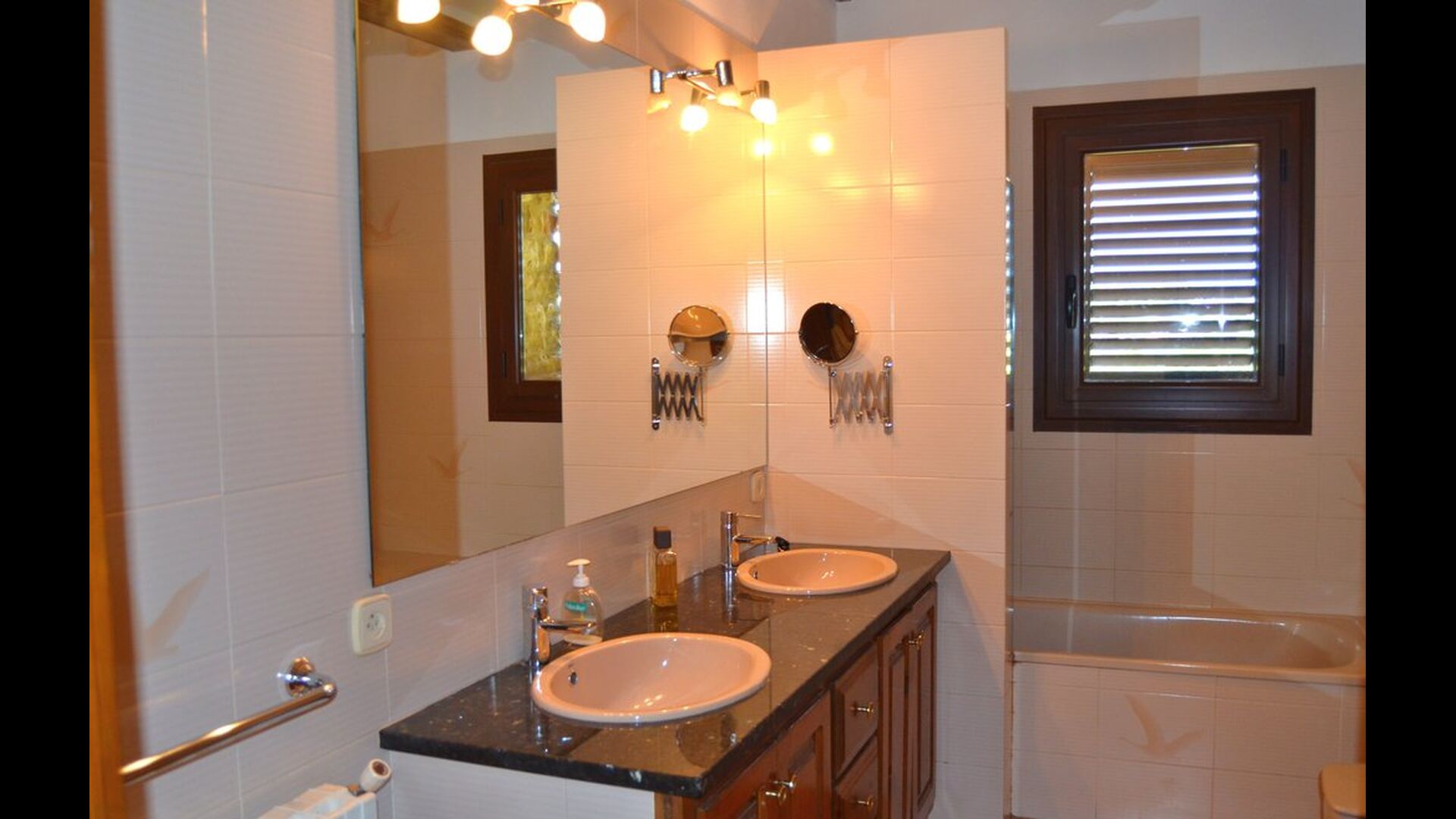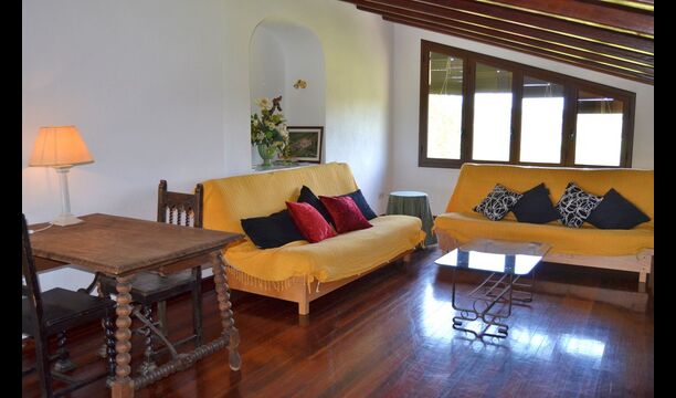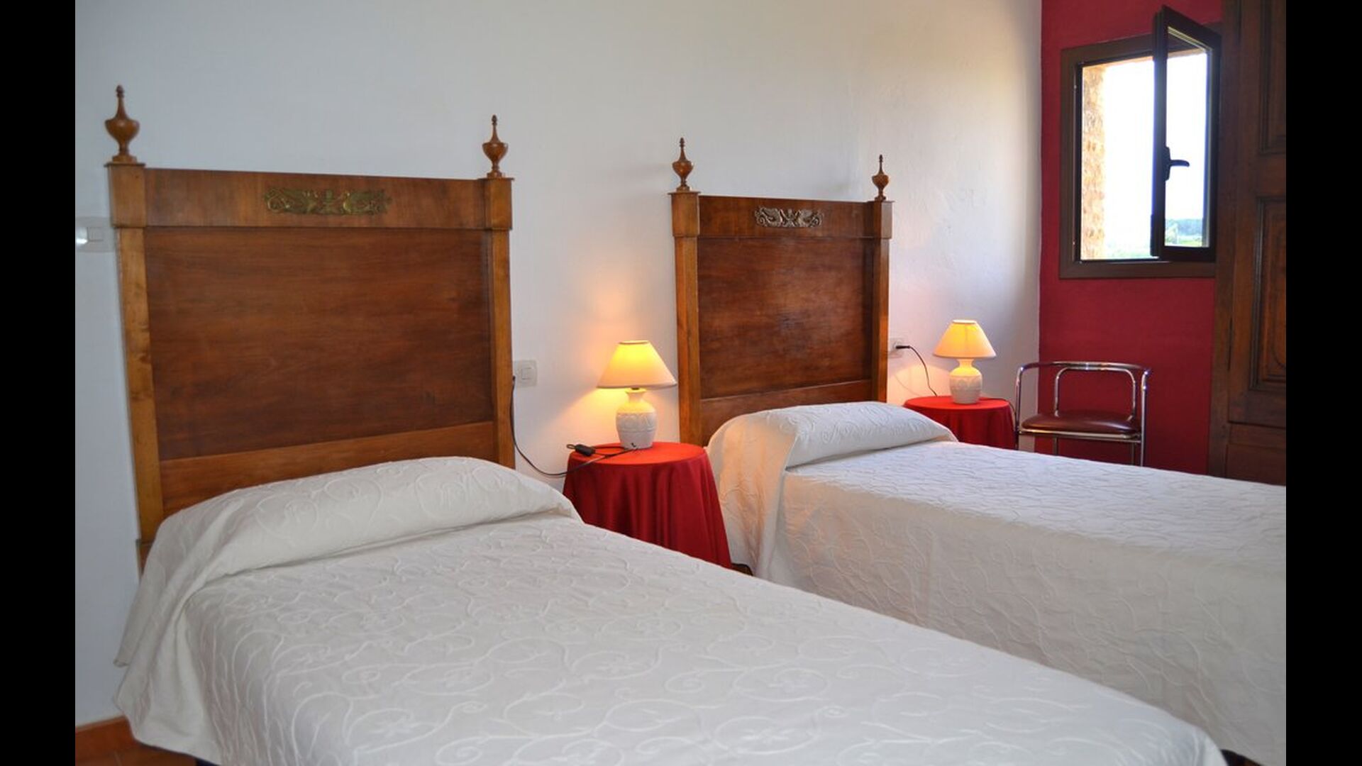 Huset ligger helt uden naboer fra husets førstesals-terrasse eller fra poolområdet, kan man sidde og nyde de smukke omgivelser. Ferieboligen har 5 dobbeltværelser (4 med dobbeltsenge og 1 med enkeltsenge) samt 2 enkeltværelser, alle beliggende på første sal, hvor et alrum giver adgang til soveværelserne og de tre badeværelser. På anden sal er indrettet et chill-out område med to sofaer i den ene ende og med billardbord i den anden ende.