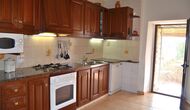 På første sal har man også et veludstyret køkken som er åbent til spisestuen og med direkte adgang til den udendørs terrasse. Fra terrassen er der en trappe ned til haven og poolområdet, så man ikke behøver at gå rundt om huset.