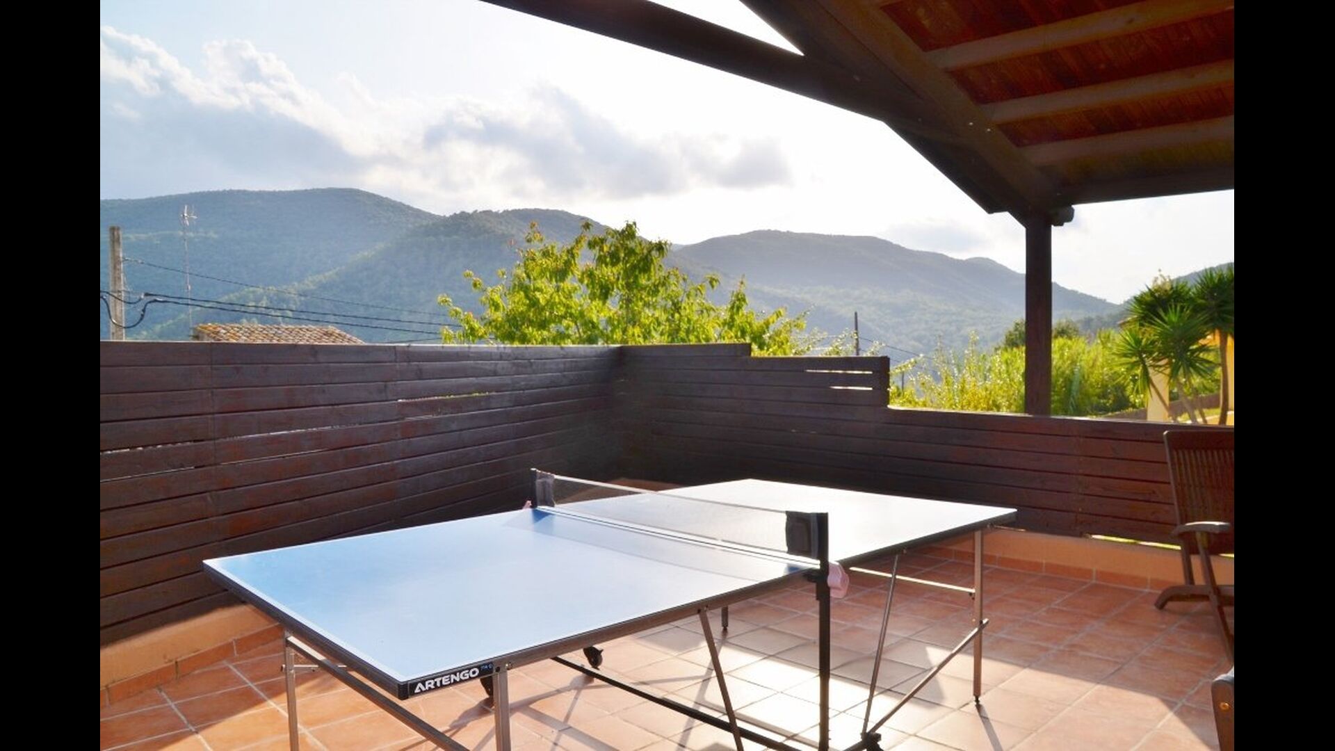 Casa de Soleña har en rigtig god overdækket terrasse, hvor man kan tilbringe mange timer, hvis det bliver for varmt i solen. Ud over gode terrassemøbler til alle er der bordtennis og et rigtig godt BBQ område. Det er ikke svært at forestille sig at samtlige sommerdage og aftener kan leves godt netop her.