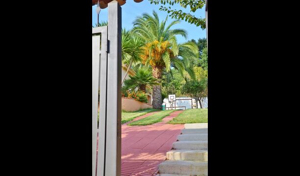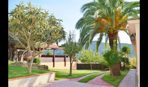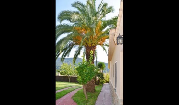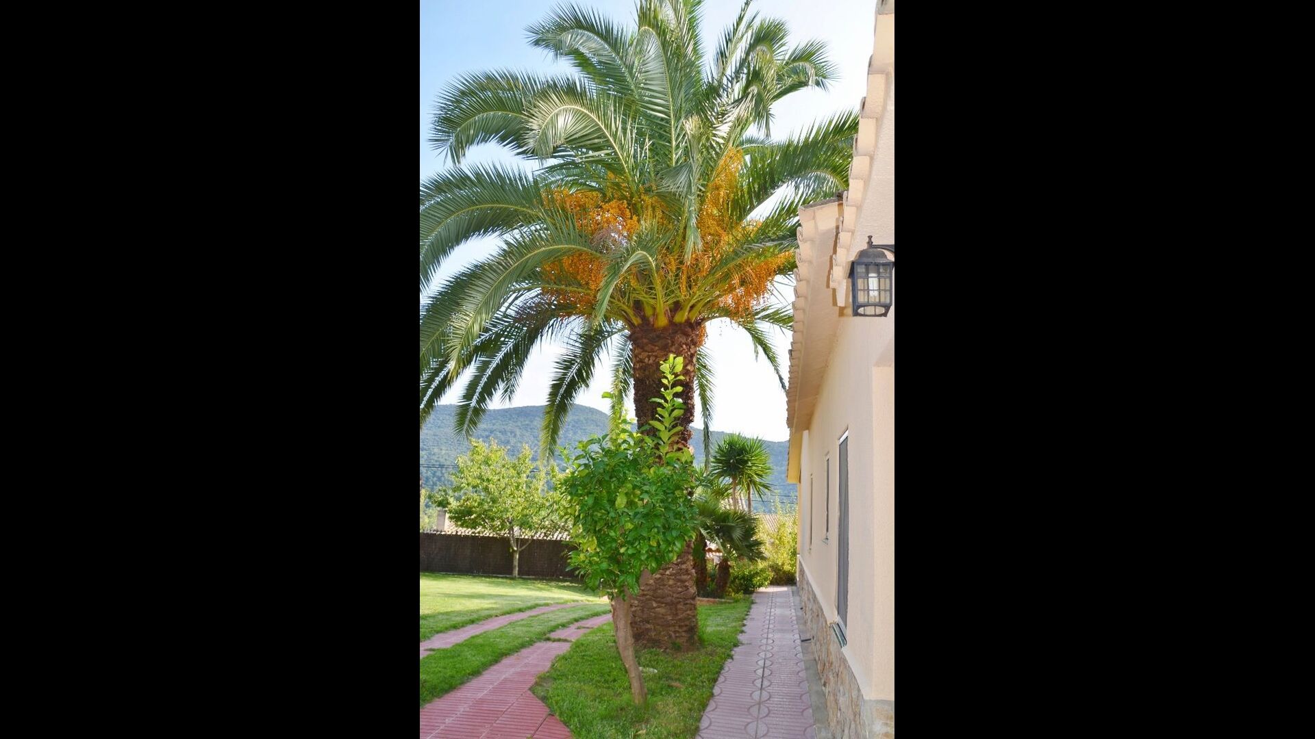 Huset ligger på en stille vej og er skærmet med en mur og en aflukket port, så 100 % privatliv er sikret. Selve haven er beplantet med palmer og ældgamle, smukke oliventræer, hvilket skaber en velkommen eksotisk sydlandskstemning. I baggrunden tårner de Catalanske bjerge sig op og rammer hele feriehuset ind i en helt unik stemning.