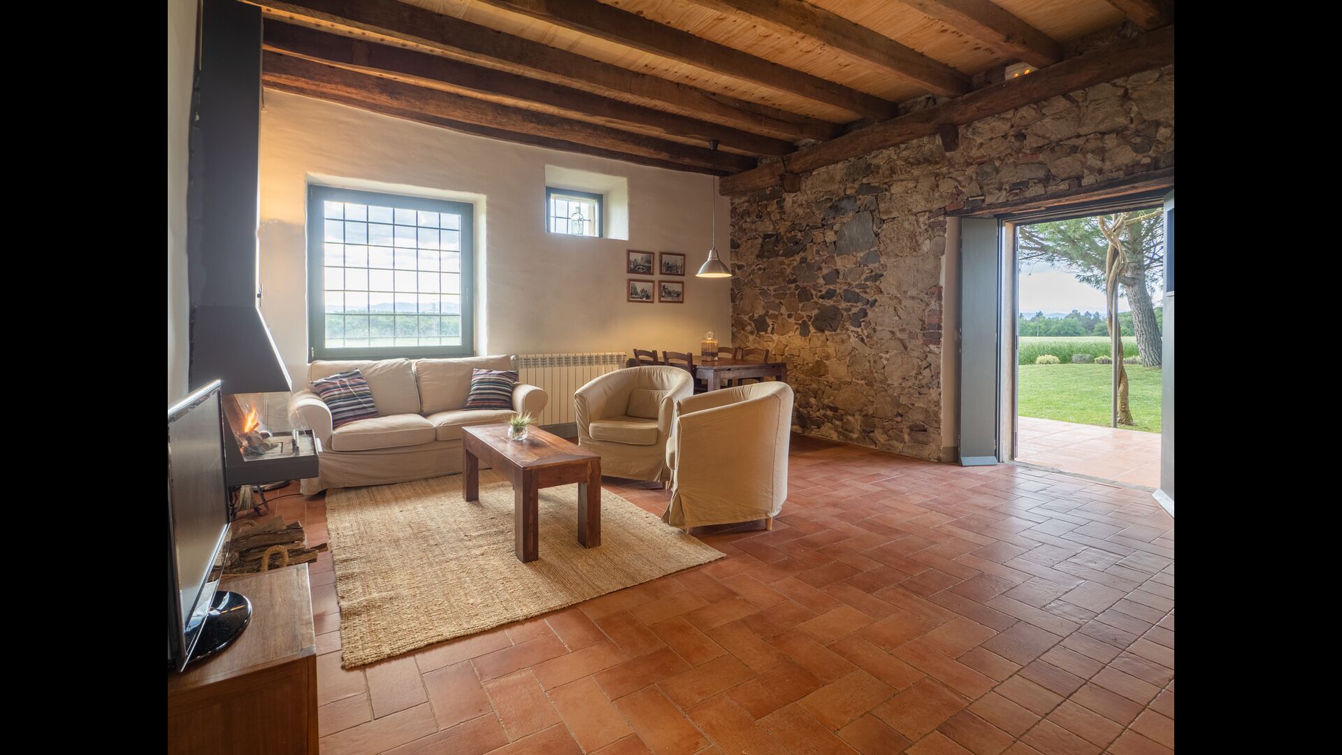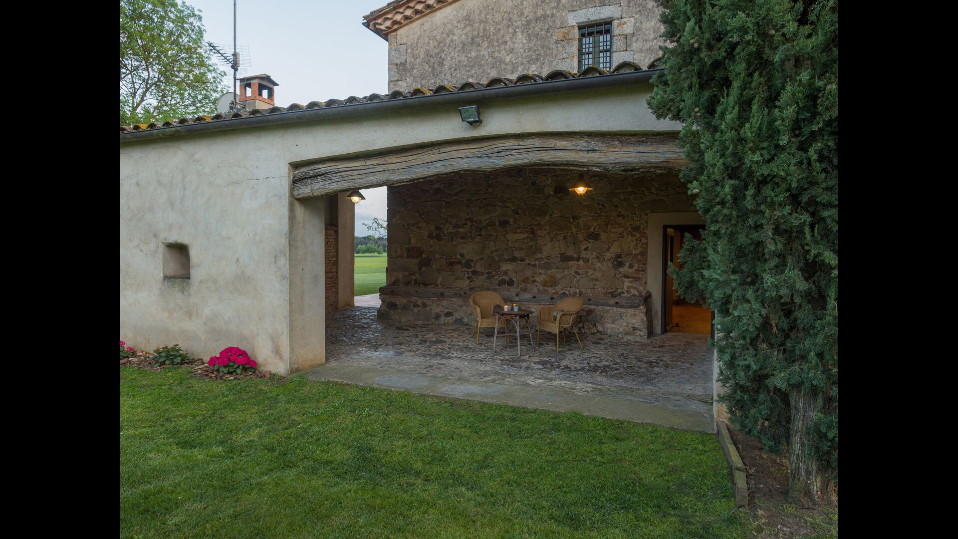 Huset har en naturskøn placering i landlige omgivelser med skov, bækker og mere. Selve bondegården er omgivet af et stort grønt område med træer og afgrøder. Der er desuden en enestående udsigt over Montseny, La Selva-sletten og en god del af foden af de katalanske Pyrenæer.