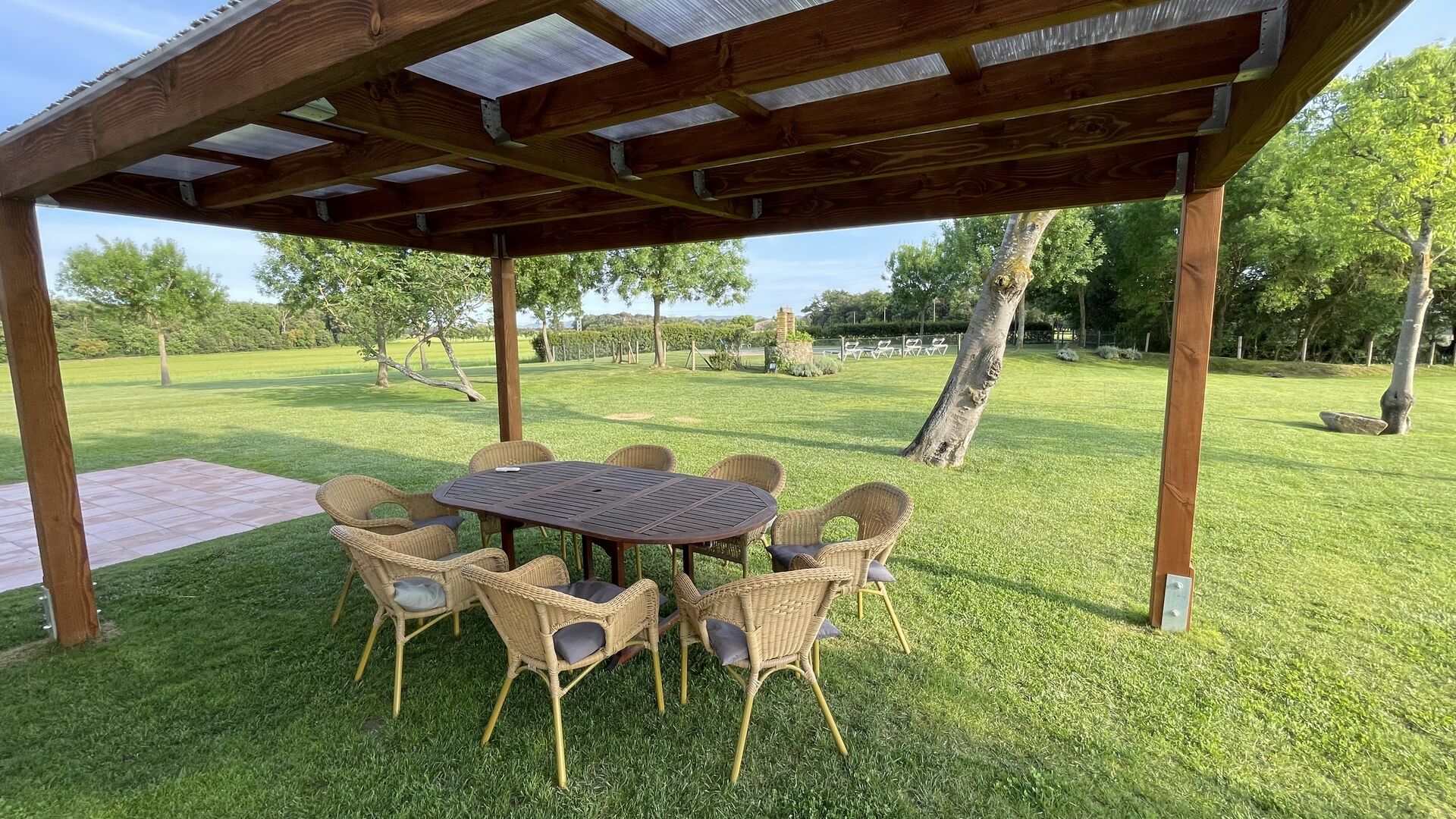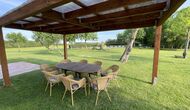 Feriehuset har sin egen store swimmingpool og en stor græsplæne til leg og solbadning. Der er også en udendørs terrasse og udemøbler, så alle sammen kan nyde din middag sammen som en gruppe.