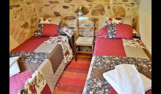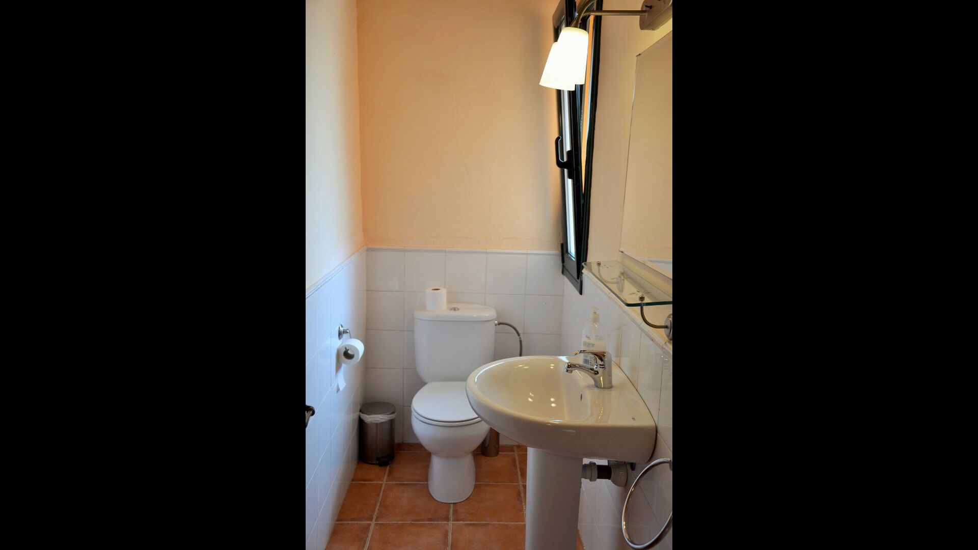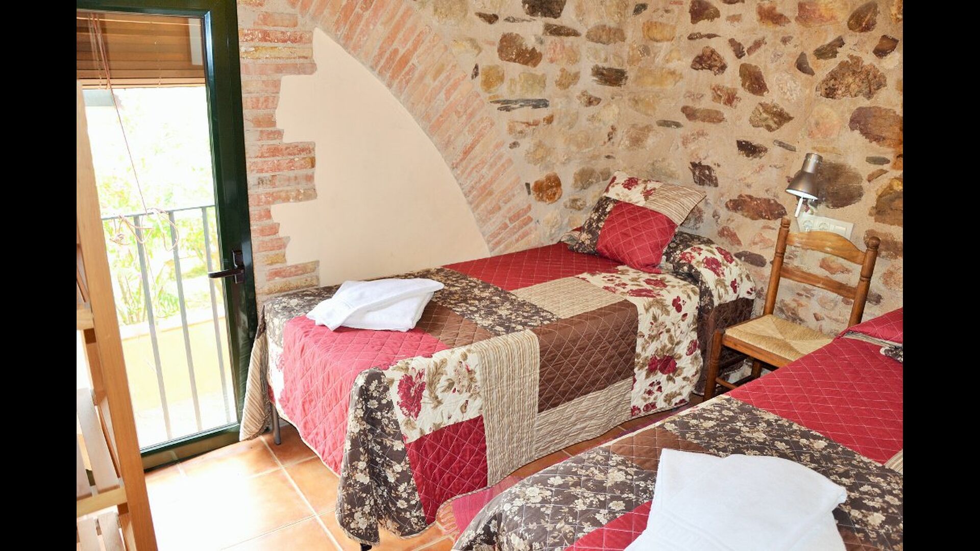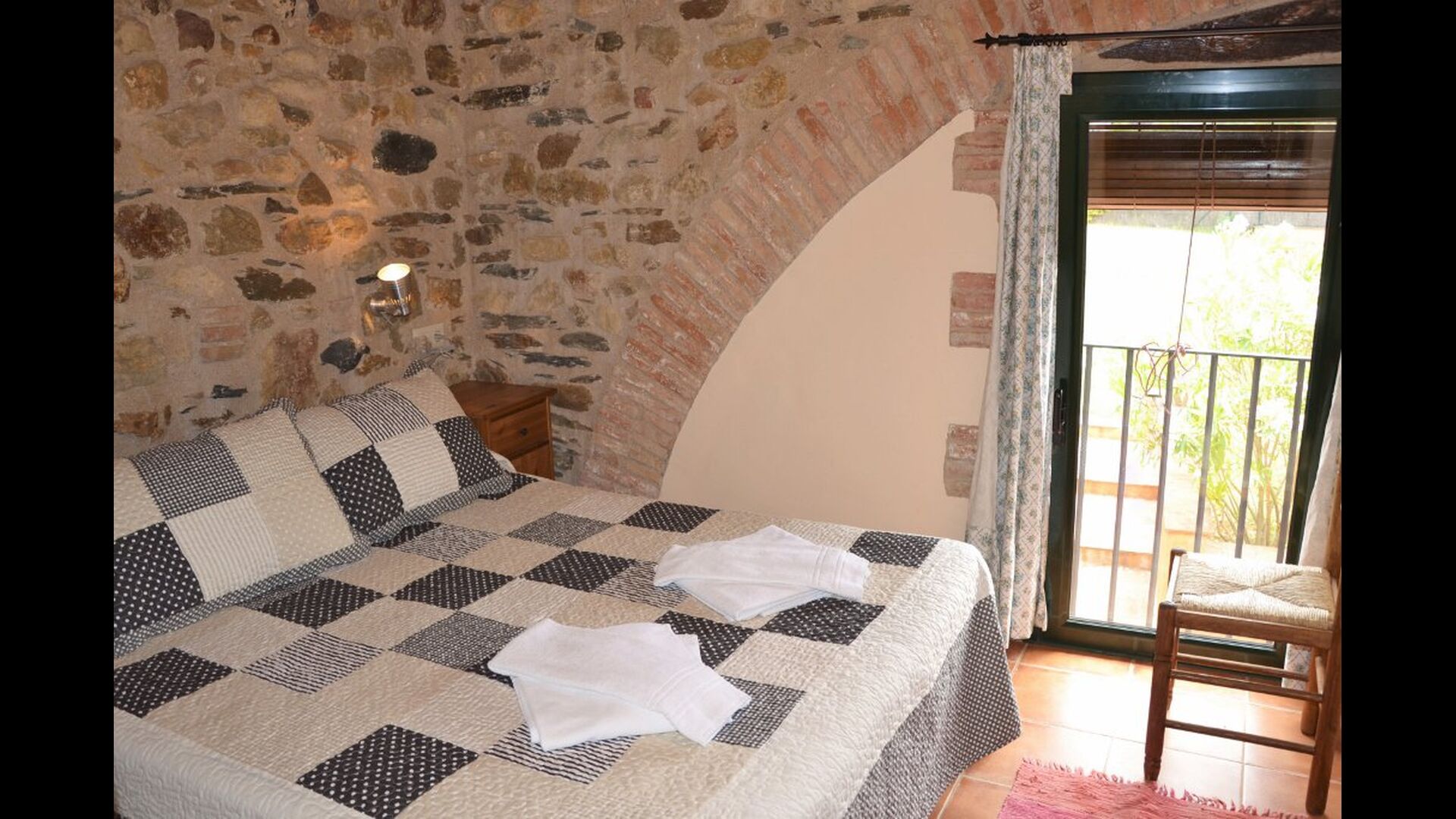 Stueetagen består af et fællesrum med sofaområde med TV, et spisebord og et veludstyret køkken. Meget af væggene er lavet af sten og loftet af bjælker – dette giver en god fornemmelse for den typisk catalanske stil.