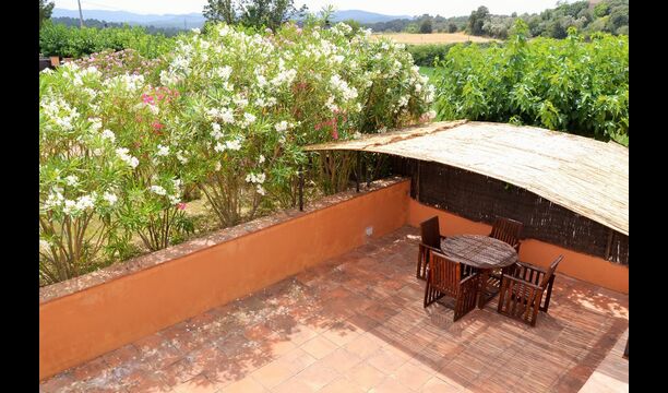Huset har en meget stor have med kæmpe swimmingpool, som er sikret med hegn og med liggestole, så man kan slappe af, afbrudt af en svalende dukkert. Resten af haven er der flere terrasseområder og appelsin- og citrontræerne giver både skygge og et strejf af sydlandsk stemning. I landsbyen i gåafstand er der et par restauranter og en butik med lidt af hvert. Hver dag kl. 12:00 kommer der desuden brødbil på torvet, så man kan købe frisk brød til frokosten. Større supermarkeder findes i La Bisbal, også kendt for sin keramik, 5 km. fra huset.
