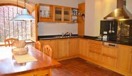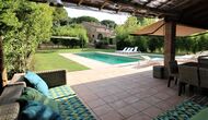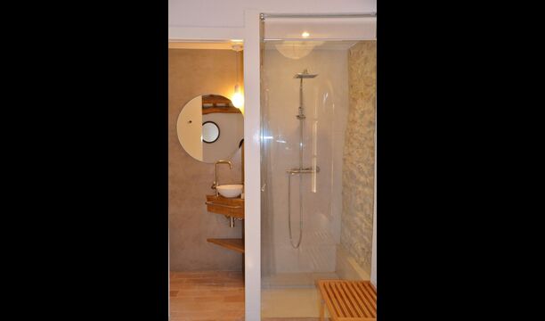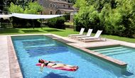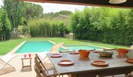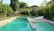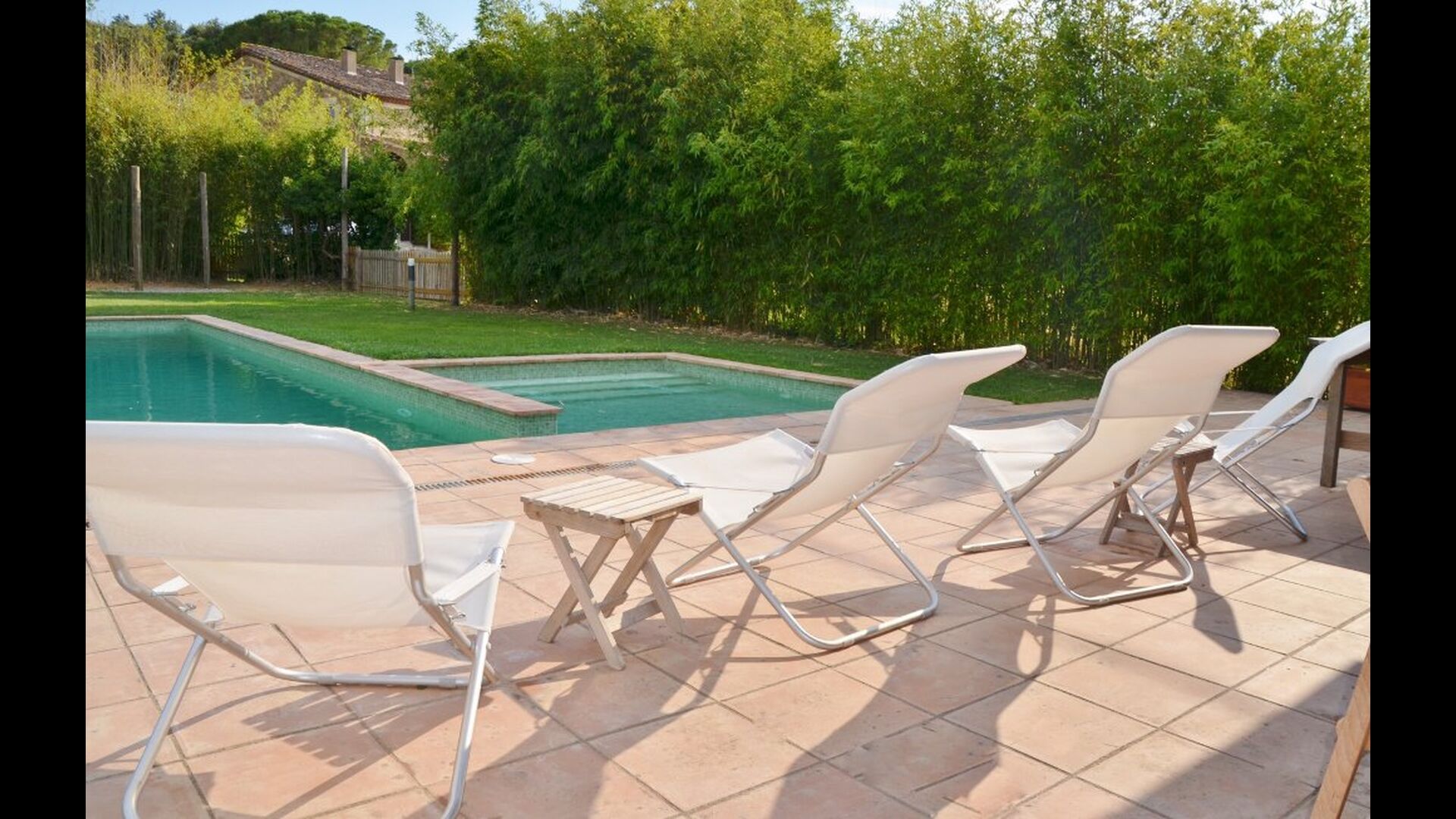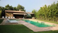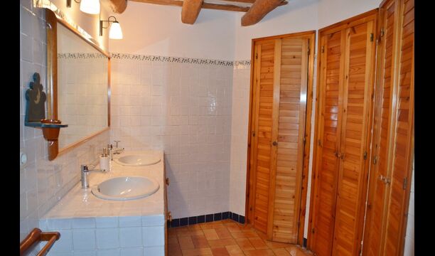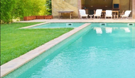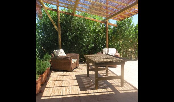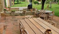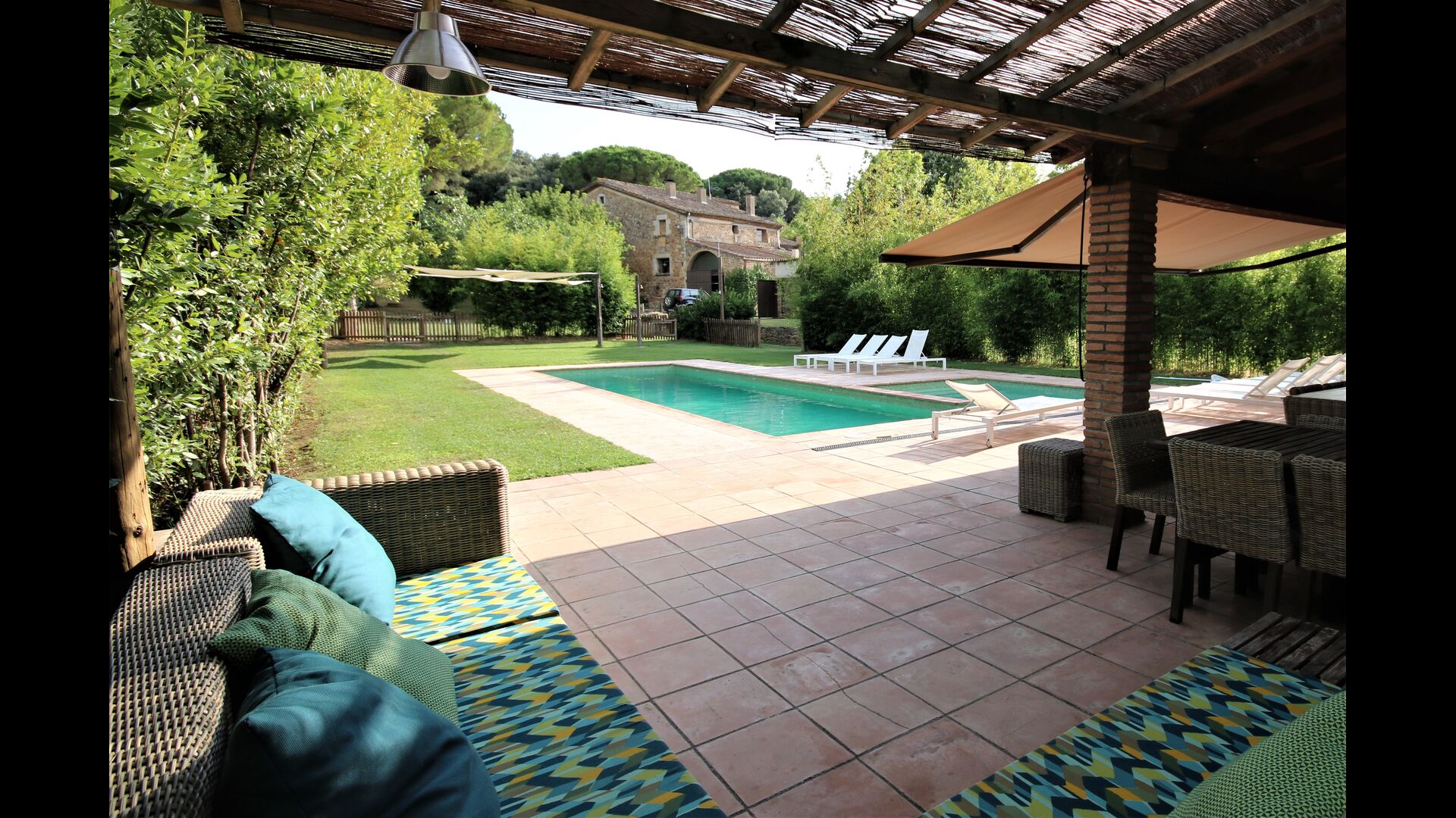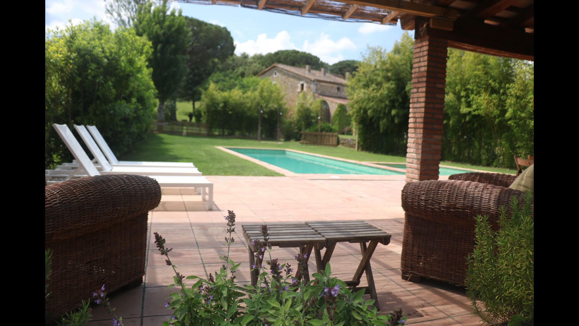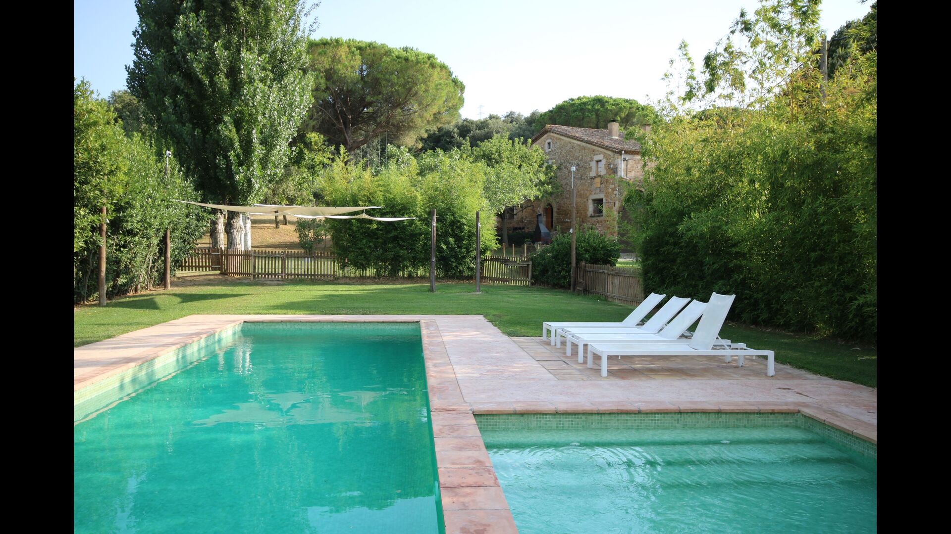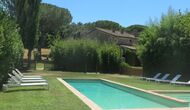 I den anden ende af haven, med en fremragende udsigt over markerne, finder du det store poolområde (indhegnet for at beskytte små børn). Swimmingpoolen, som er med saltvand, er 10m x 4m meter, og desuden er der et lille bassin til de helt små børn. Ved enden af poolen er der en stor overdækket terrasse med udendørs køkken, rindende vand, køleskab og grill. Her kan i selv tilberede og spise måltider. Der er også et toilet, så du ikke bliver nødt til at gå hele vejen ind i huset.