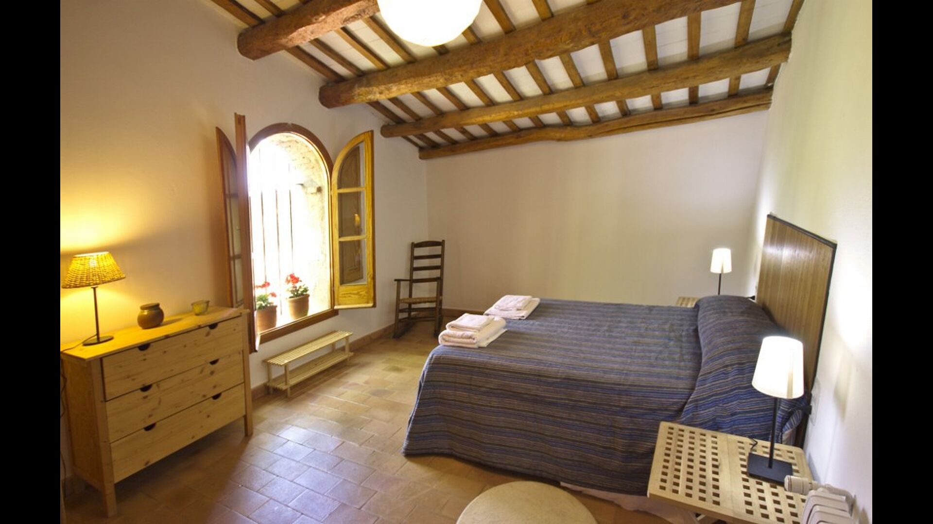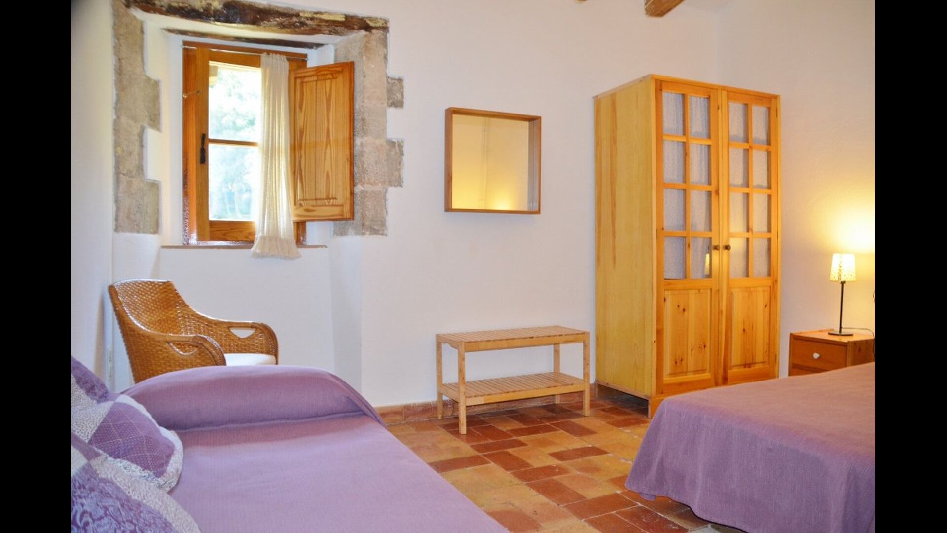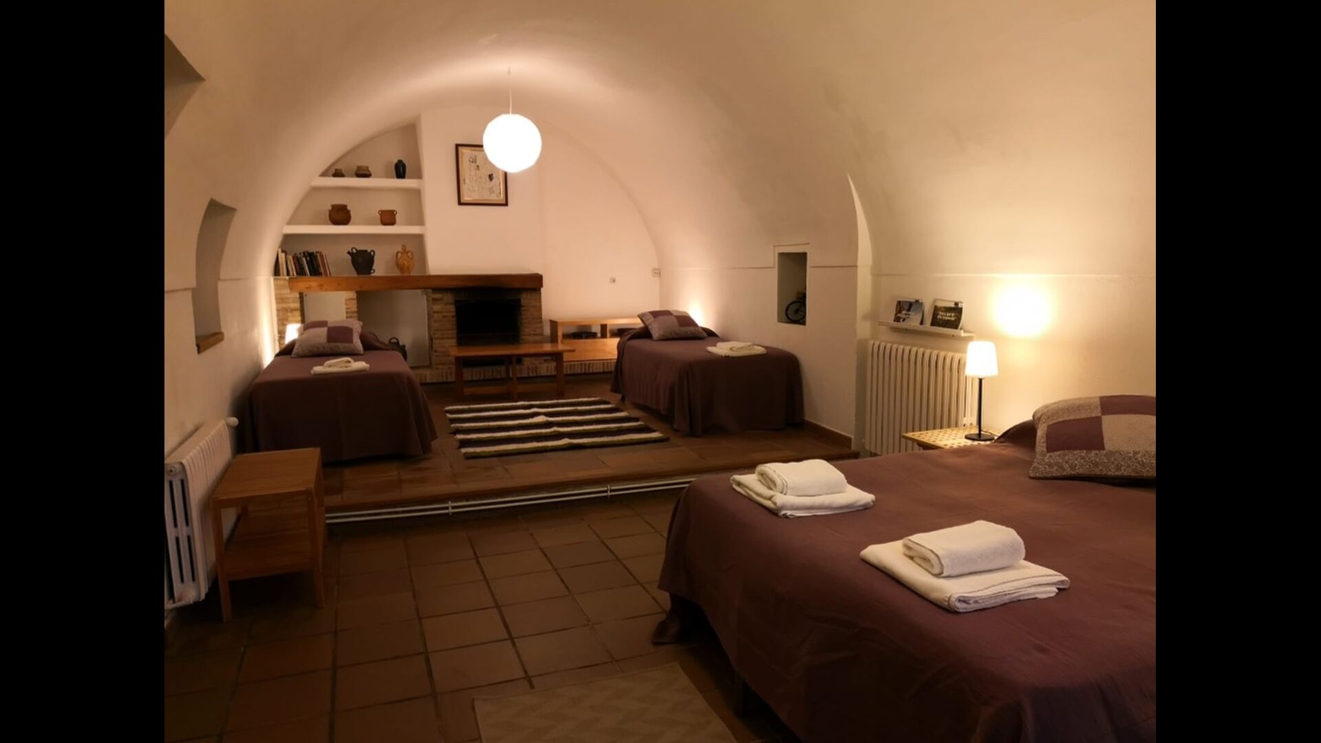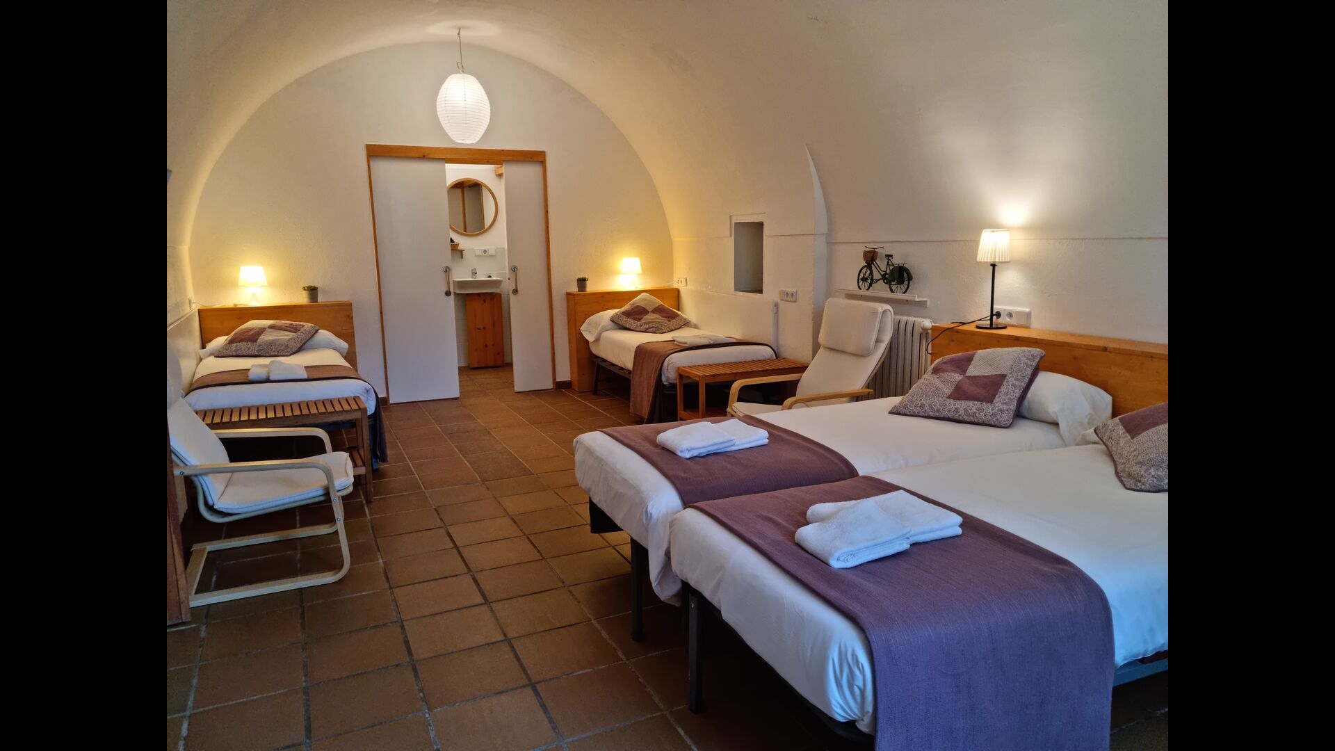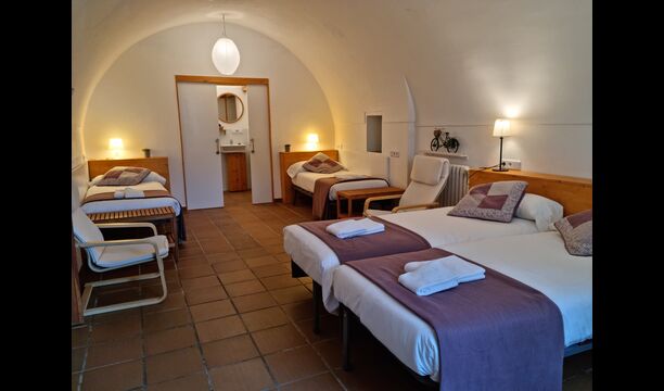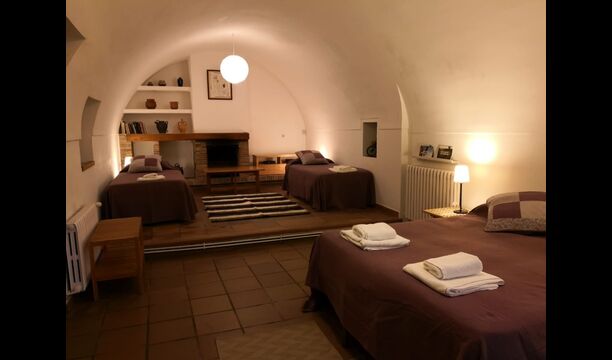 Når man går ind i Cal Rey de las Viñas, mødes man af en smuk hall med højt til det buede loft. Denne stue kan omdannes til et hyggeligt familieværelse, hvis I ønsker det. Væggene er lavet af kalksten og rummer mange autentiske detaljer. På denne etage er der et smukt vælvet familieværelse med 1 dobbeltseng og 2 enkeltsenge og et soveværelse med dobbeltseng og badeværelse en suite. To trin oppe er der et dobbeltværelse med dobbeltseng samt et smukt delebadeværelse.