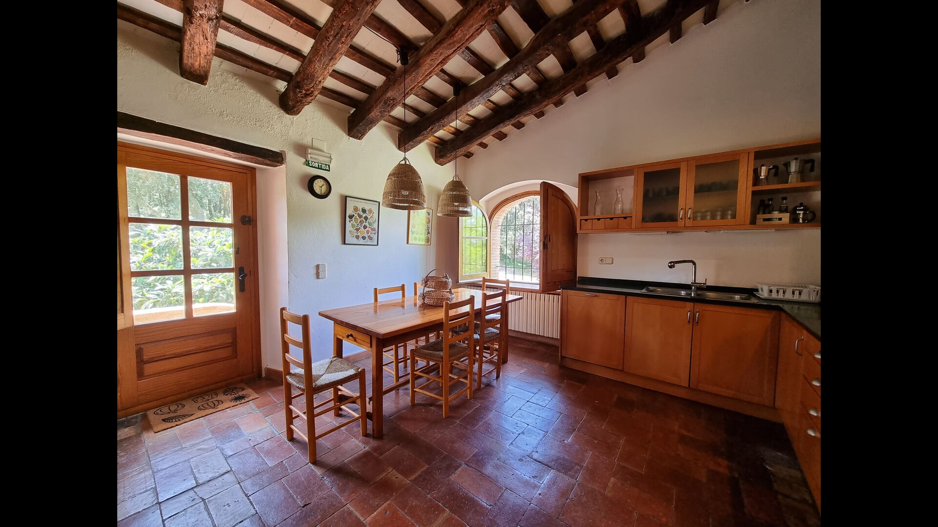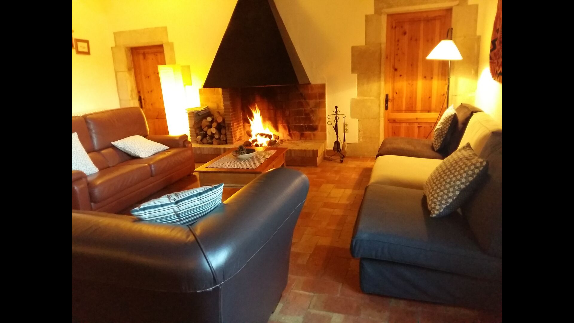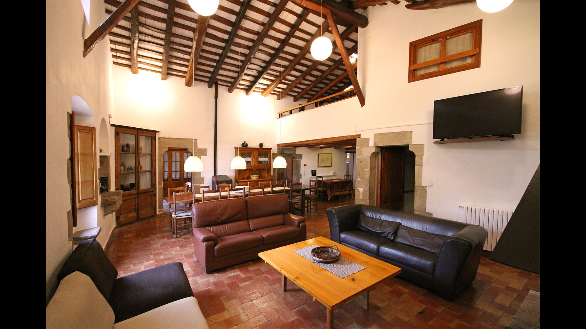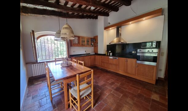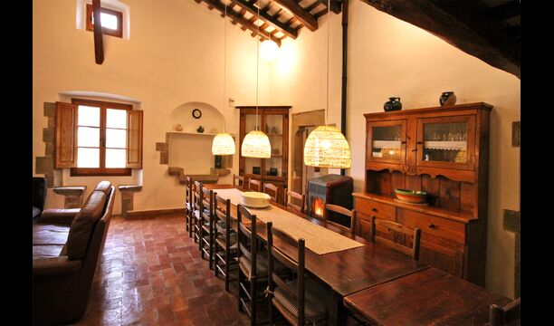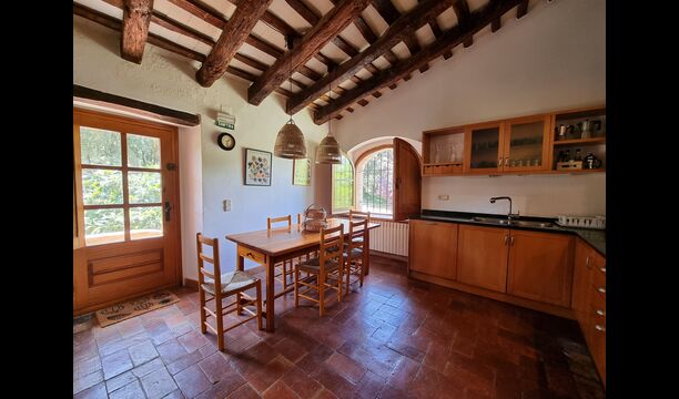 På første sal er der et meget stort fællesområde i mere klassisk catalansk stil, hvor man kan fornemme husets langvarige historie. I dette store område, er der et sofahjørne med TV, DVD og et langt spisebord. I forbindelse med dette er der et fuldt udstyret køkken (opvaskemaskine, komfur, kogeplader, amerikansk køleskab osv) med en lille spiseplads. I huset er der WiFi internetforbindelse.