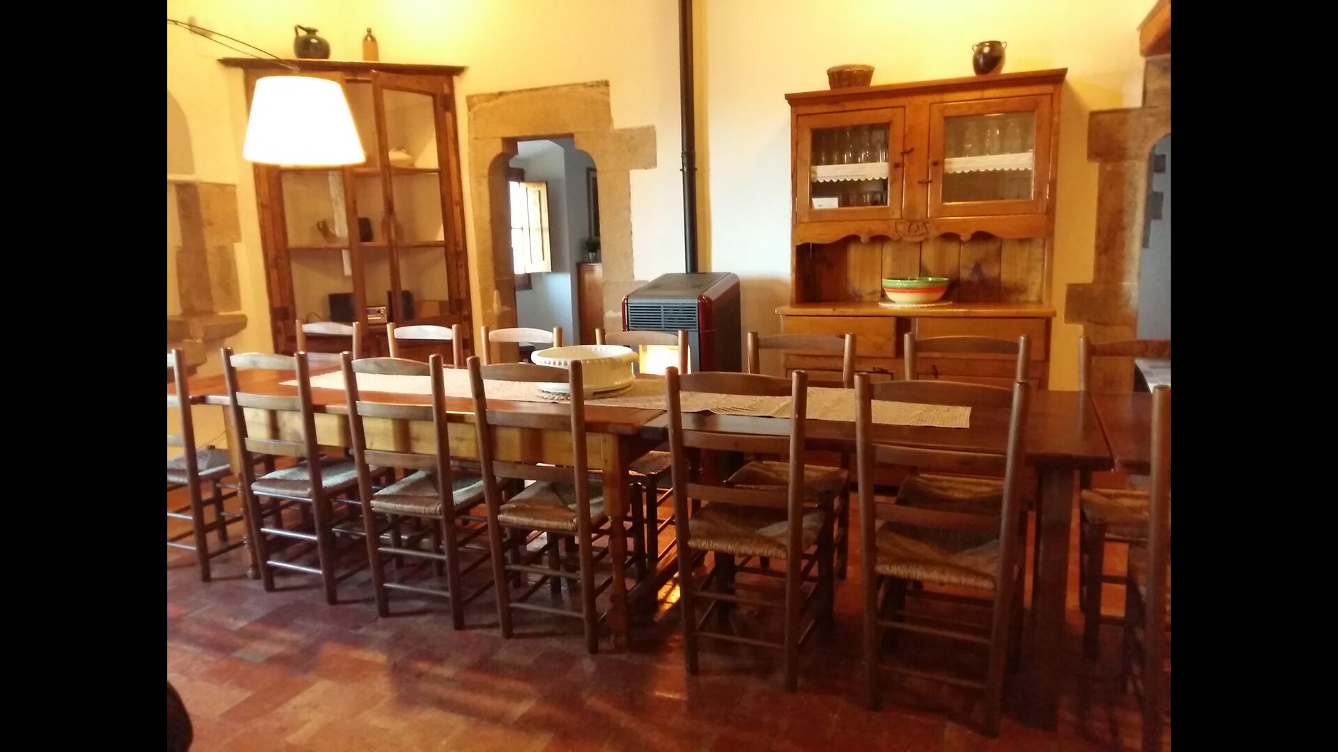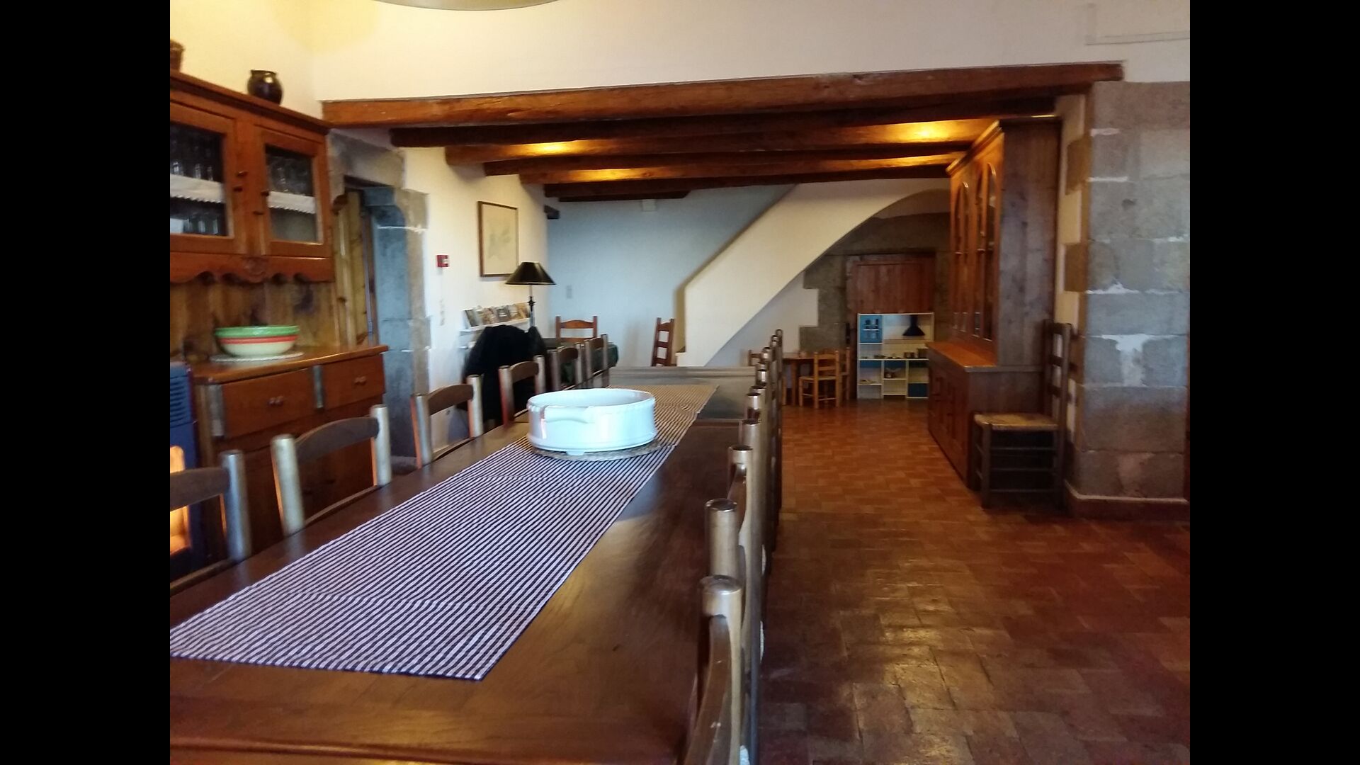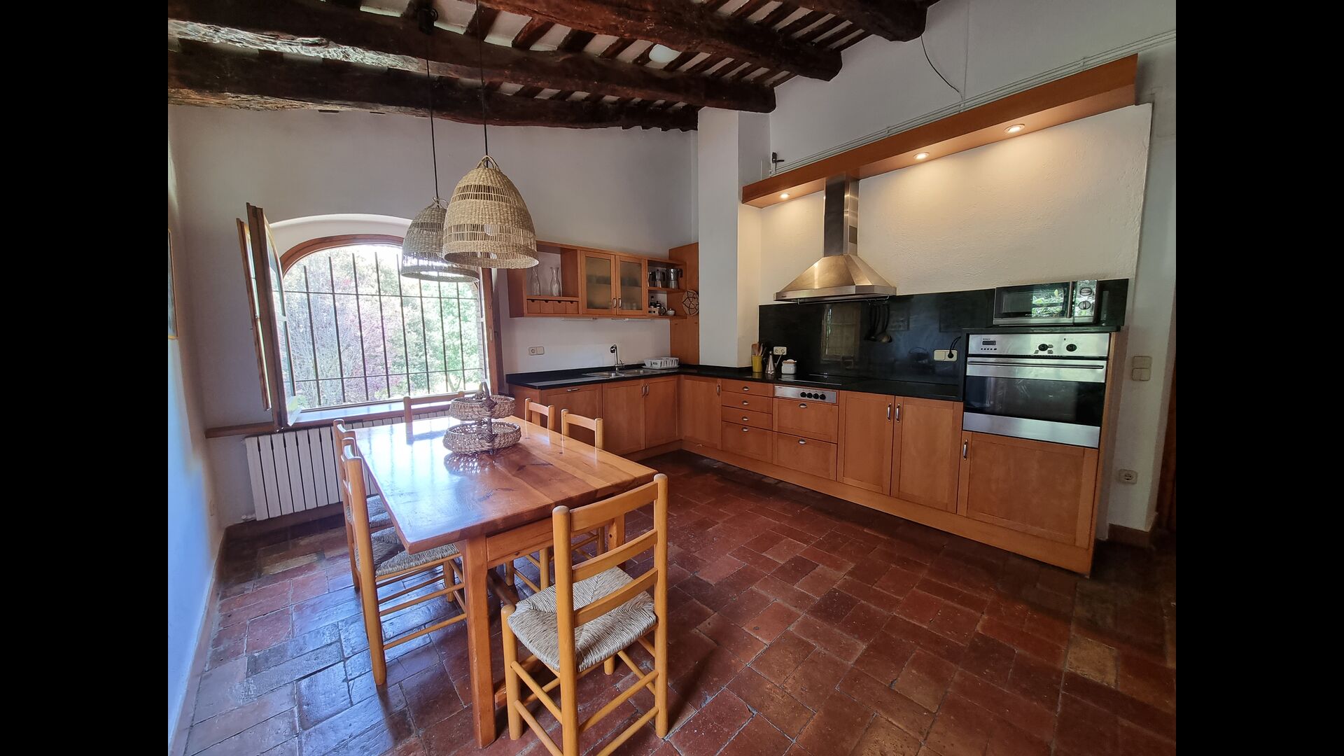 På første sal er der et meget stort fællesområde i mere klassisk catalansk stil, hvor man kan fornemme husets langvarige historie. I dette store område, er der et sofahjørne med TV, DVD og et langt spisebord. I forbindelse med dette er der et fuldt udstyret køkken (opvaskemaskine, komfur, kogeplader, amerikansk køleskab osv) med en lille spiseplads. I huset er der WiFi internetforbindelse.