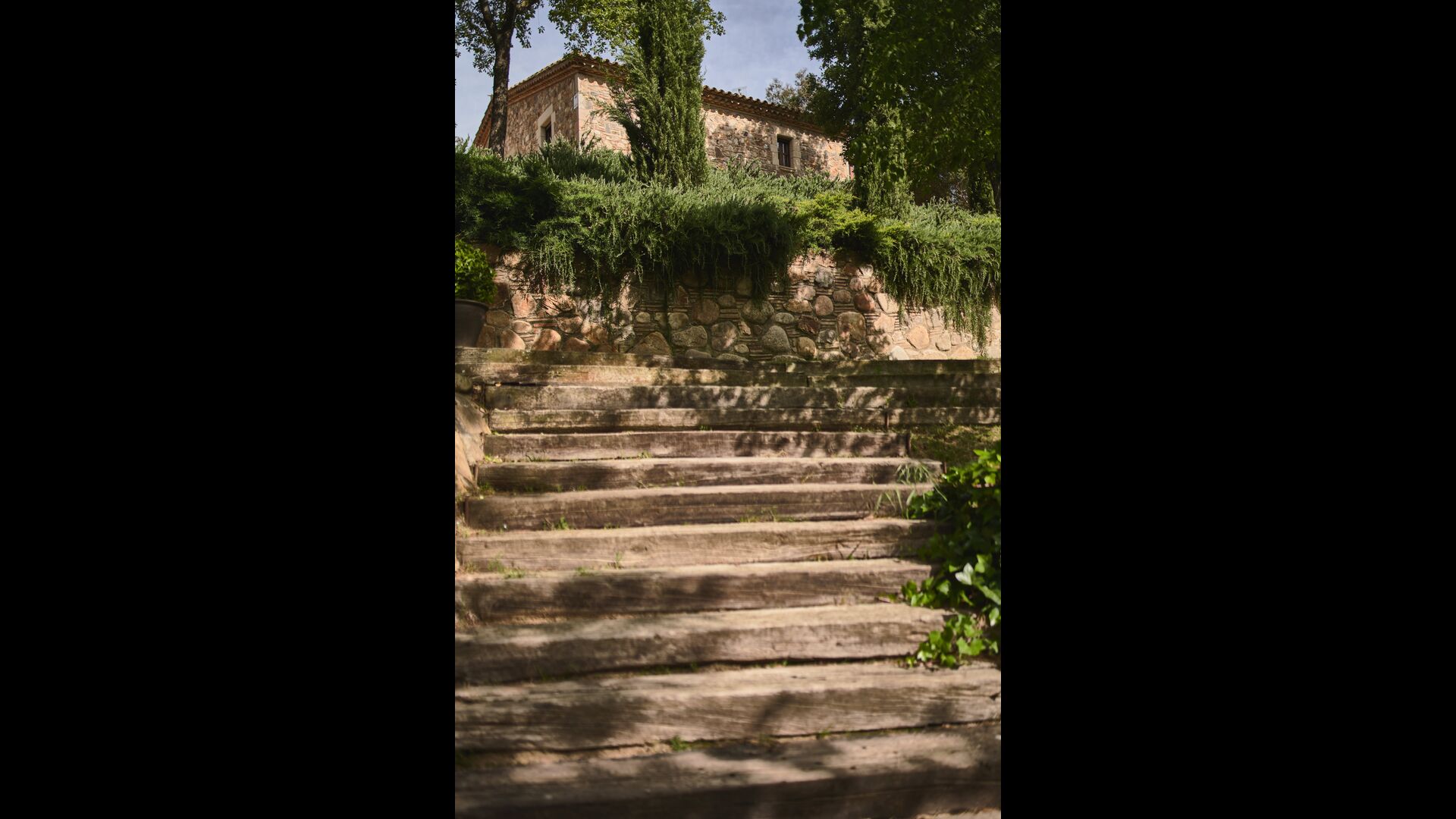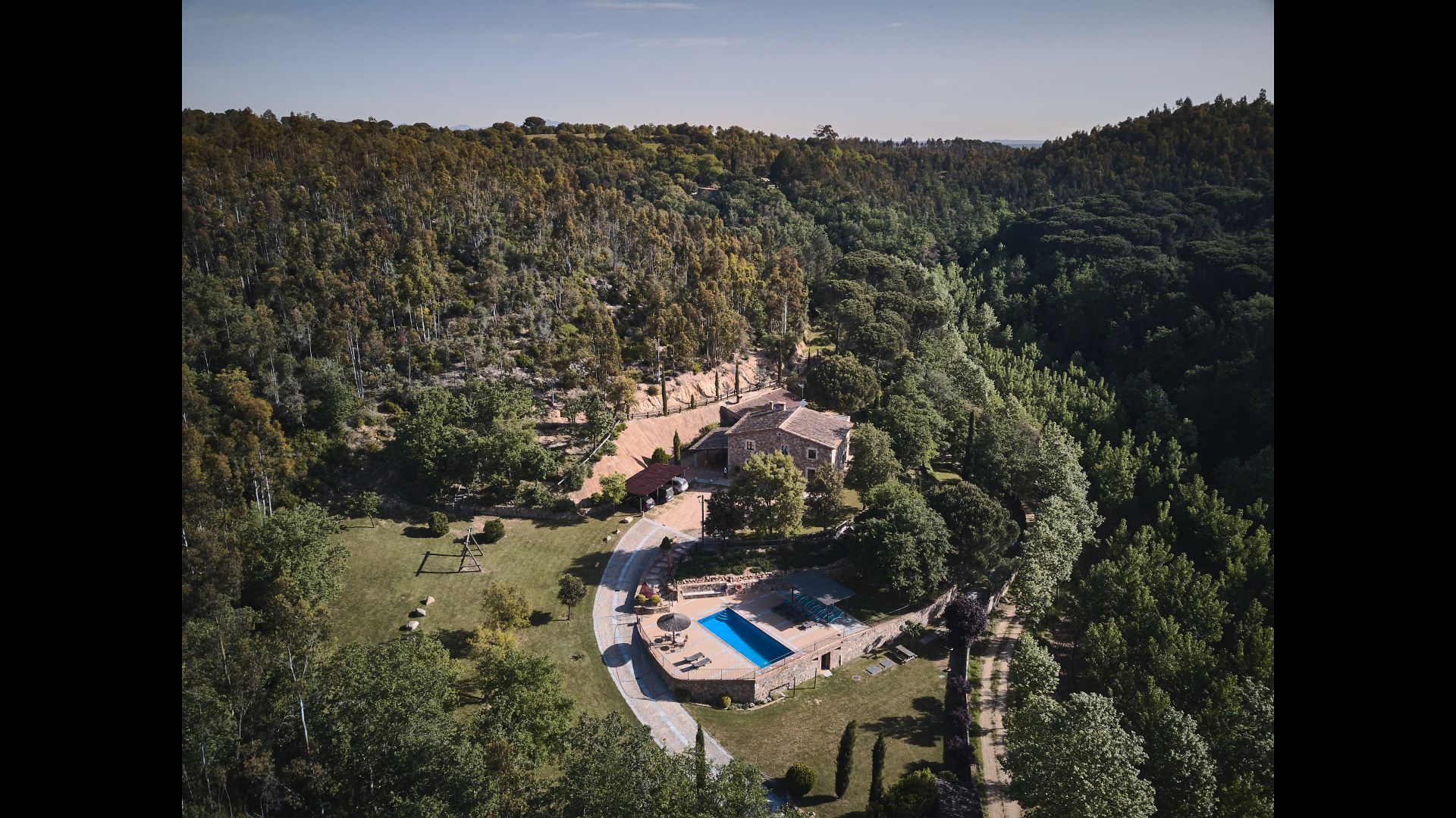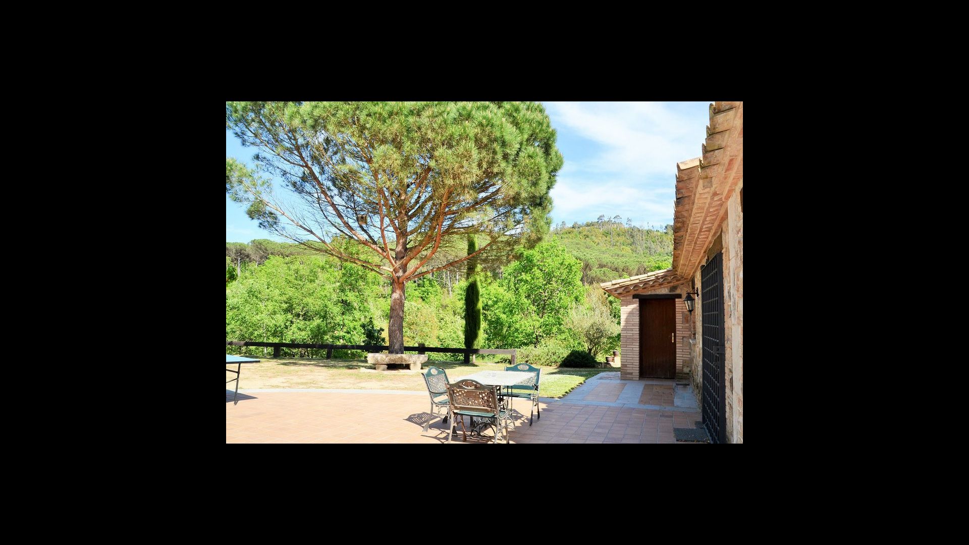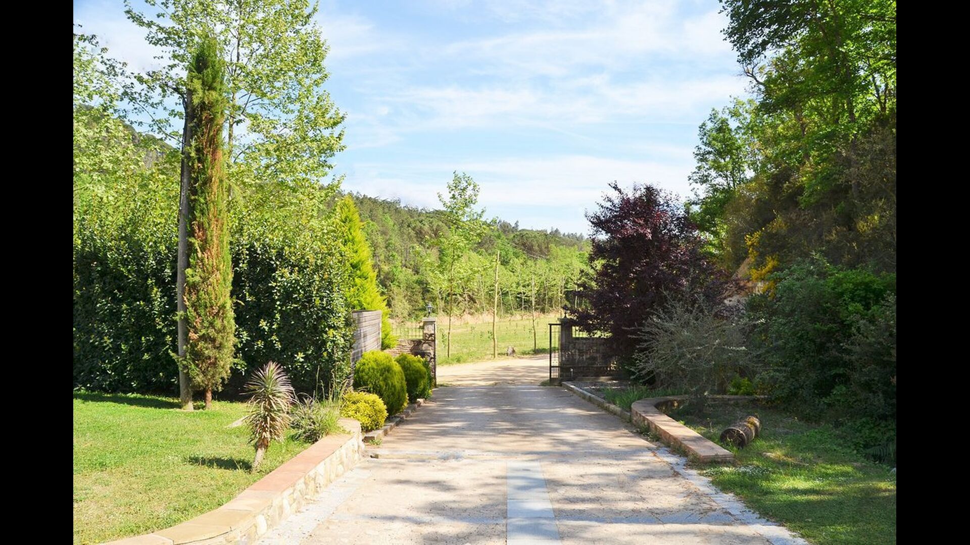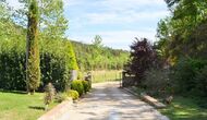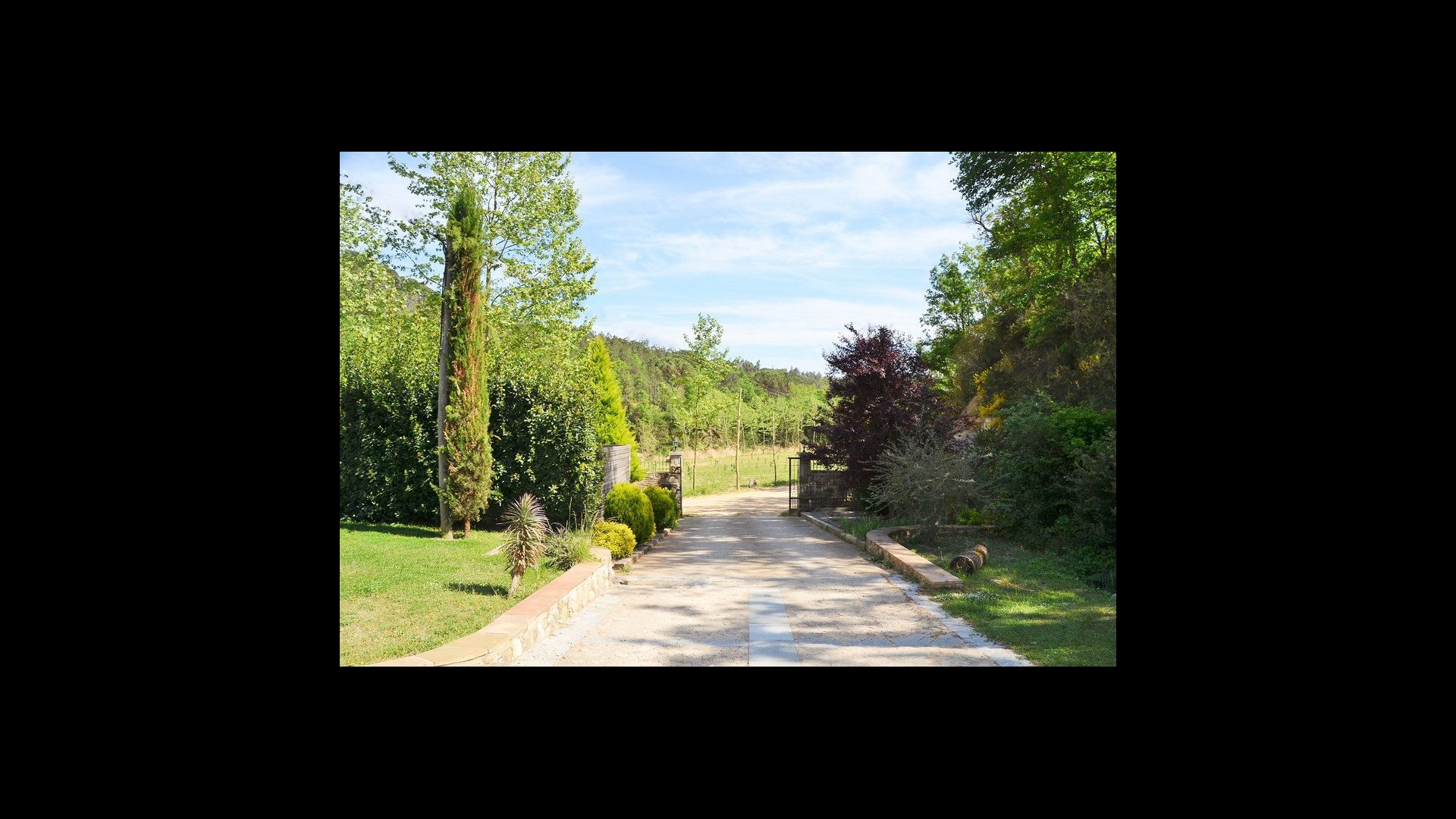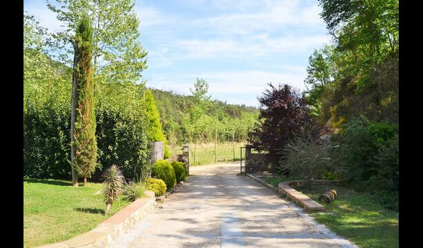 Efter en kort køretur af en grusvej gennem en lille skov, ankommer man til den smukke port, hvor den stenlagte indkørsel med cypresser på begge sider, fører én til huset, med en stor pool på den ene side og græsplænen på den anden.
