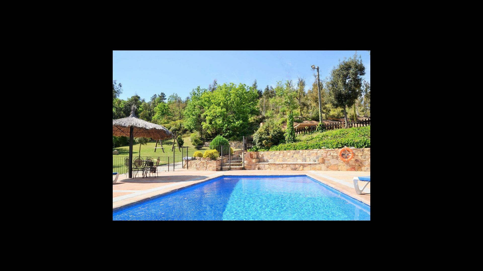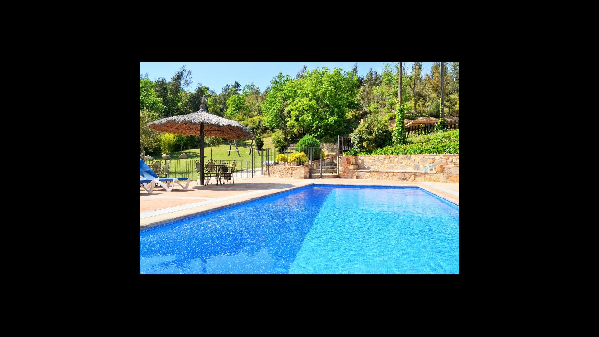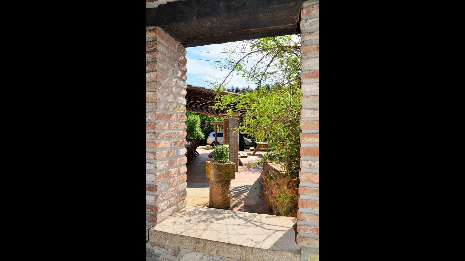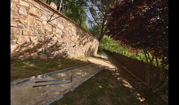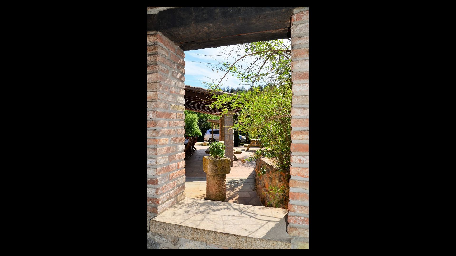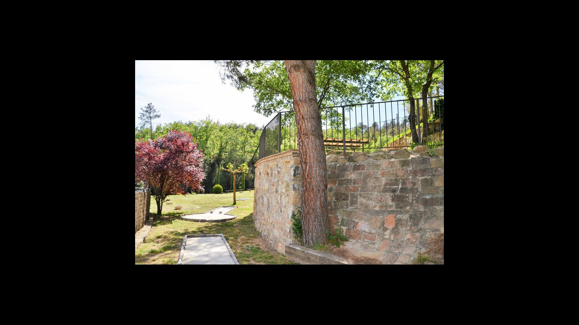Efter en kort køretur af en grusvej gennem en lille skov, ankommer man til den smukke port, hvor den stenlagte indkørsel med cypresser på begge sider, fører én til huset, med en stor pool på den ene side og græsplænen på den anden.
