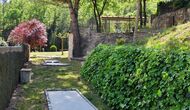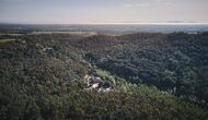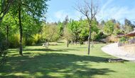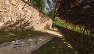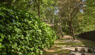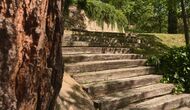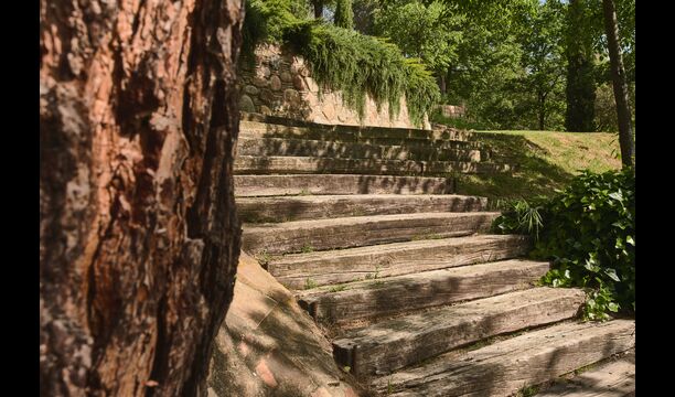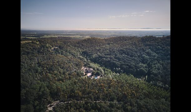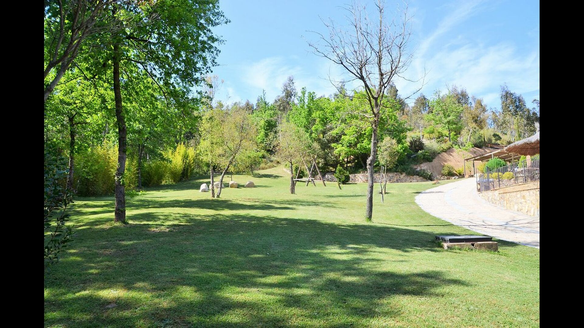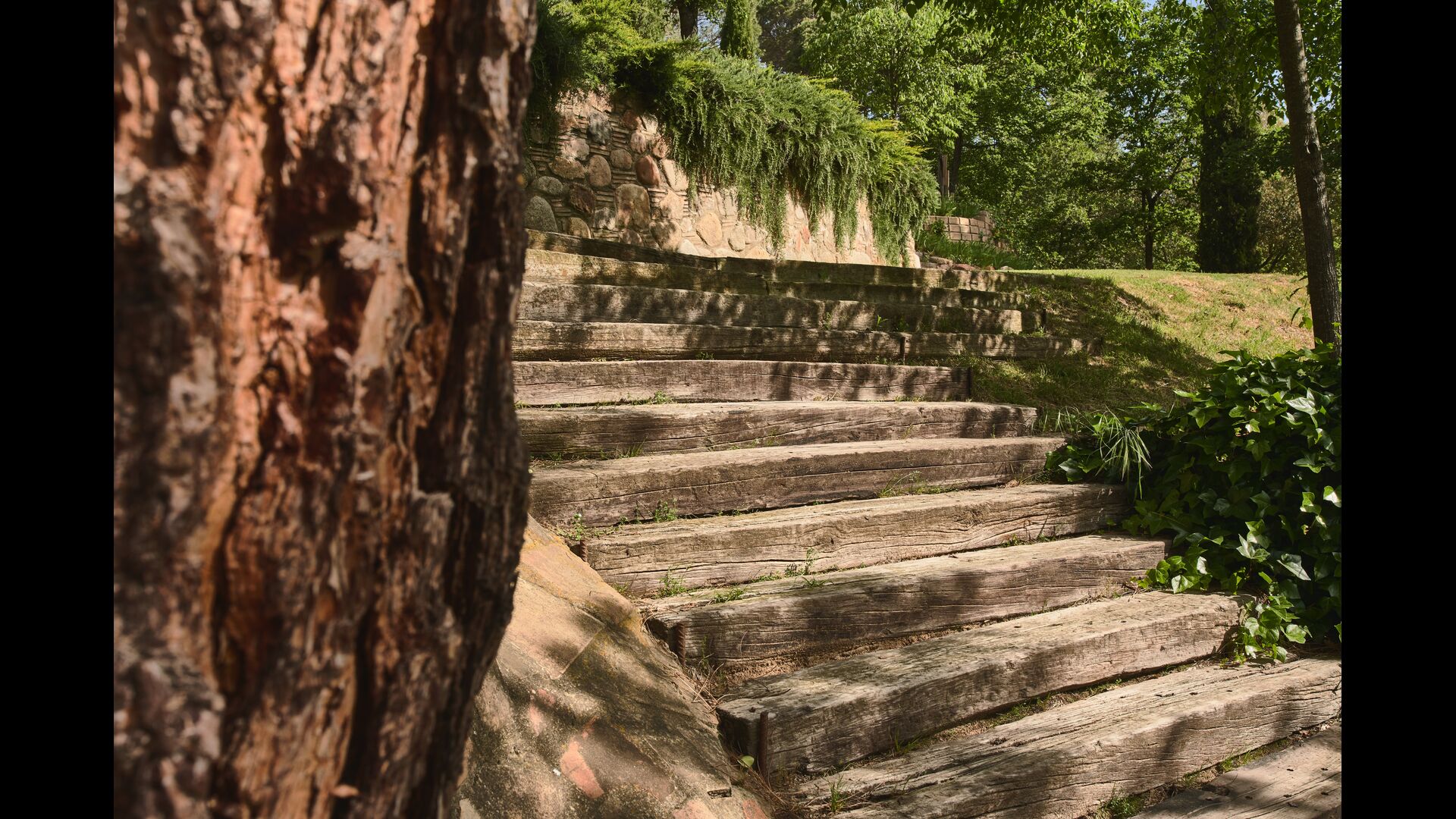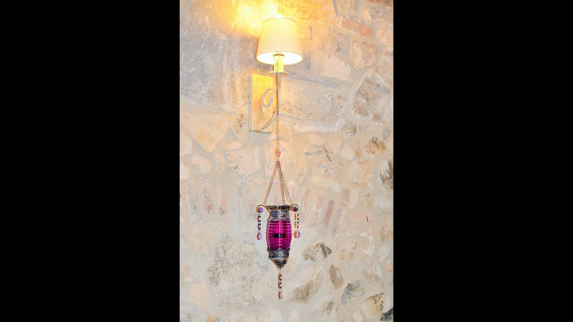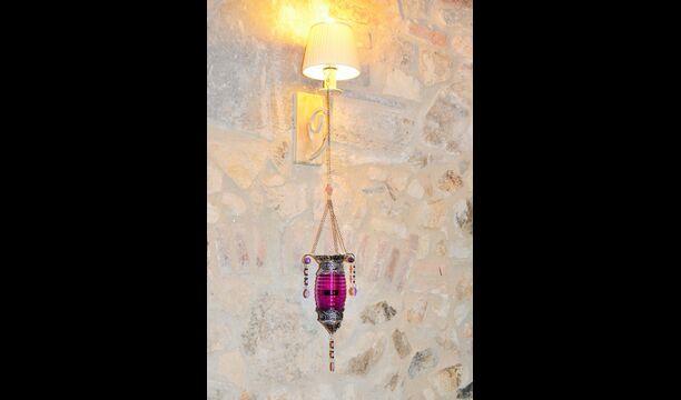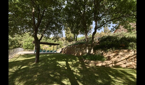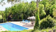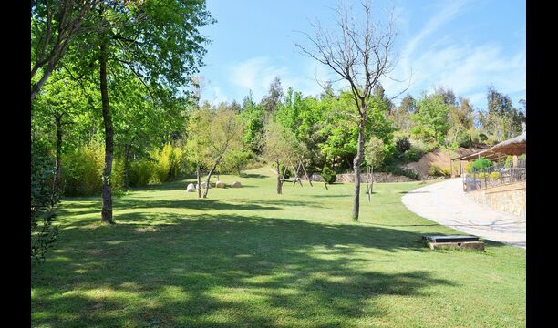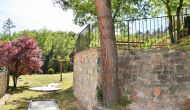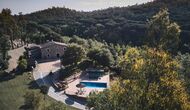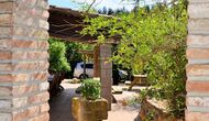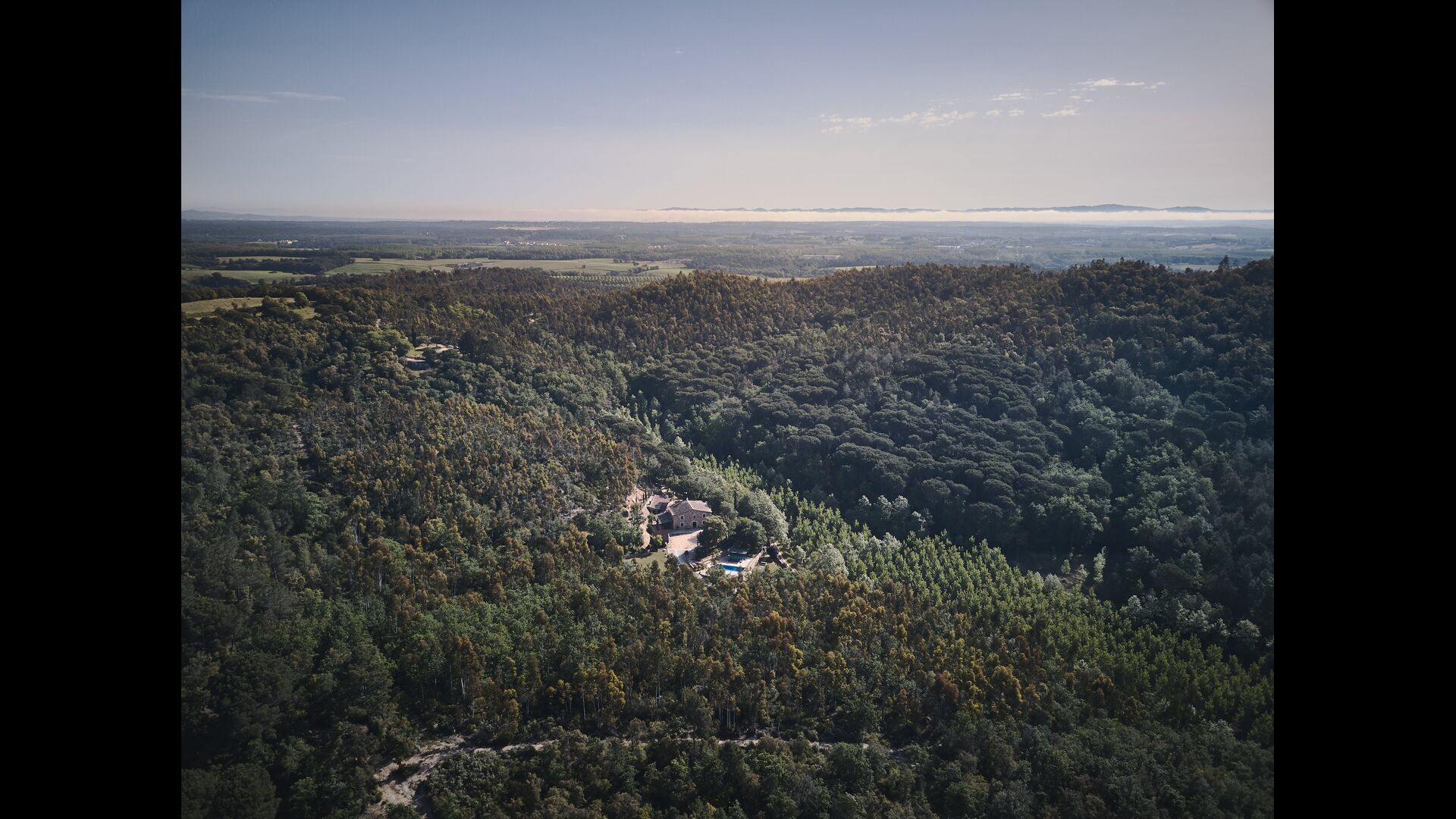 Efter en kort køretur af en grusvej gennem en lille skov, ankommer man til den smukke port, hvor den stenlagte indkørsel med cypresser på begge sider, fører én til huset, med en stor pool på den ene side og græsplænen på den anden.