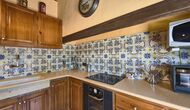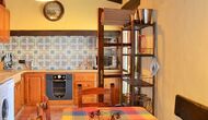 Køkken er veludstyret, med både komfur, køleskab, fryser, mikrobølgeovn og opvaskemaskine. Her fra er der adgang til et indendørs spiseområde og videre adgang til en stue med tv, endnu en spisestue og et toilet.