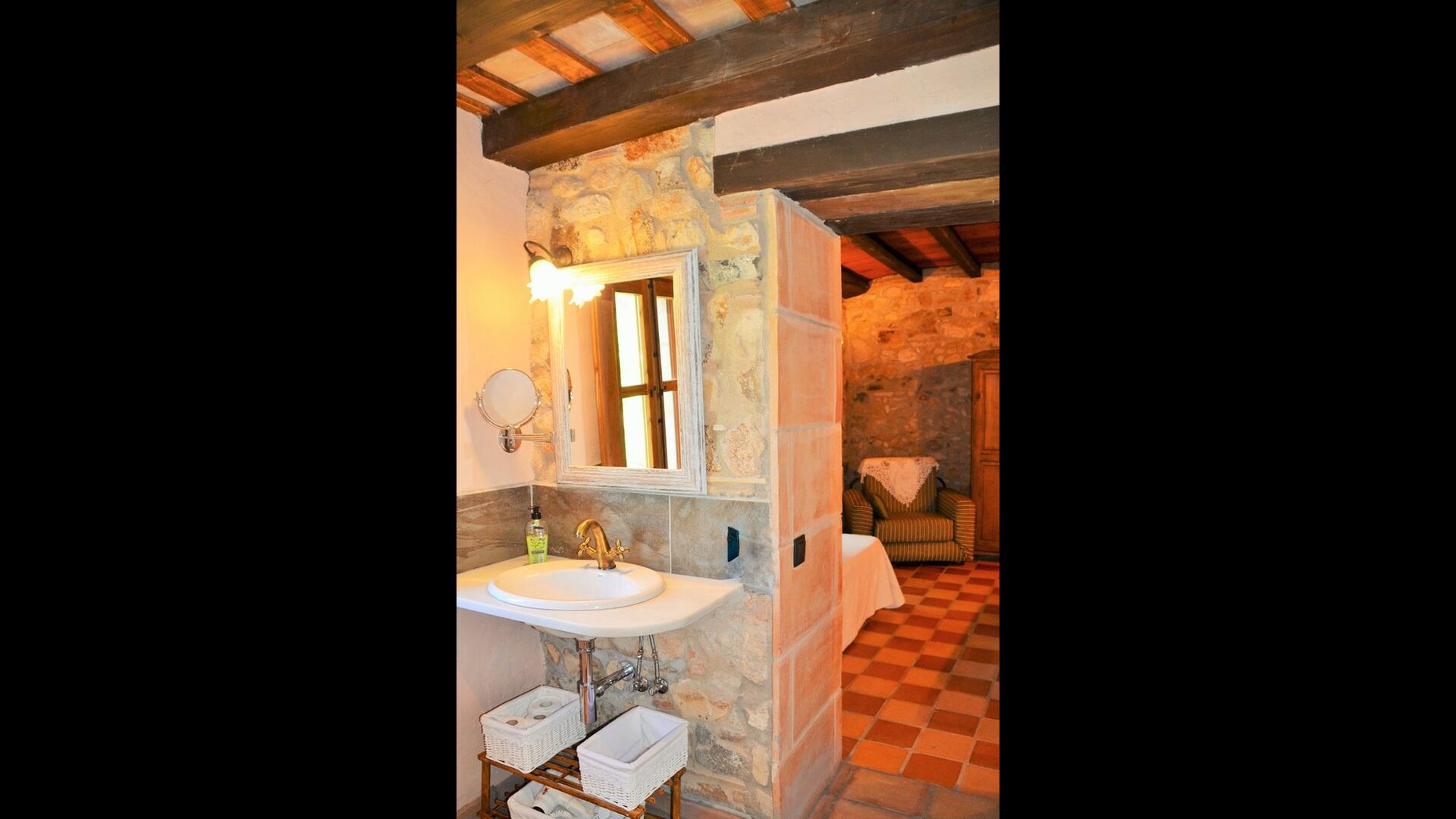 På første etage, er en lille stue og 4 moderne soveværelse, som alle har eget badeværelse. Det første værelse har en dobbeltseng og et integreret badeværelse, adskilt af en halvvæg.