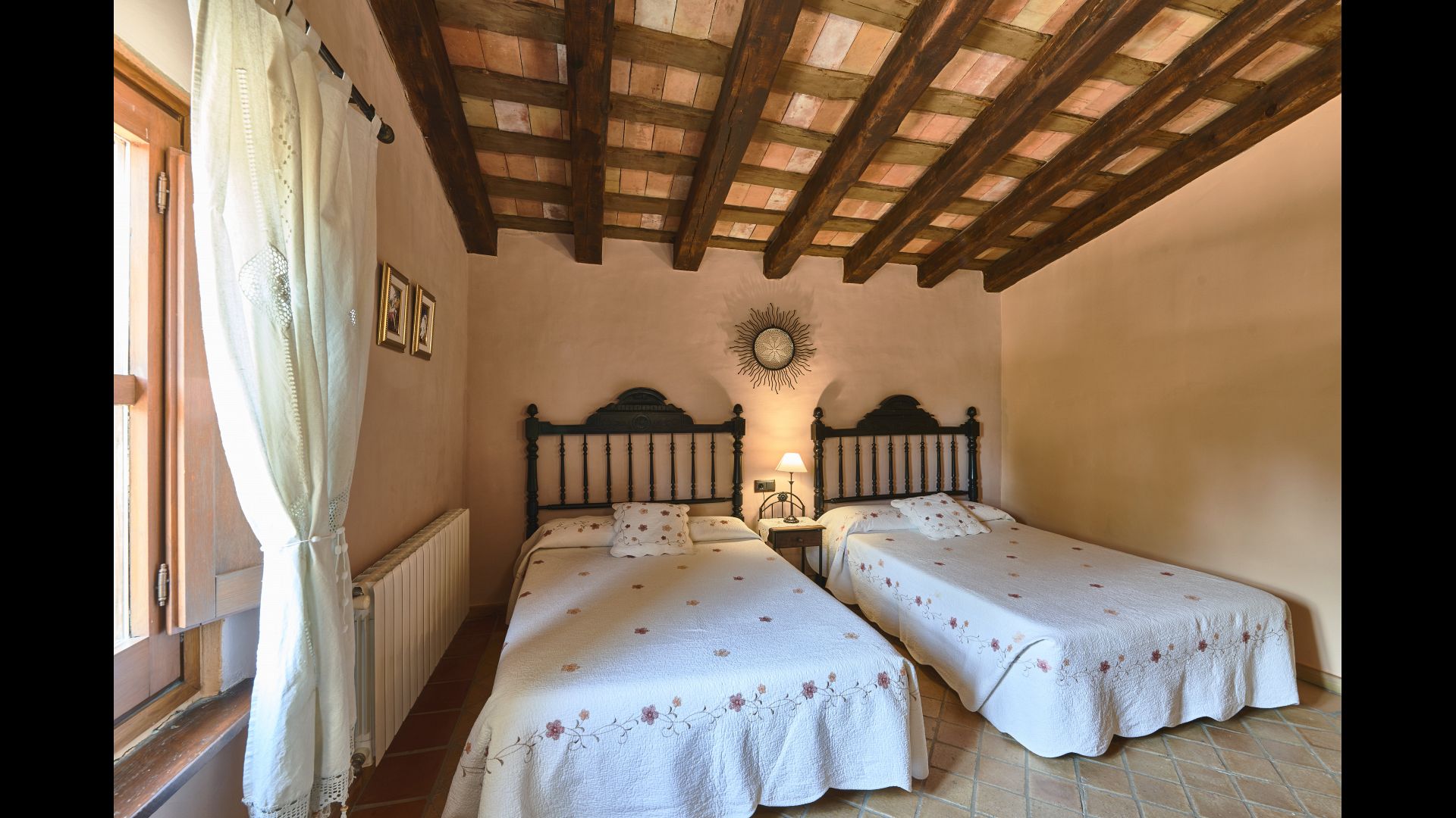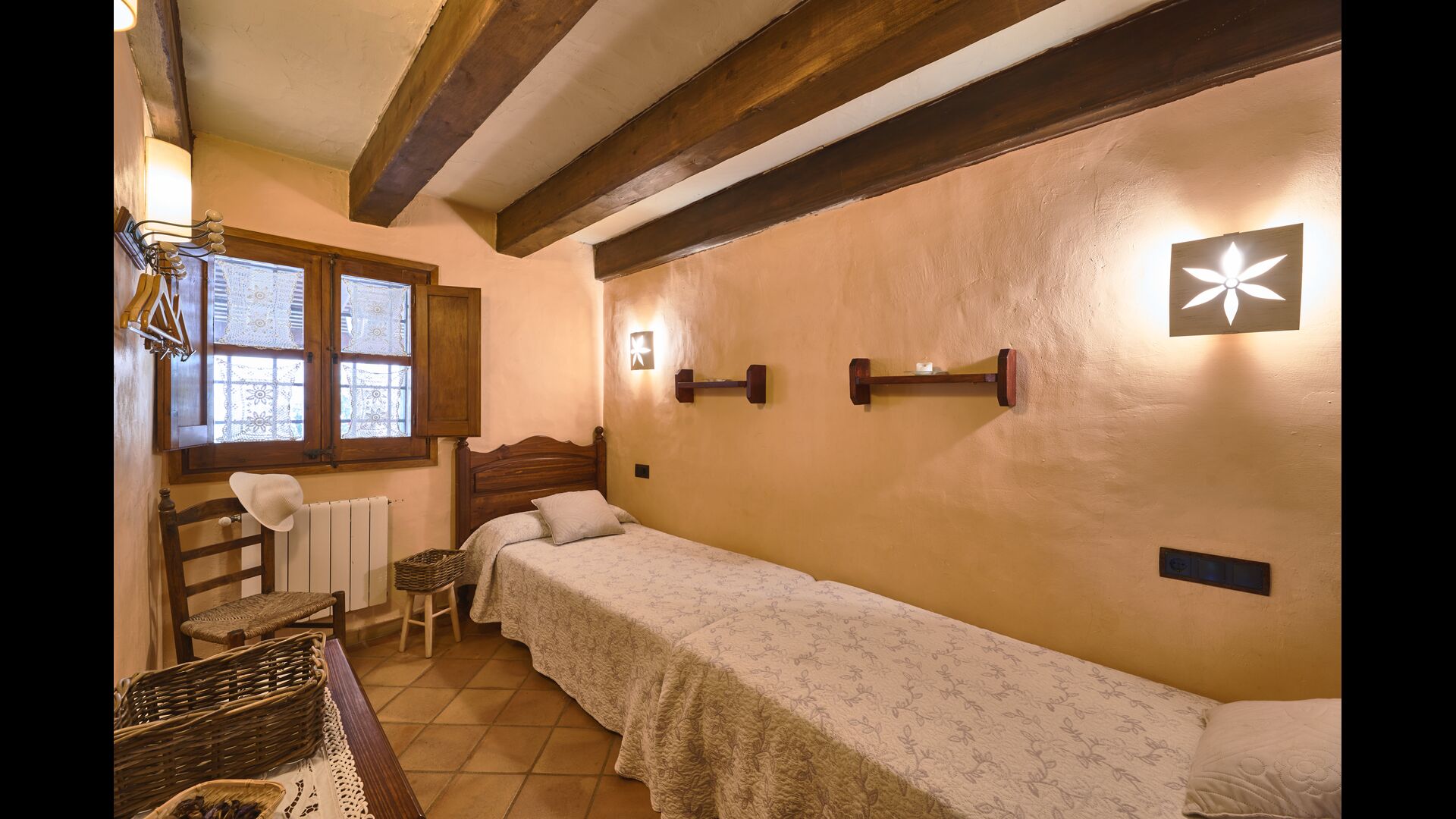 I stueetagen er der 2 soveværelser, hvor af det ene er meget stort og udstyret med to små dobbeltsenge, så det både kan bruges som et 2.personersværelse eller til eksempelvis en familie på 3 eller 4. De to soveværelser deler et badeværelse.