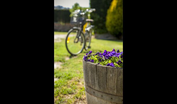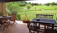 Ferielejligheden har direkte adgang til en dejlig førstesals terrasse delt med dens "tvillingelejlighed Gru". Her er der er udsigt over haven og den flotte natur, der omgiver huset. Et oplagt sted at nyde et hjemmelavet måltid i de lange og lune sommeraftener.