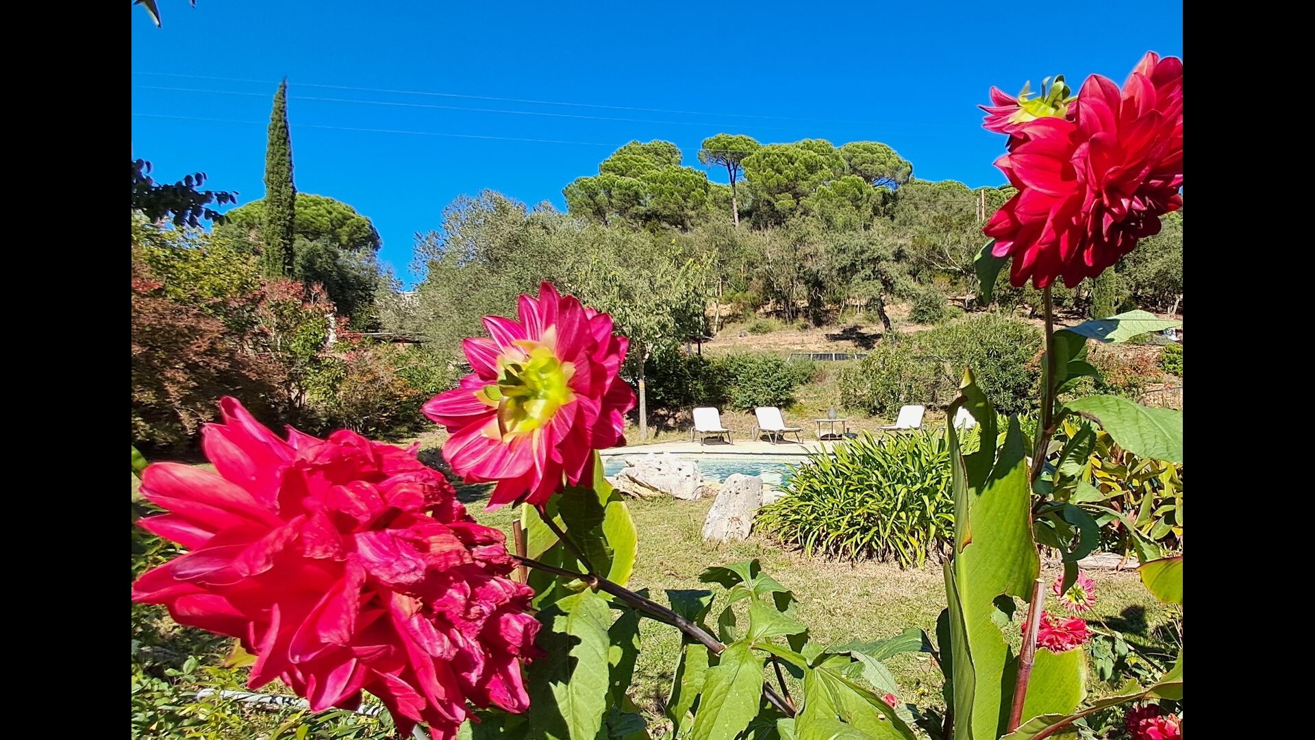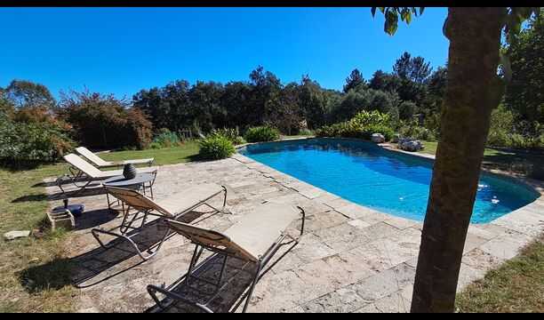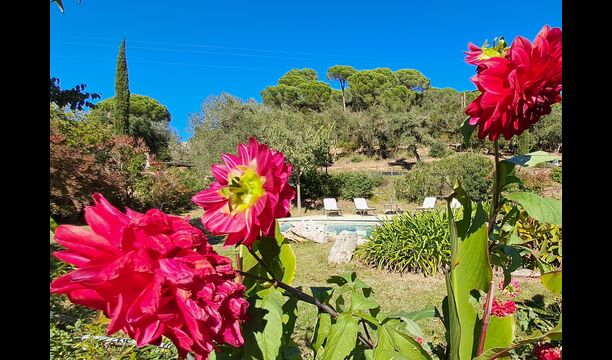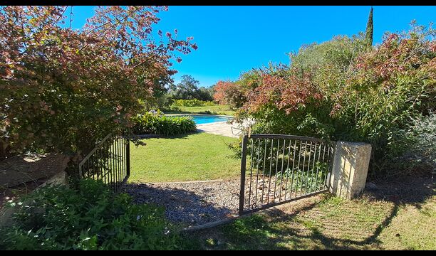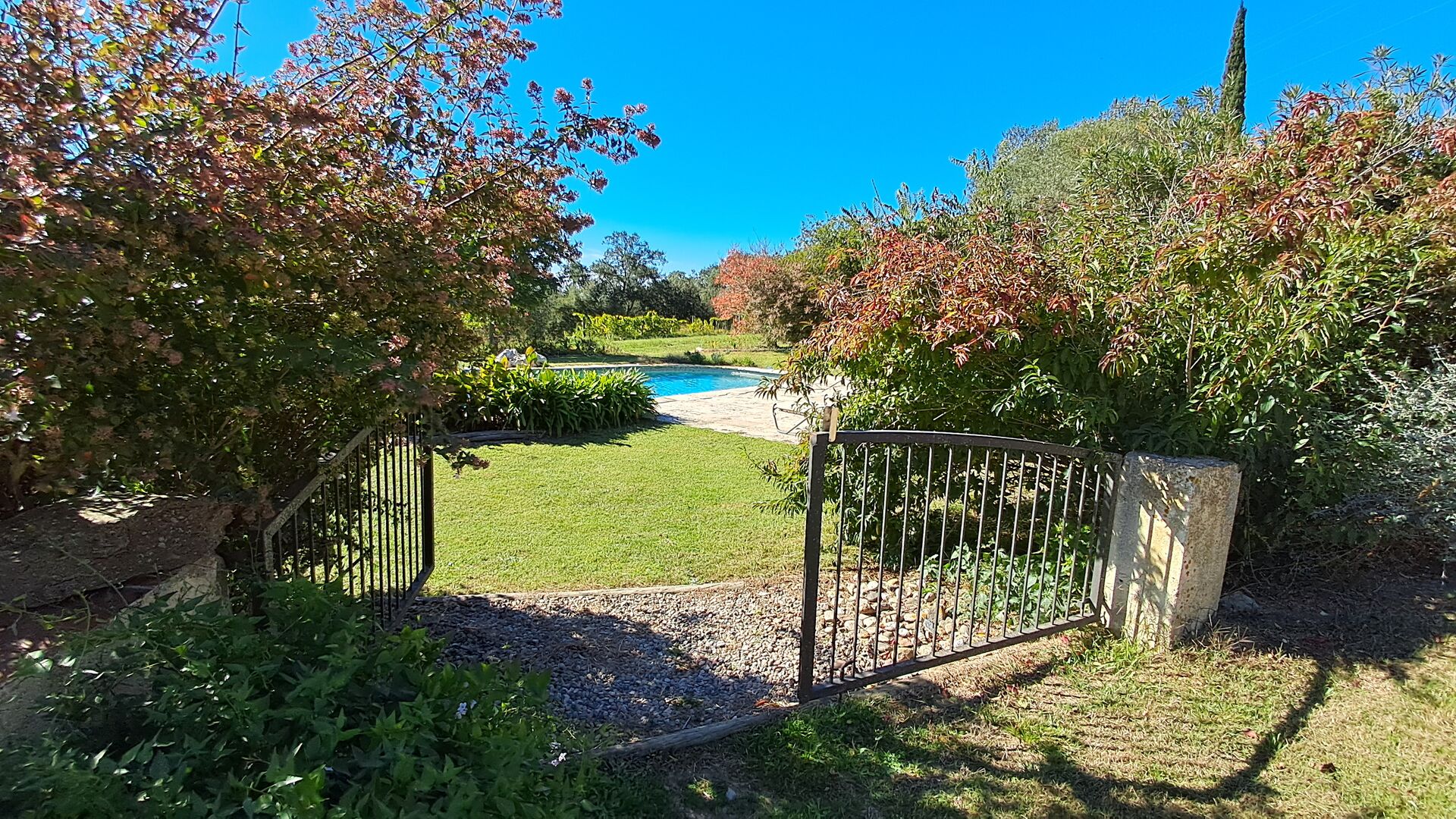 I lidt afstand fra huset, der sikrer privatliv for hver lejlighed, ligger det indbydende poolområde, iindhegnet af sikkerhedshensyn hvis man rejser med mindre børn. Her kan du svømme, solbade eller bare slappe af. Haven er fuld af middelhavscharme med farverige planter, blomster og frugttræer - inklusive et citrontræ, der bidrager til den friske, naturlige atmosfære.