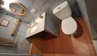 Lejligheden på øverste etage er hyggelig og velindrettet med to soveværelser. Da huset ligger på en skråning, giver en lille bro adgang i niveau til terrassen, og et par trin op finder du et dejligt solområde med liggestole – perfekt til at nyde udsigten ved solopgang eller solnedgang.