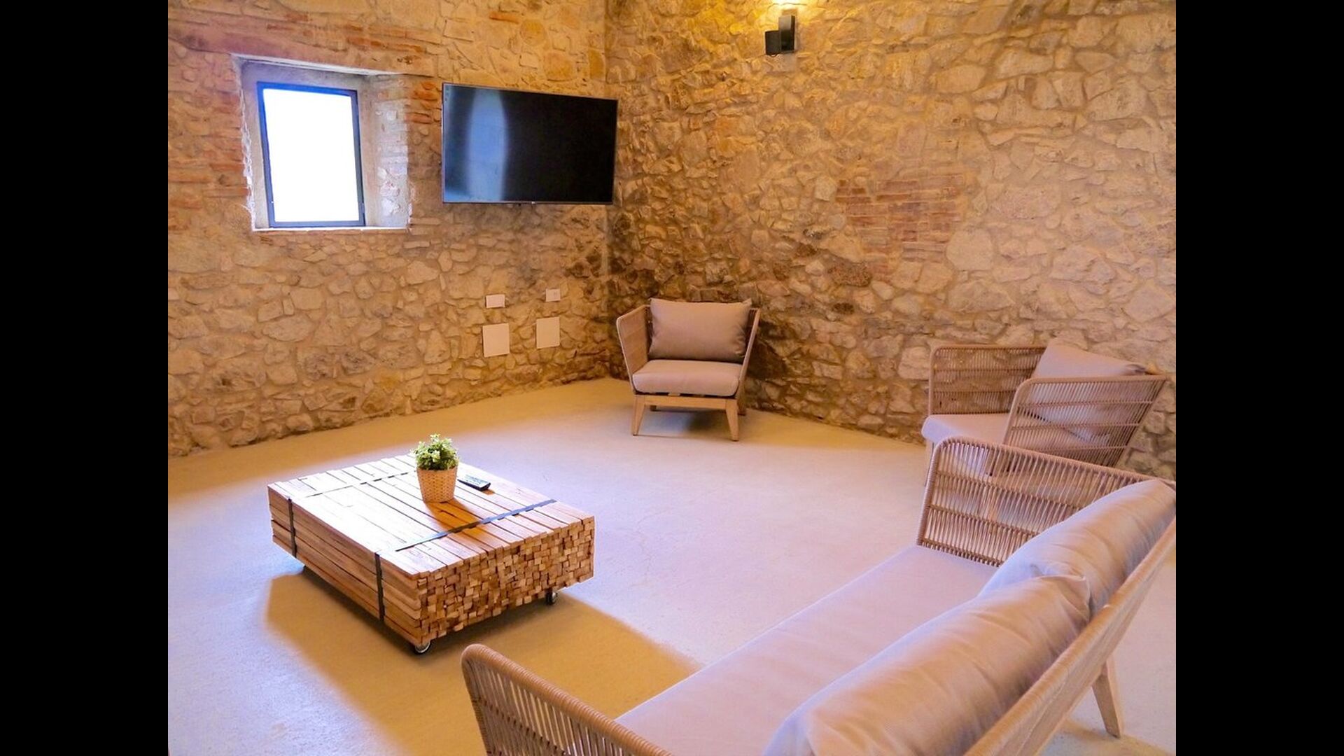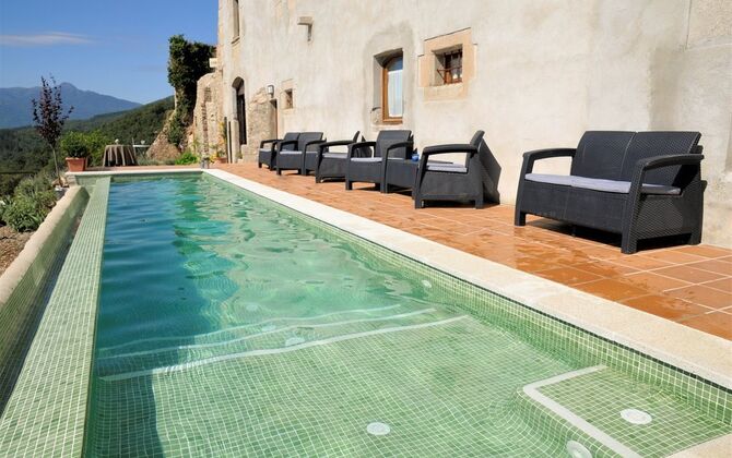 Det er svært at forestille sig et mere unikt feriehus; her bor man i et storslået slot på et bjerg - kun omgivet af andre bjerge, skove og fantastisk, uberørt natur. Fra det flotte feriehus har man 360-graders udsigt ud over alverdens dale og enestående landskaber; man kan således endda tage et kig mod den kystlige Costa Brava-strækning. Du finder ikke et hus, der egner sig bedre til et get-away fra byens larm og travlhed. Her skal du blot læne dig tilbage i liggestolen med en kold drink og nyde varmen og den friske bjergluft. Og dog, har husejeren tilskrevet huset sloganet In the middle of nowhere, connected to everywhere, hvilket er så sandt som sagt - fra dit helt privatliggende slot er der blot en halv time til Costa Brava-kysten og ca. 12 minutter til nærmeste landsby med supermarked, restaurant, etc.
