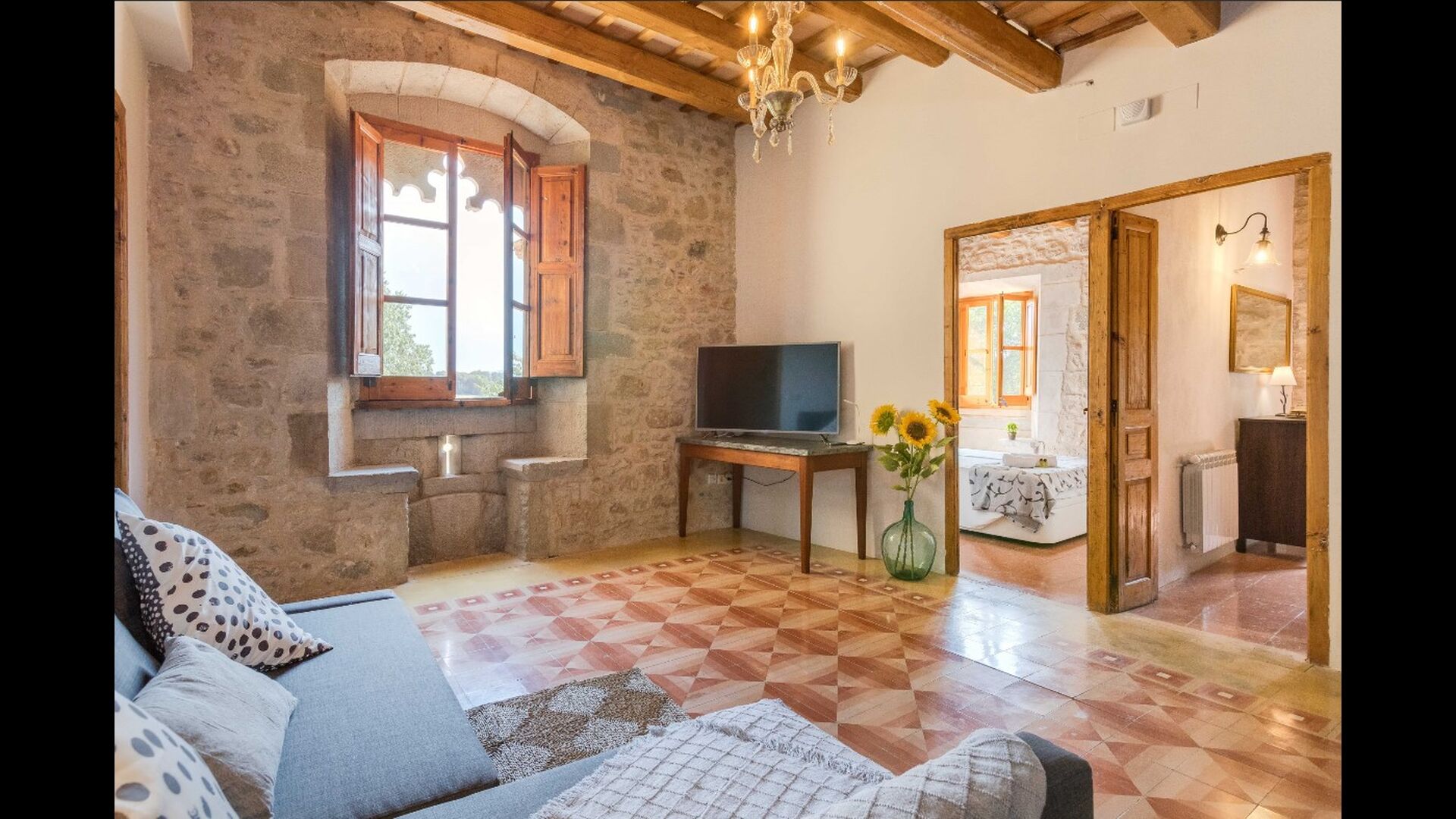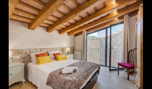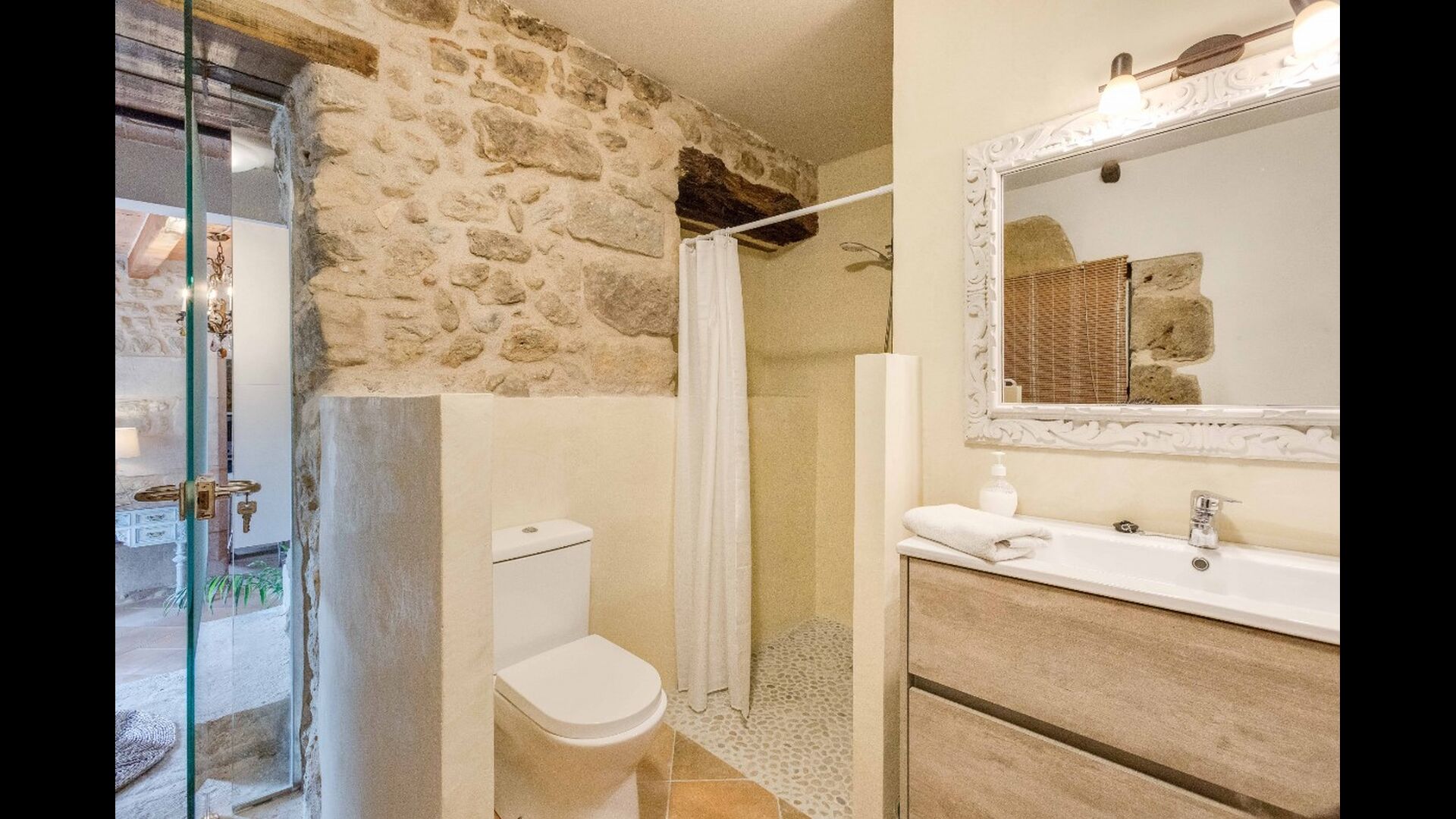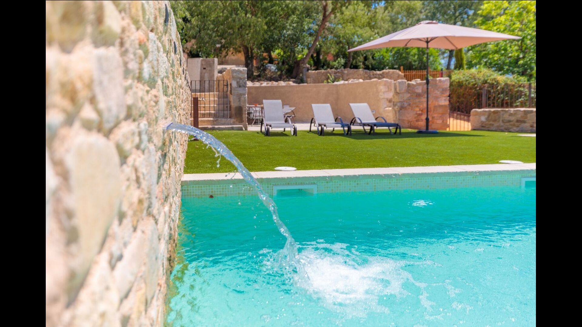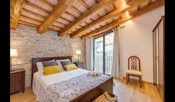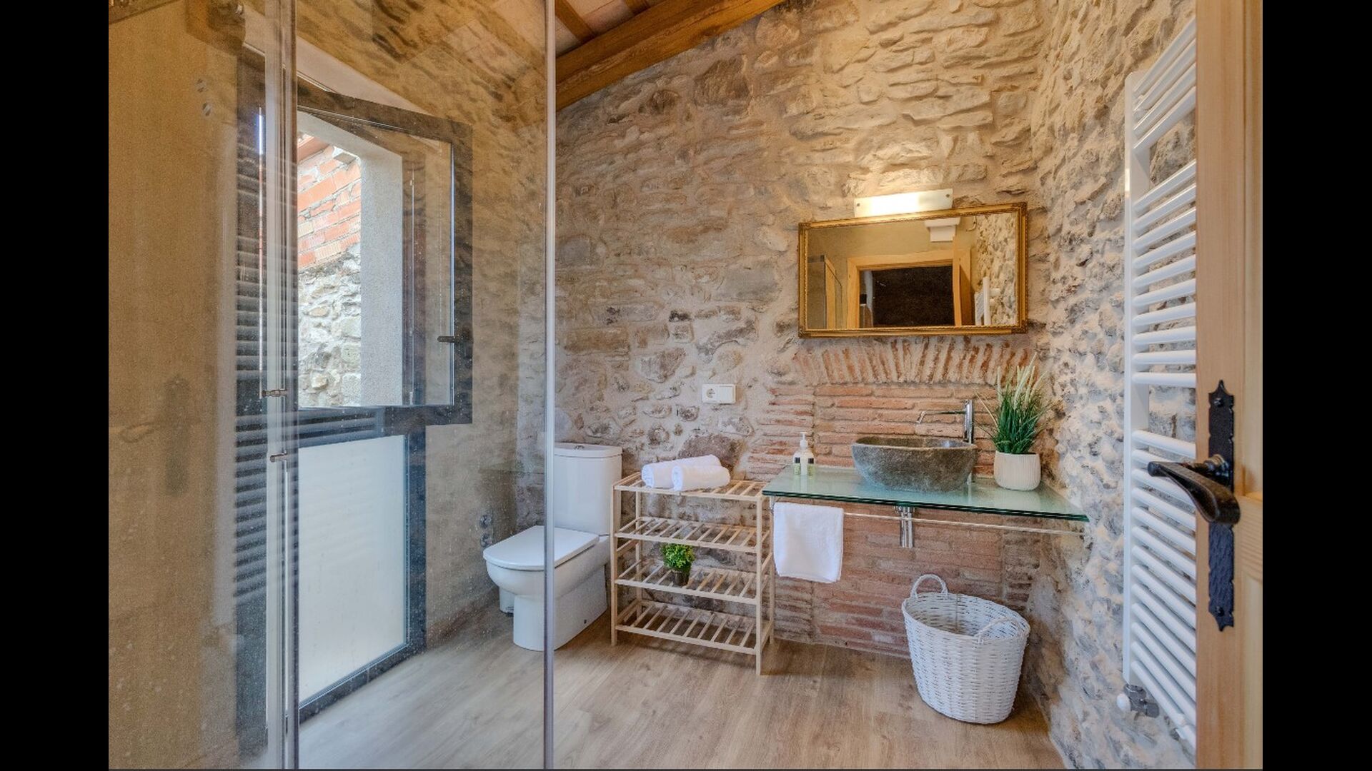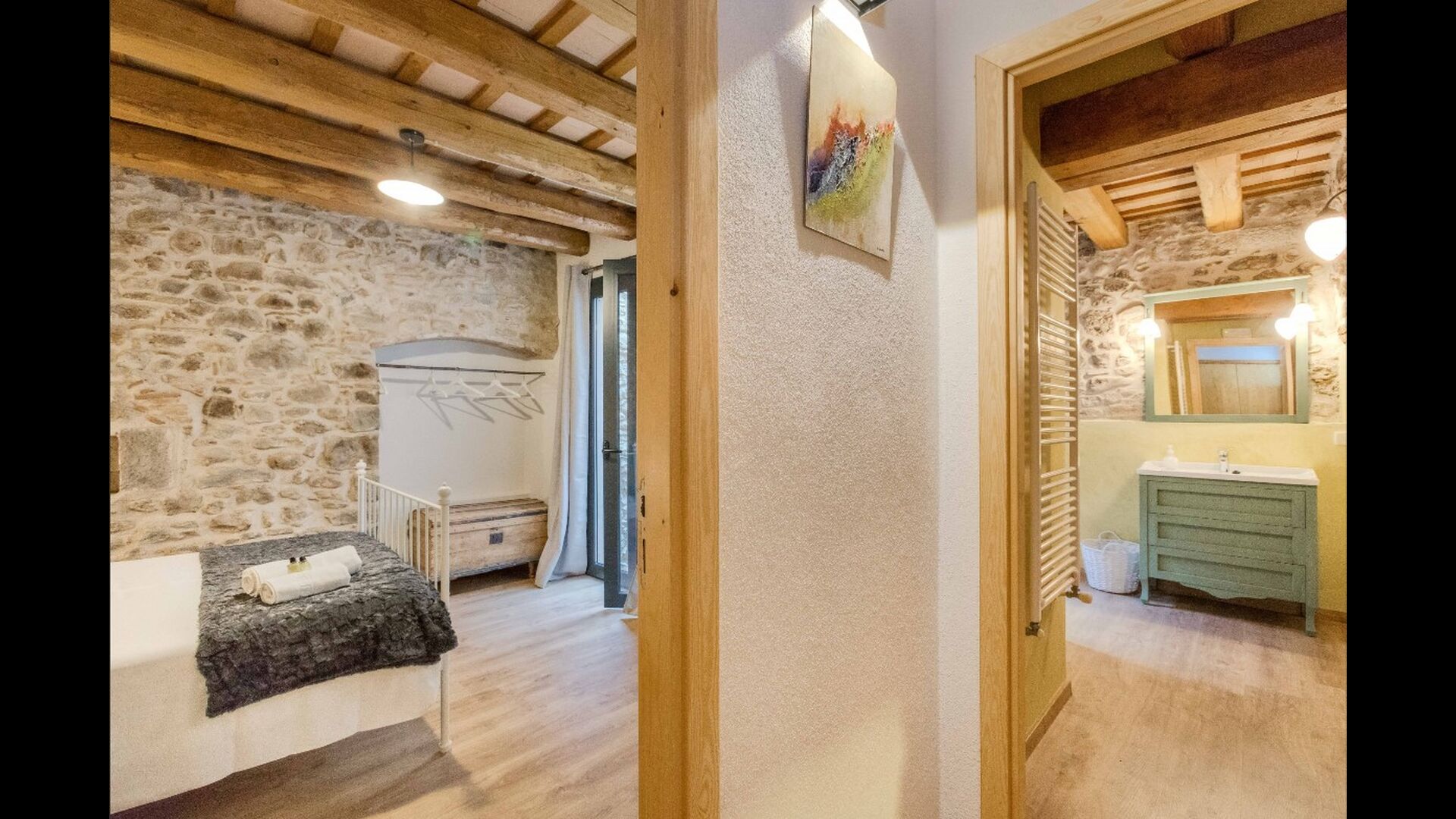 Her vil I møde et autentisk catalansk kalkstenshus med 6 rummelige soveværelser og 3 moderne badeværelser. Der er et dejligt fællesrum og et stort køkken, veludstyret og selvfølgelig med opvaskemaskine, køleskab, fryser , mikroovn og komfur.
