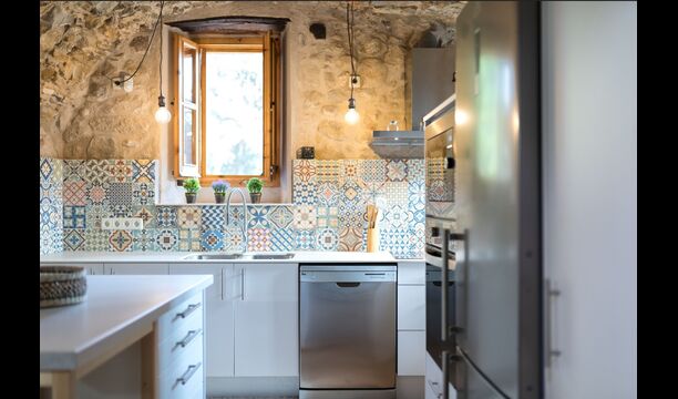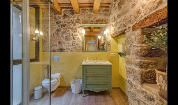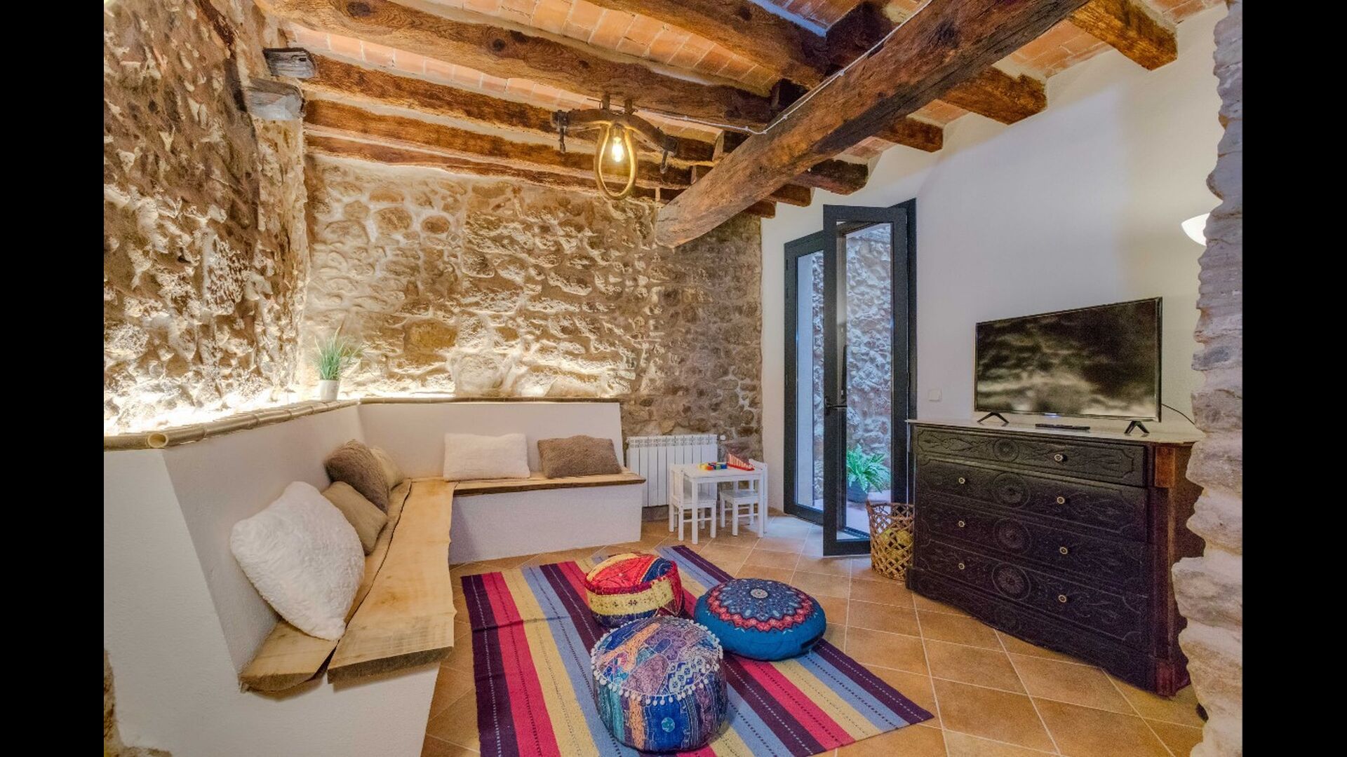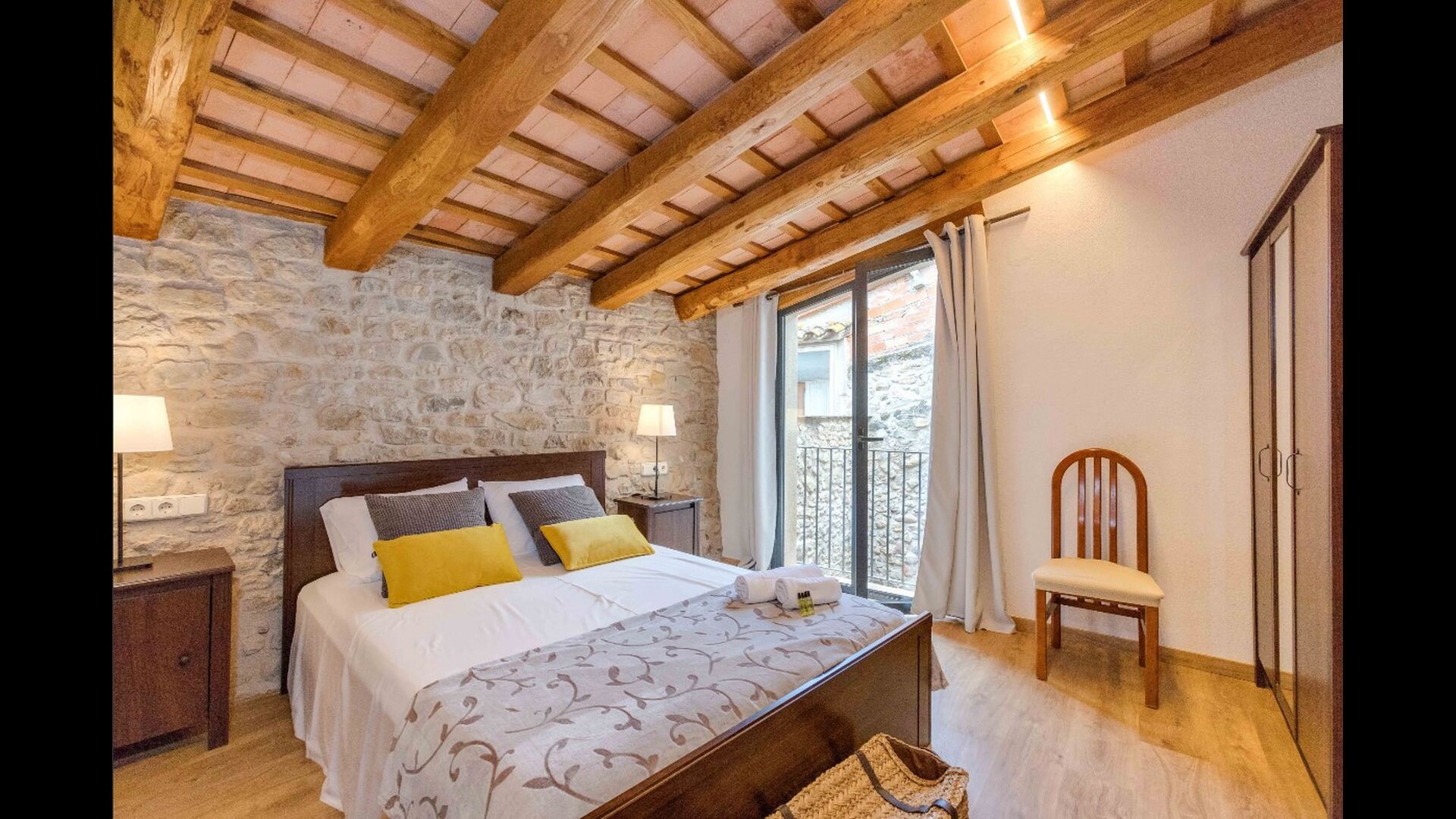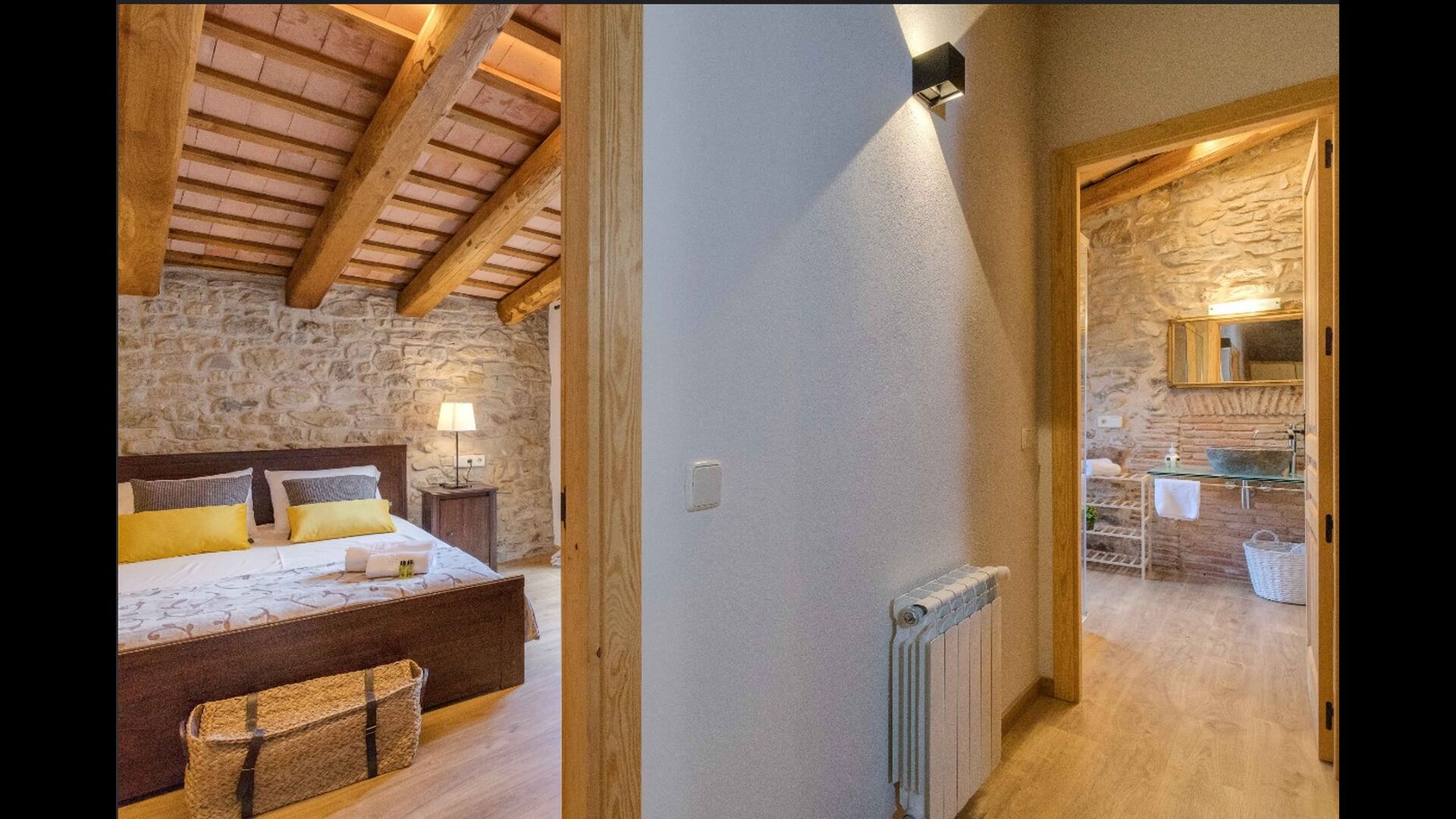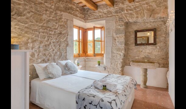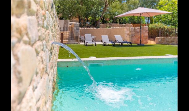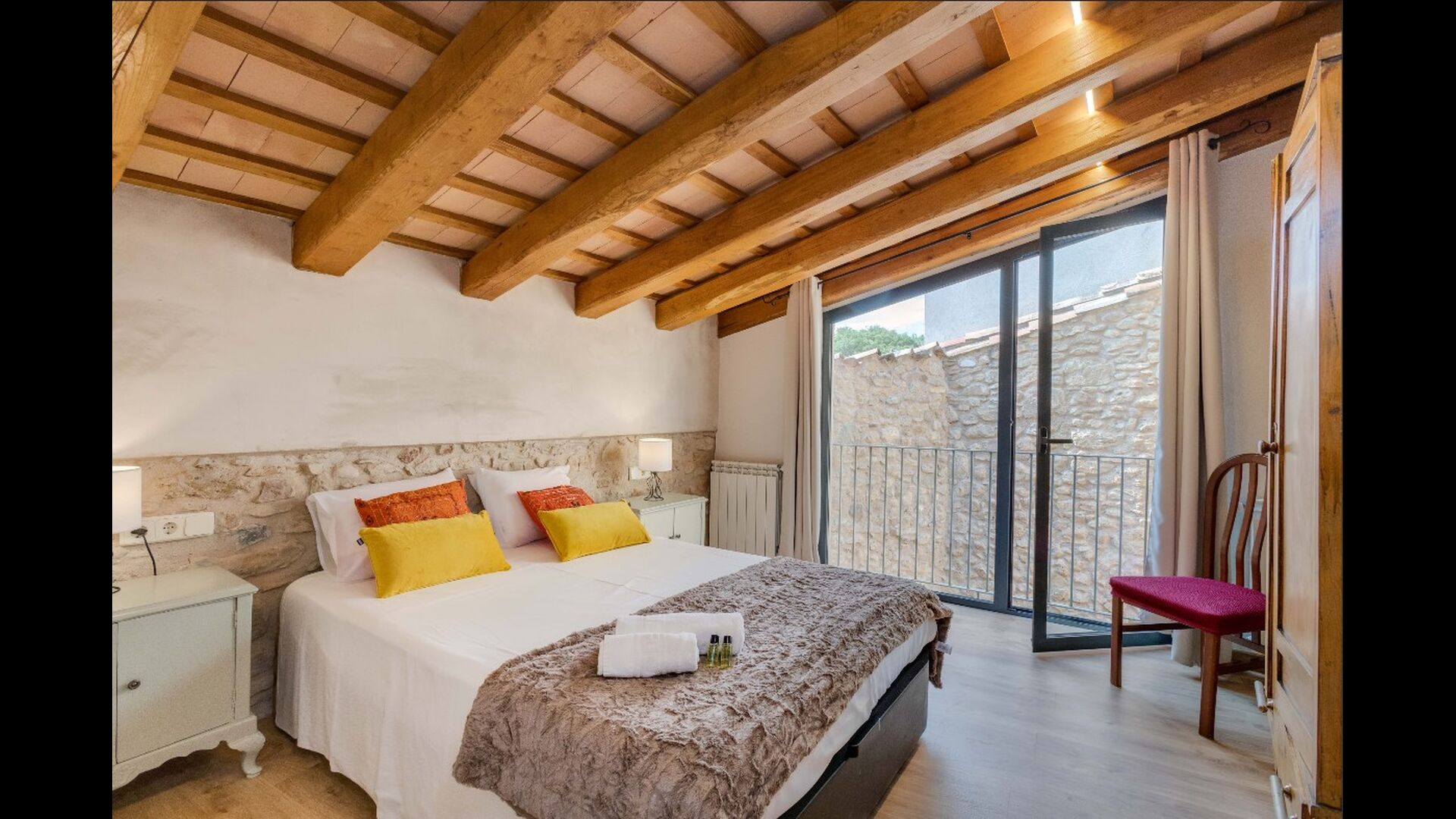 Her vil I møde et autentisk catalansk kalkstenshus med 6 rummelige soveværelser og 3 moderne badeværelser. Der er et dejligt fællesrum og et stort køkken, veludstyret og selvfølgelig med opvaskemaskine, køleskab, fryser , mikroovn og komfur.