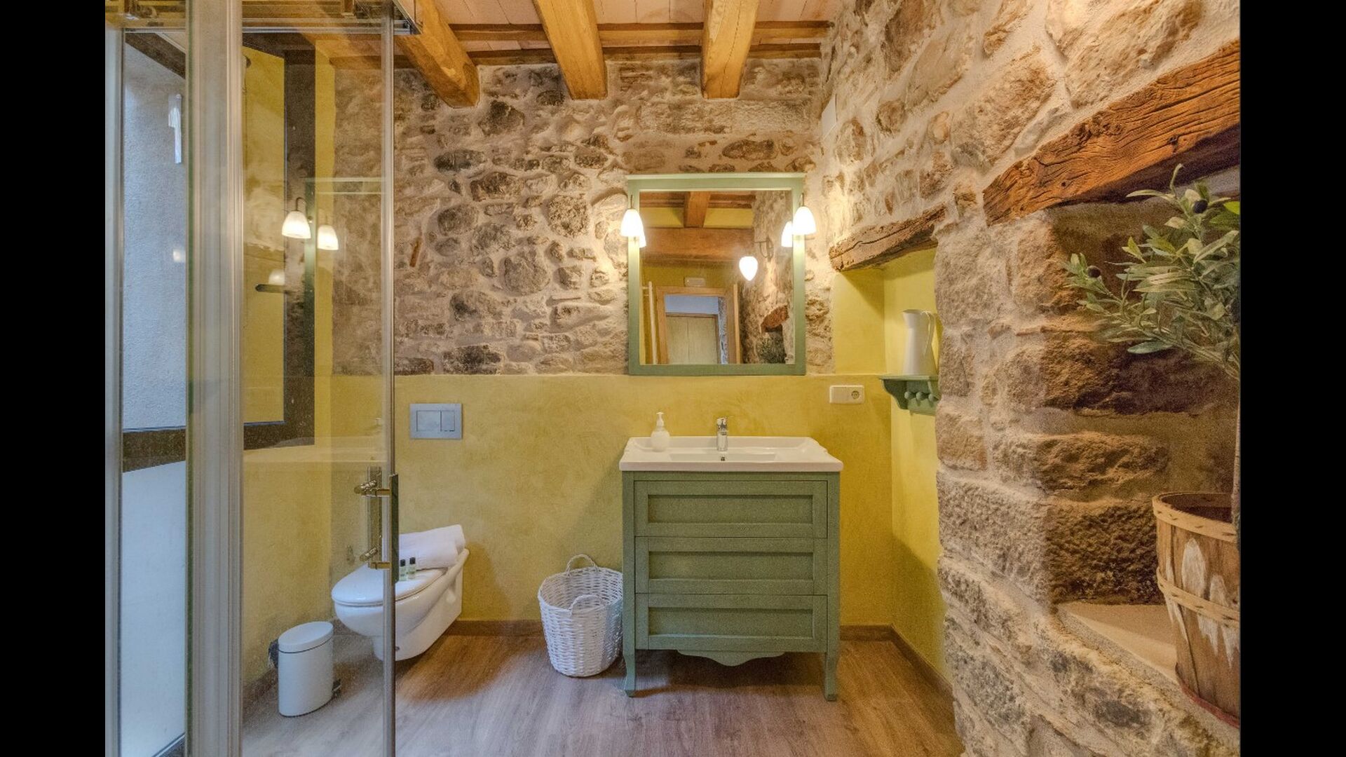 I stueetagen er der en hyggelig stue / spisestue sammen med et fuldt udstyret køkken. Udenfor er der en stor terrasse perfekt til at nyde roen eller slappe af efter en udflugt gennem stierne og dalene i området.