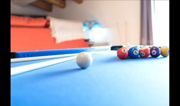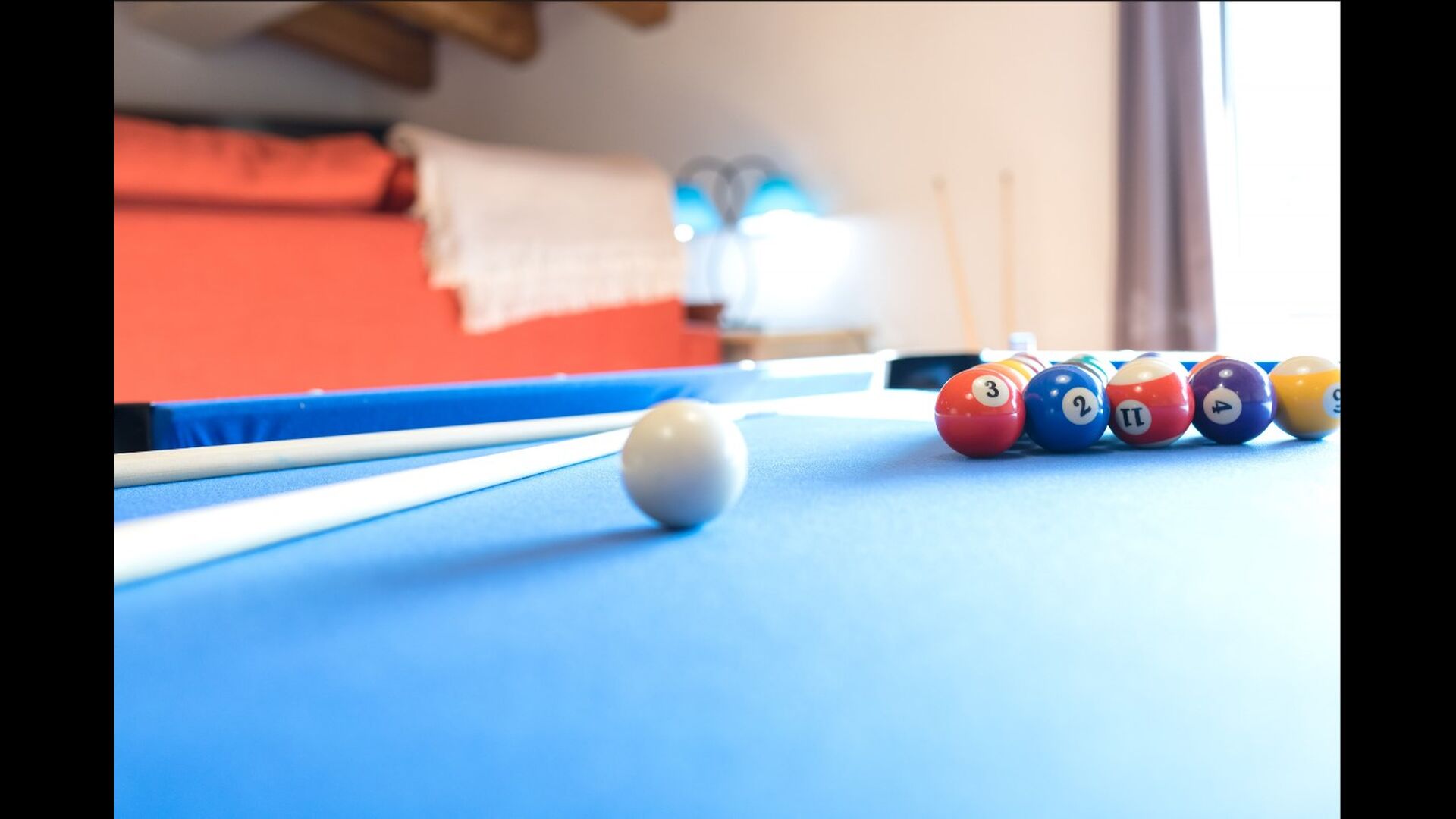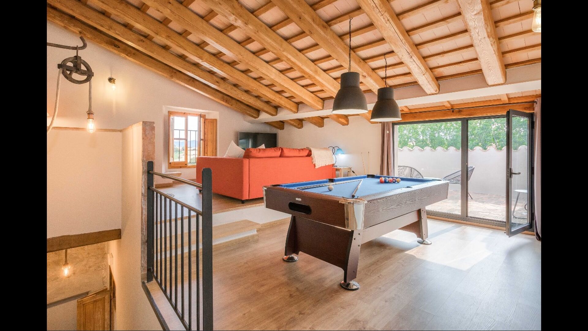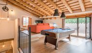 På første og anden sal er de komfortable værelser sammen med en stue på hver etage. Det har også et billardbord og en udendørs terrasse med smuk udsigt over områdets smukke natur!