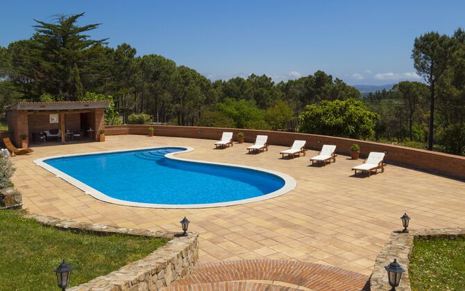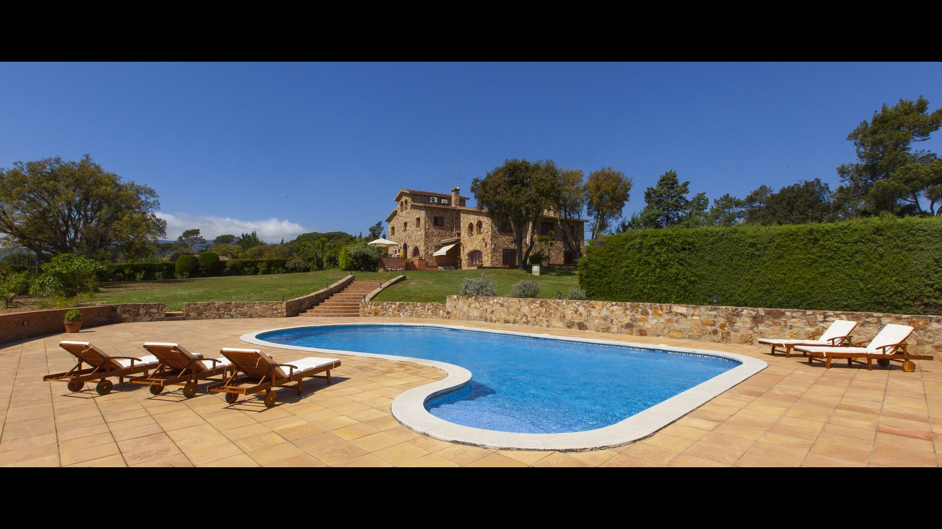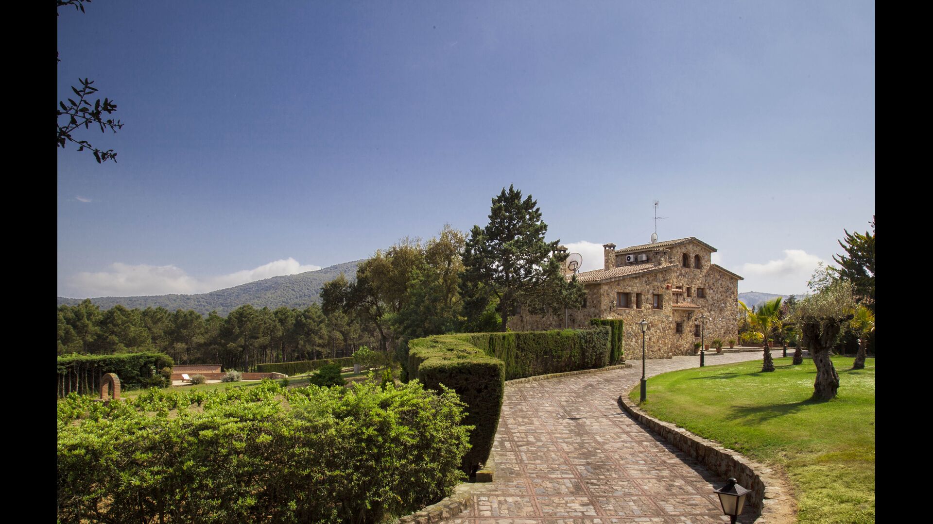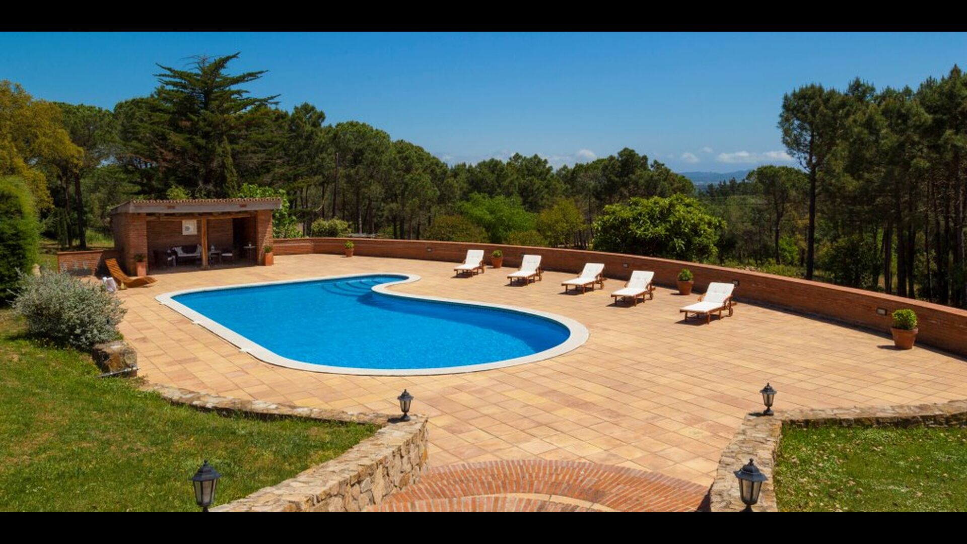 Udenfor finder er der på den ene side den spektakulære 14m swimmingpool omgivet af græsplæner og vinmarker suppleret med en hyggelig veranda. På den anden side er der en storslået veranda med sofaområde til sammenkomster og en udendørs spiseplads under en baldakin af smedejern, der tilbyder en fantastisk udsigt over ejendommen med udsigt over byen Blanes og Montnegre Natural Park. I en anden del af ejendommen er der frugtplantagen, fyrreskoven og en stor dam. Beliggende på den bagerste terrasse er der et hyggeligt roligt område med et stenbord til hvile ved siden af træerne.